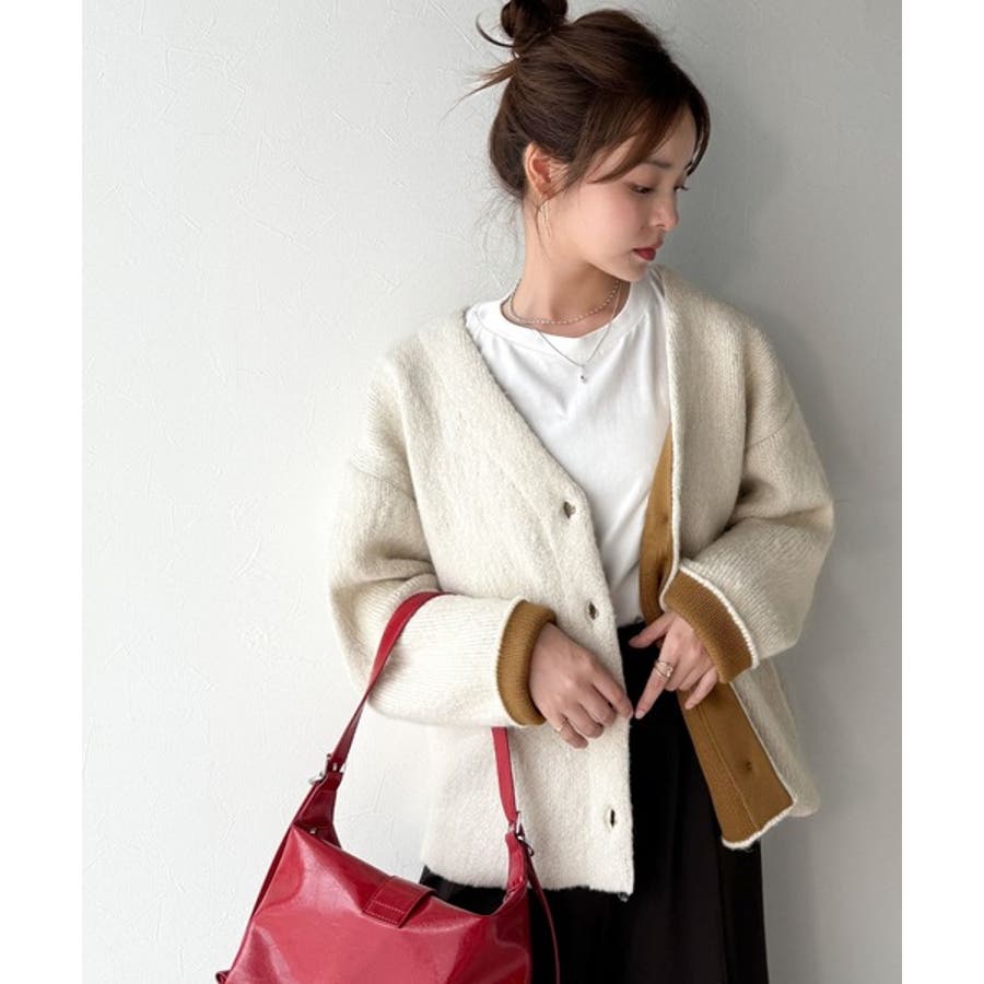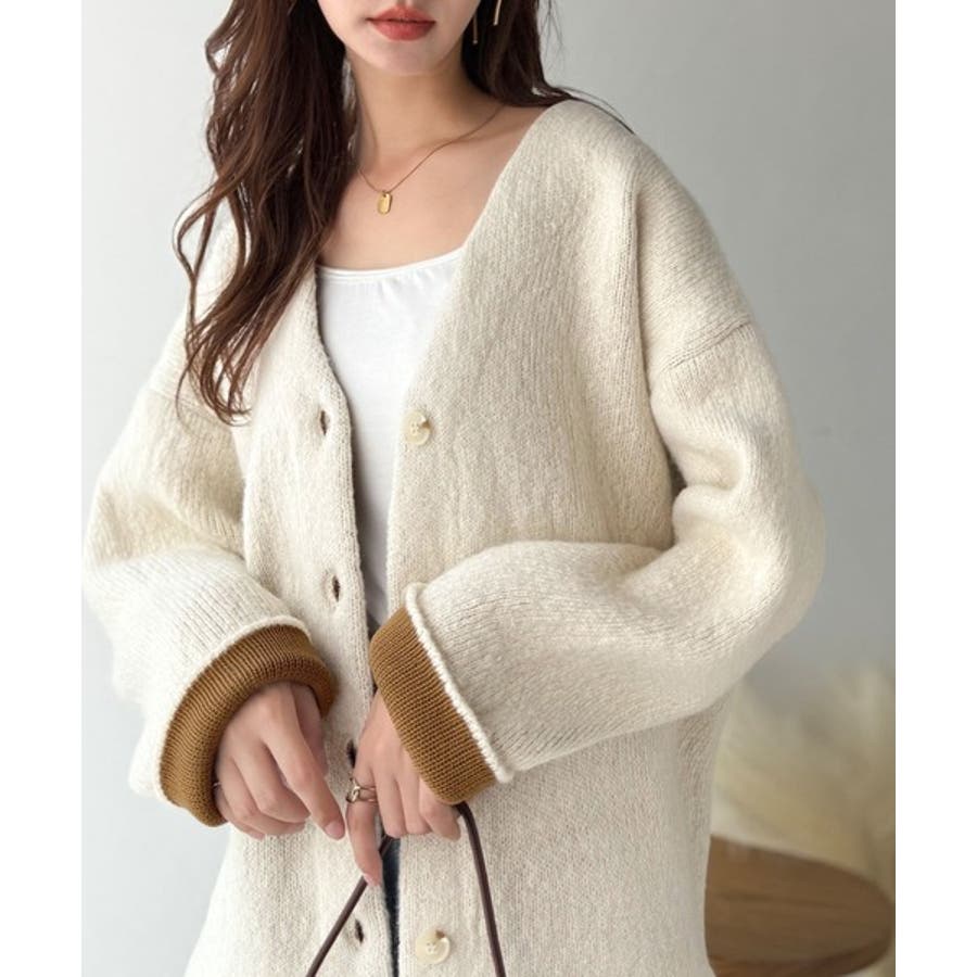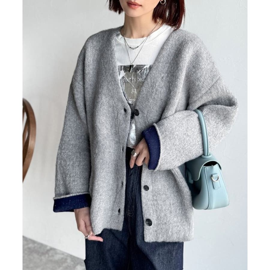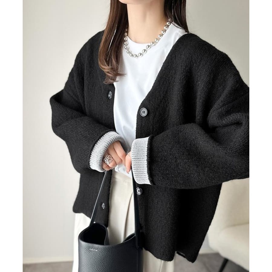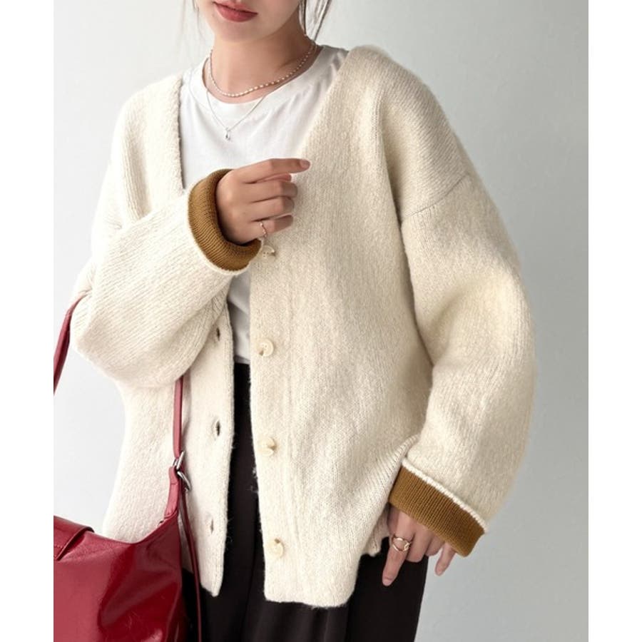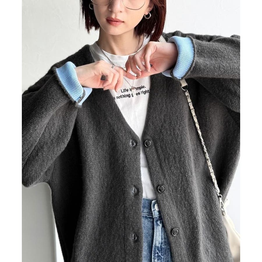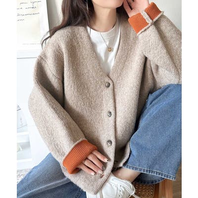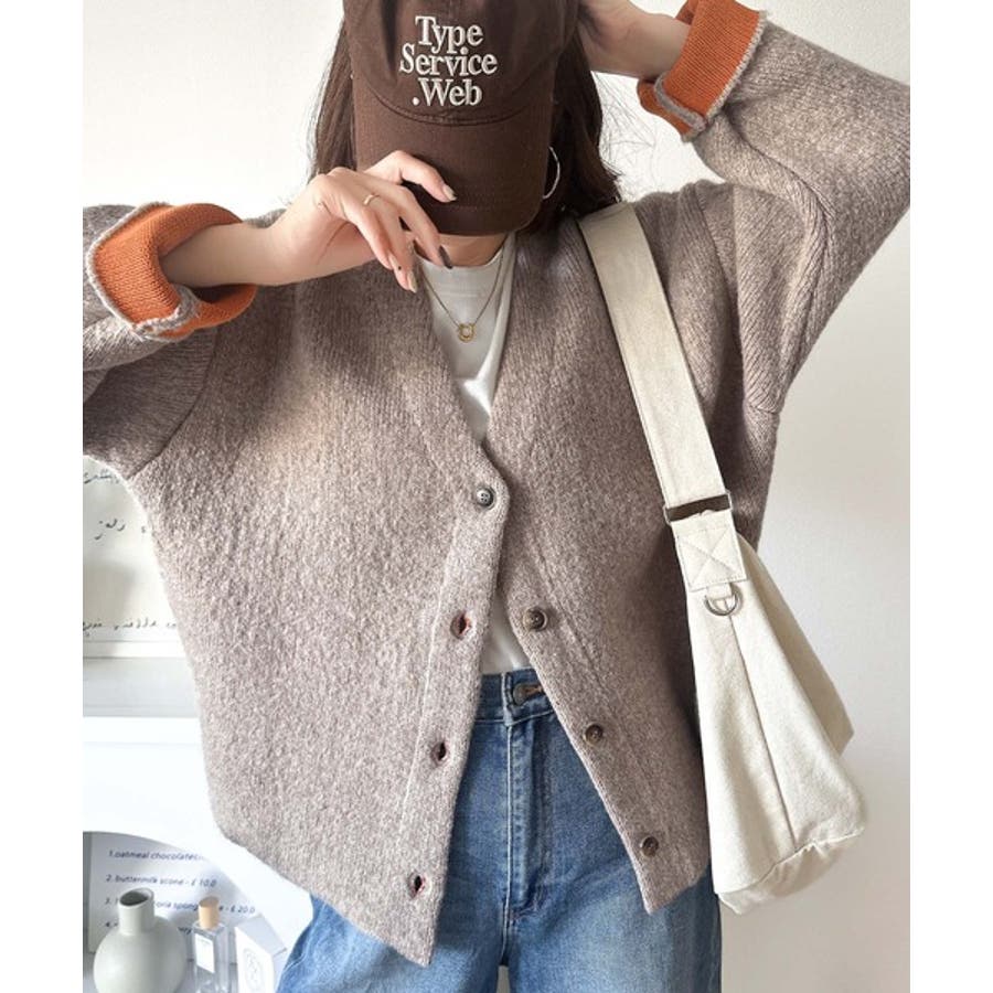 袖先から薫る。こなれ感たっぷりのこっくり配色。Wフェイス裏配色Vネックカーディガ…