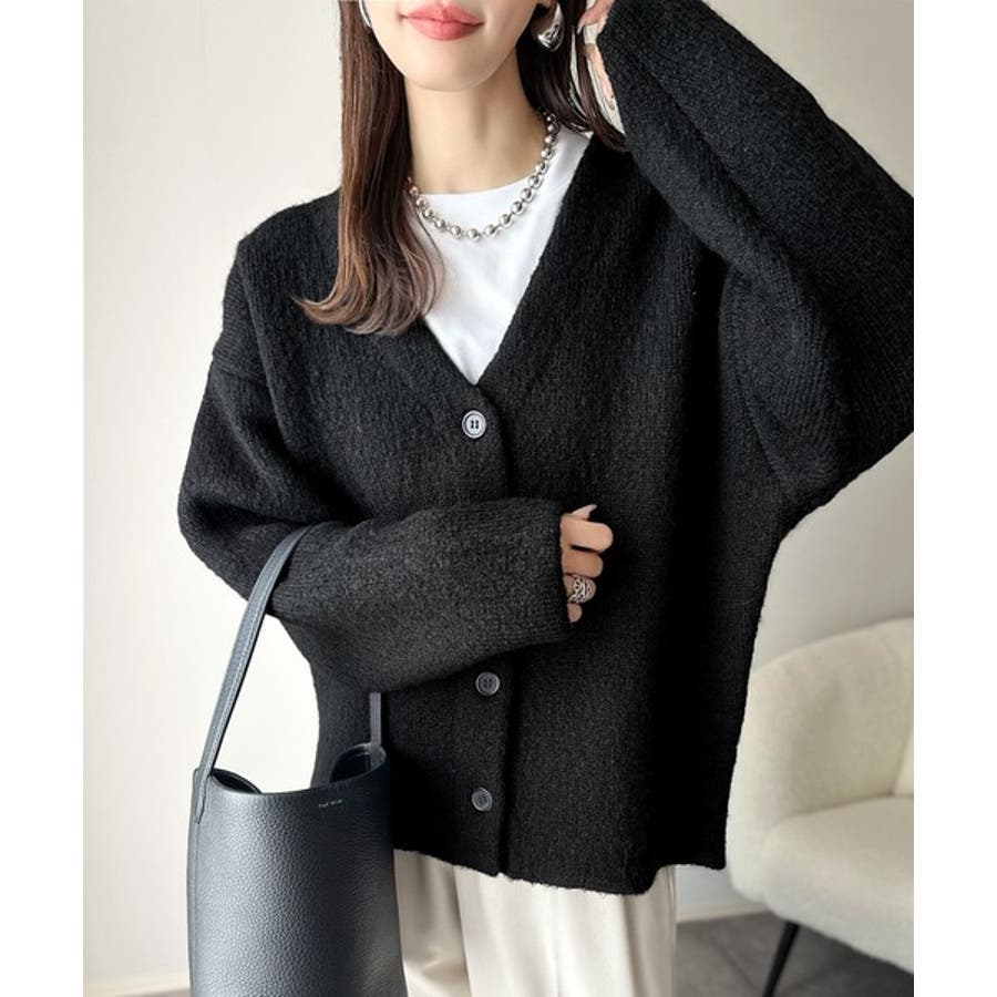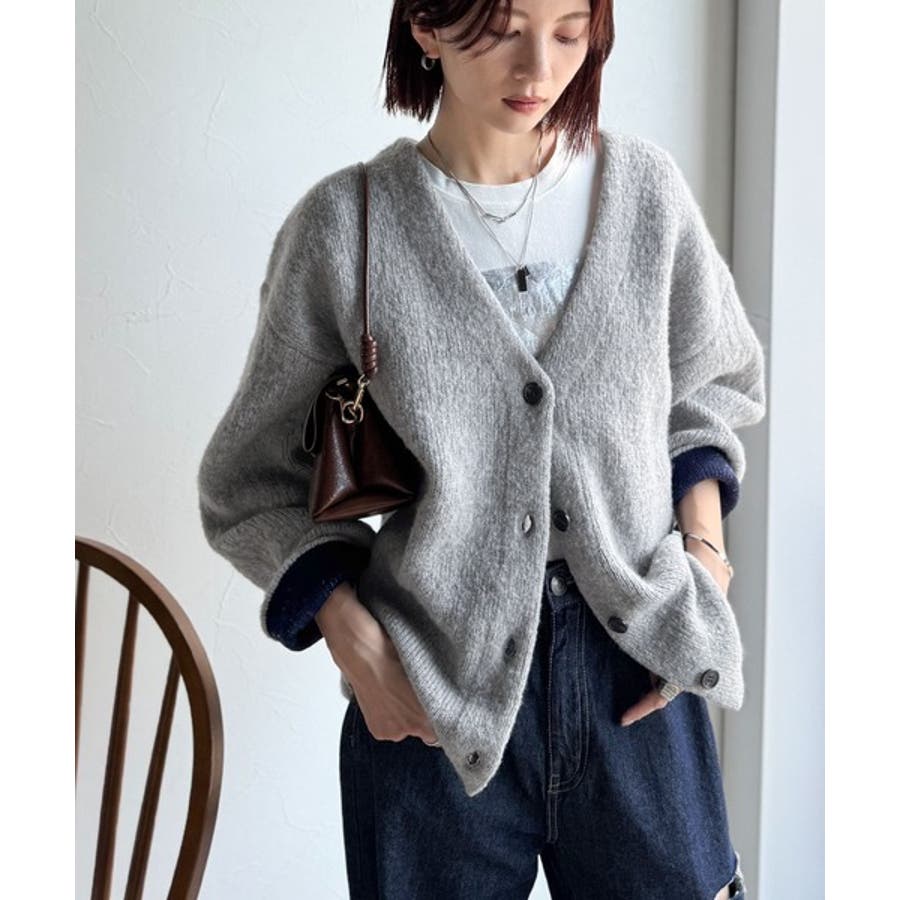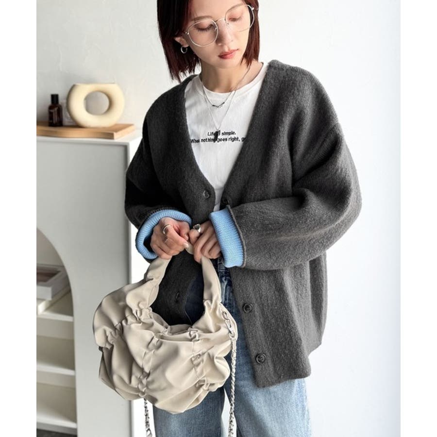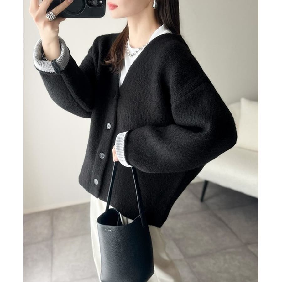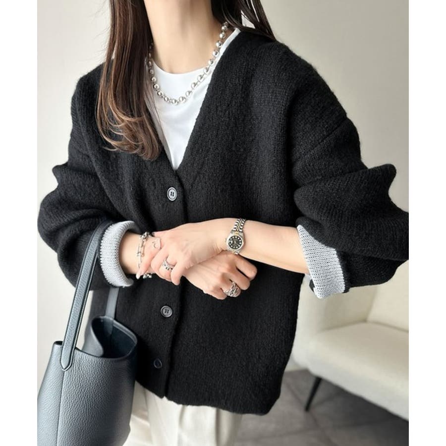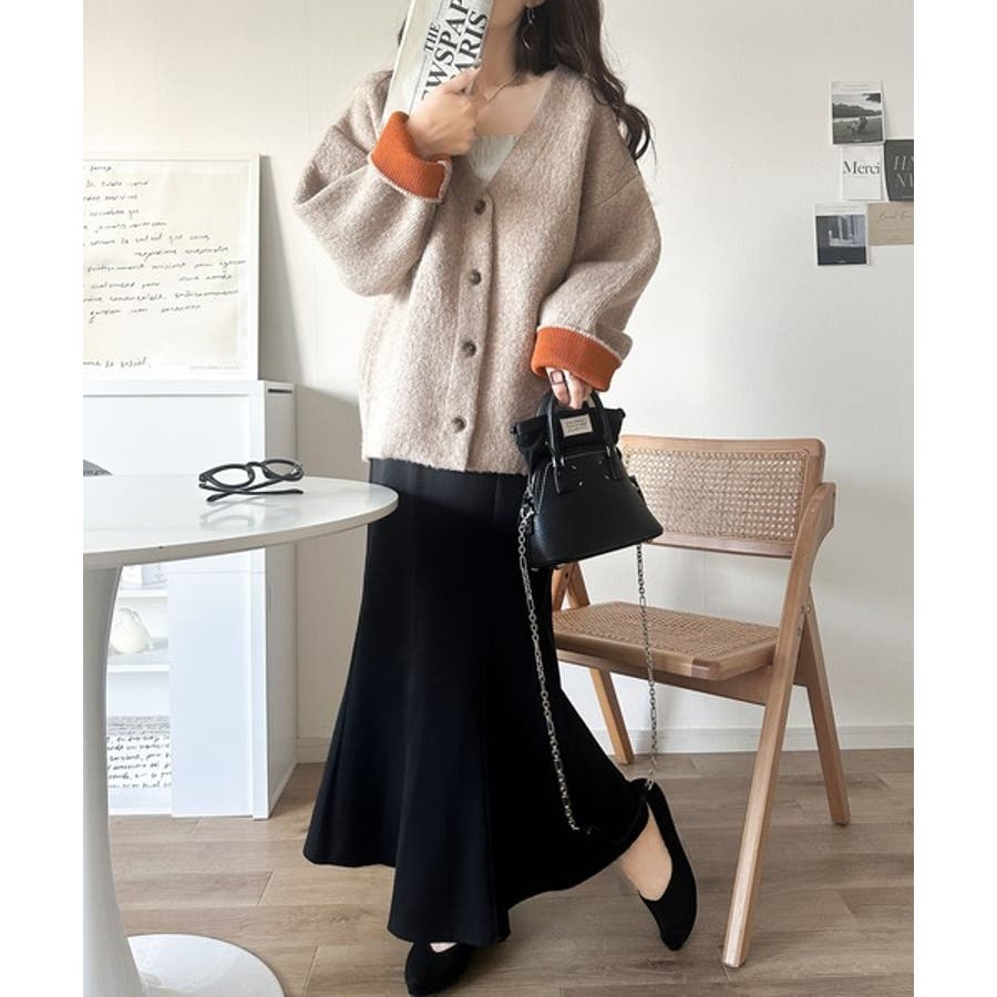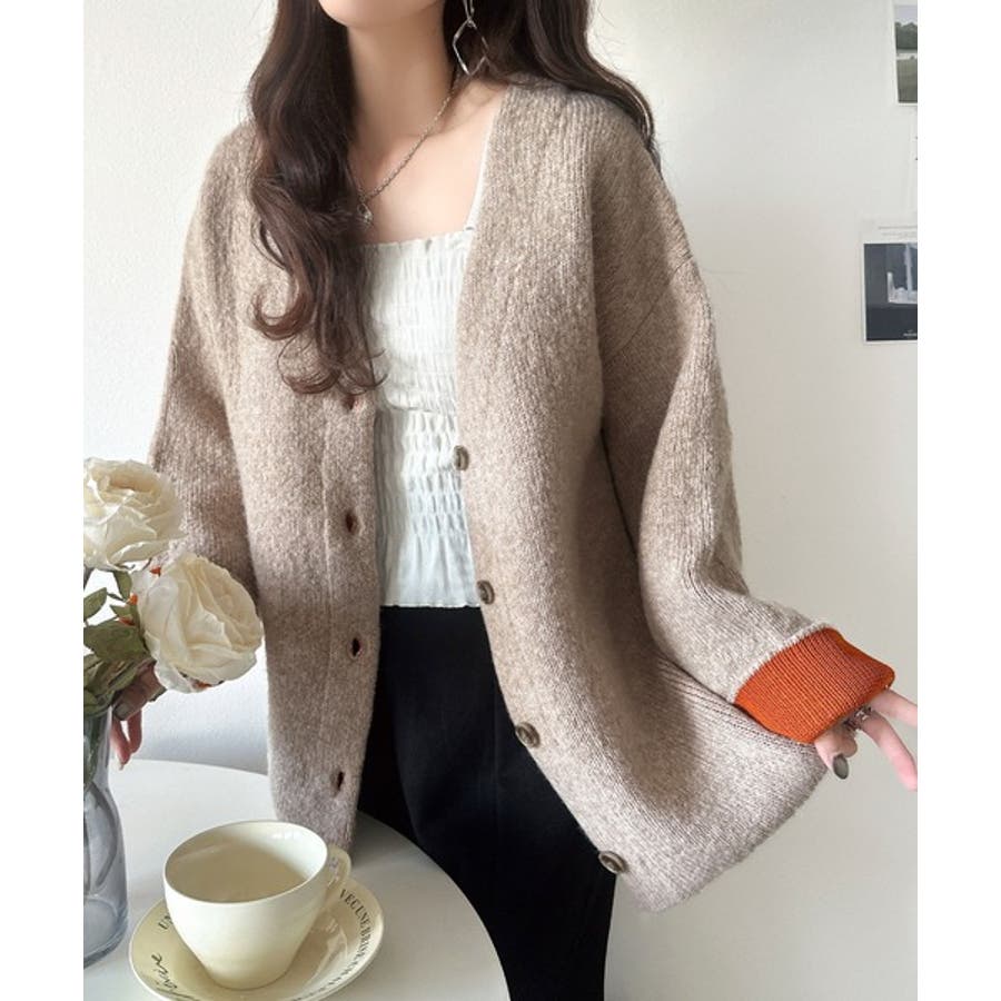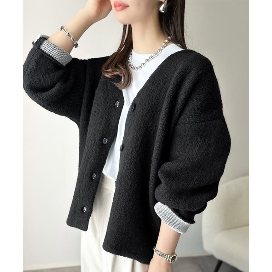 袖先から薫る。こなれ感たっぷりのこっくり配色。Wフェイス裏配色Vネックカーディガ…