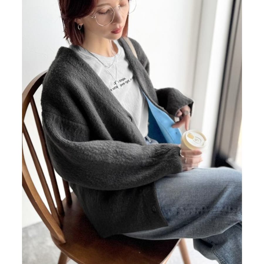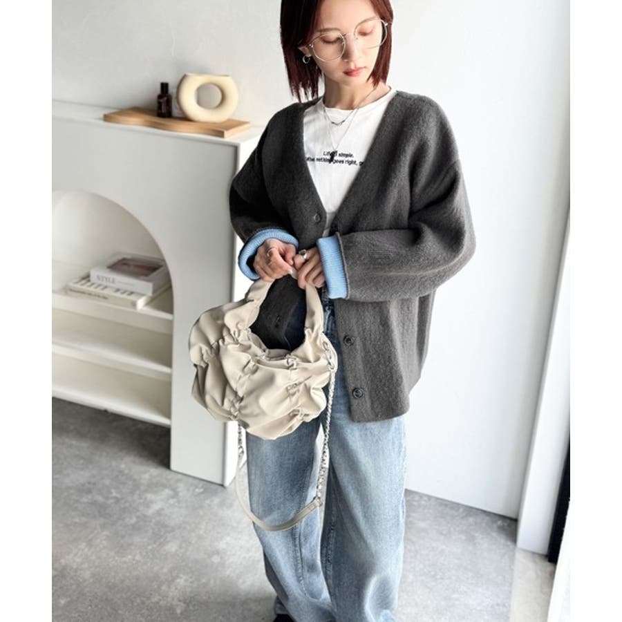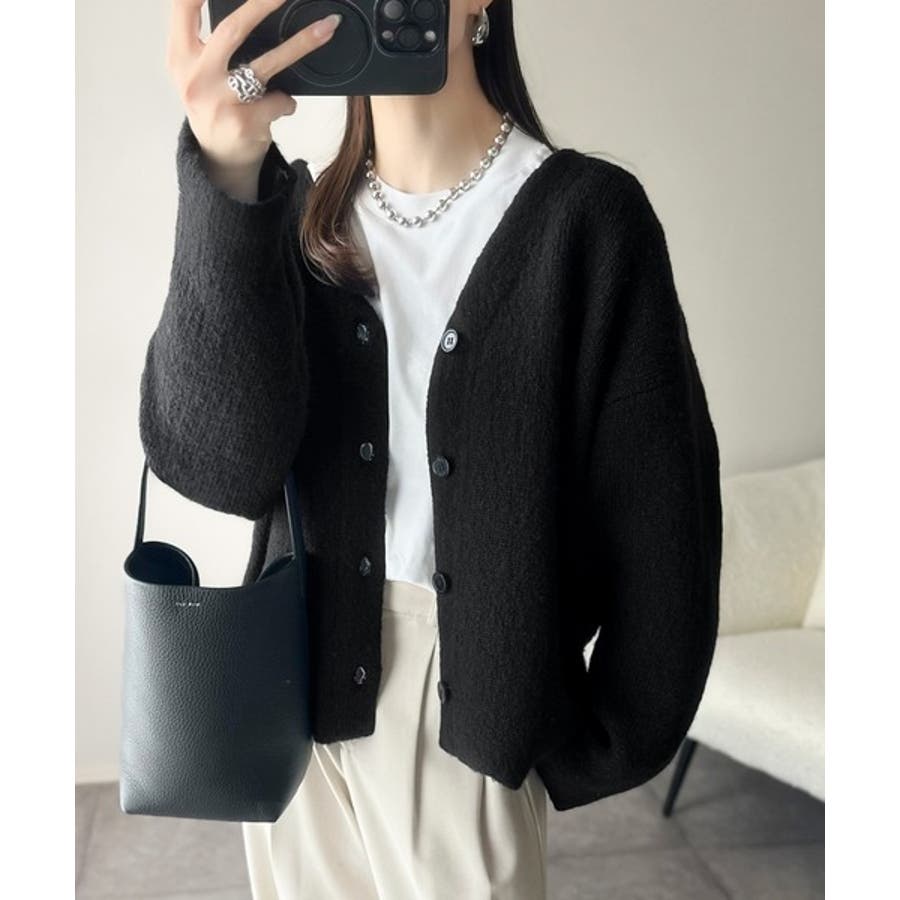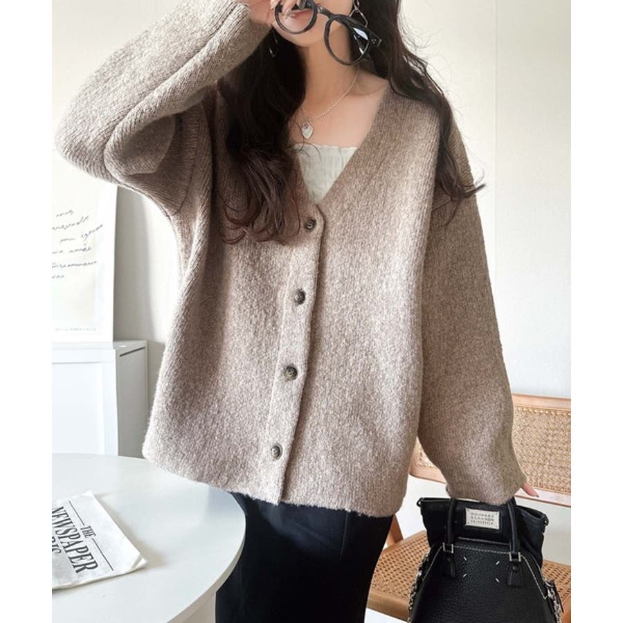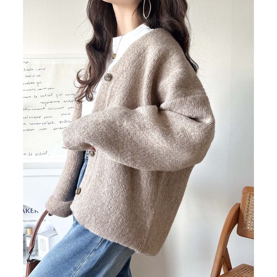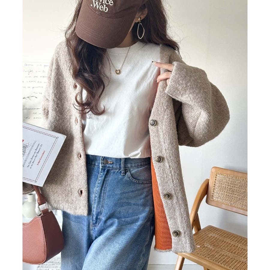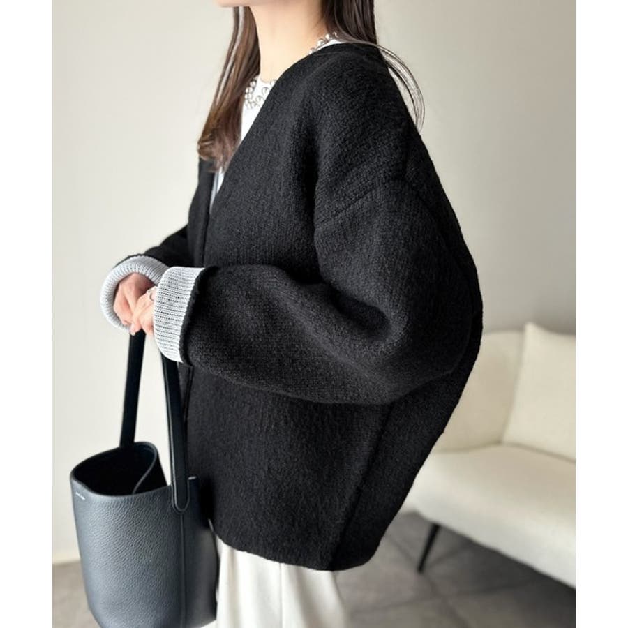 袖先から薫る。こなれ感たっぷりのこっくり配色。Wフェイス裏配色Vネックカーディガ…