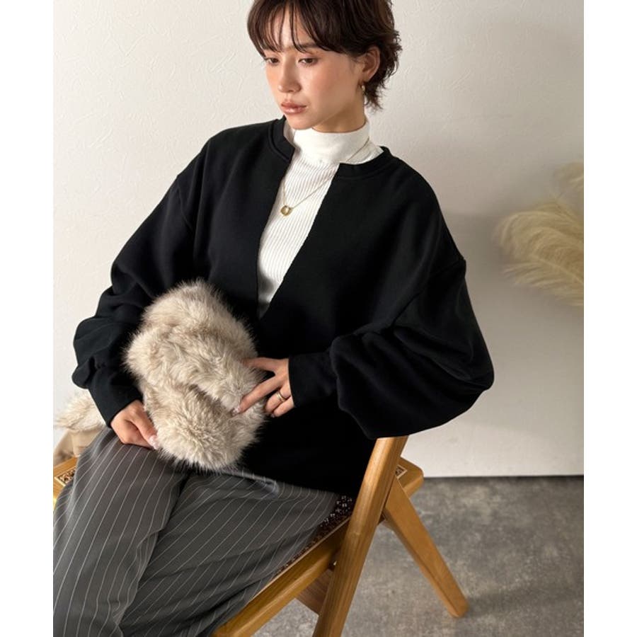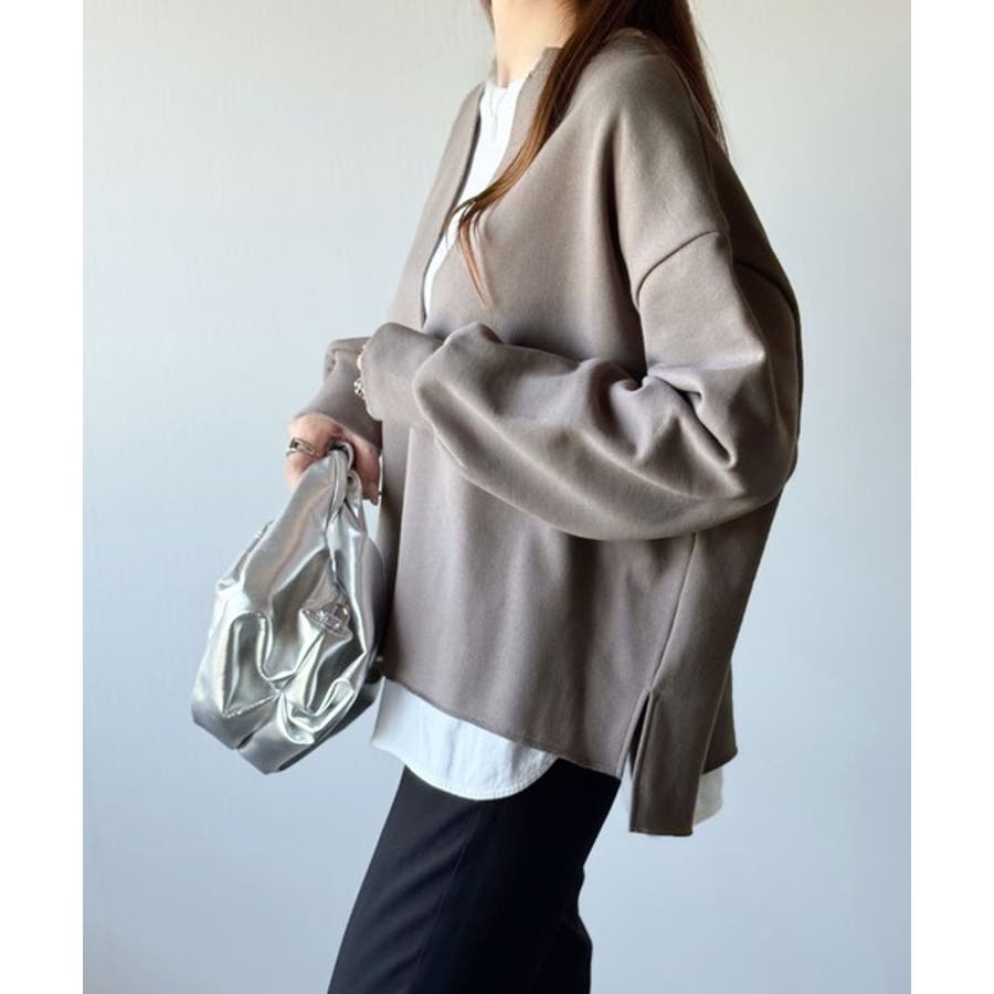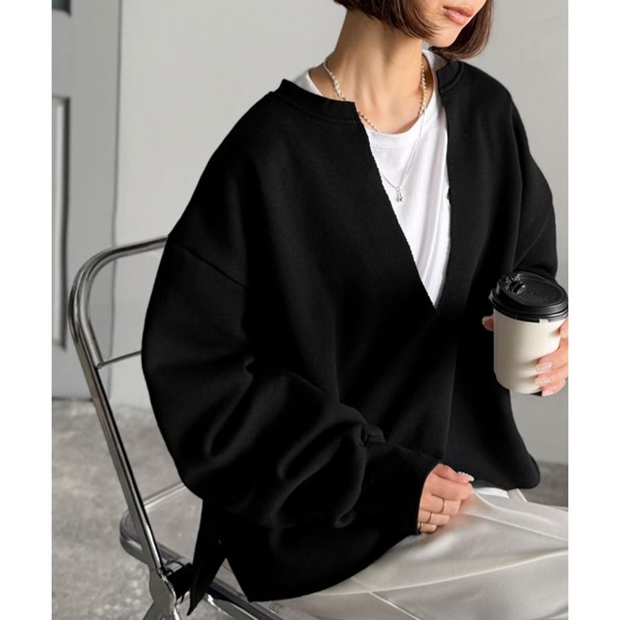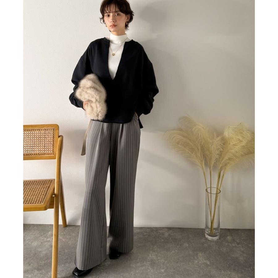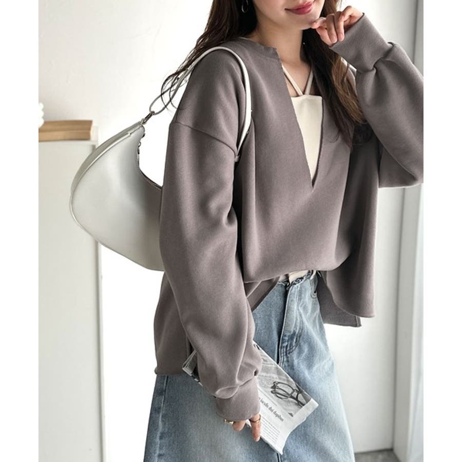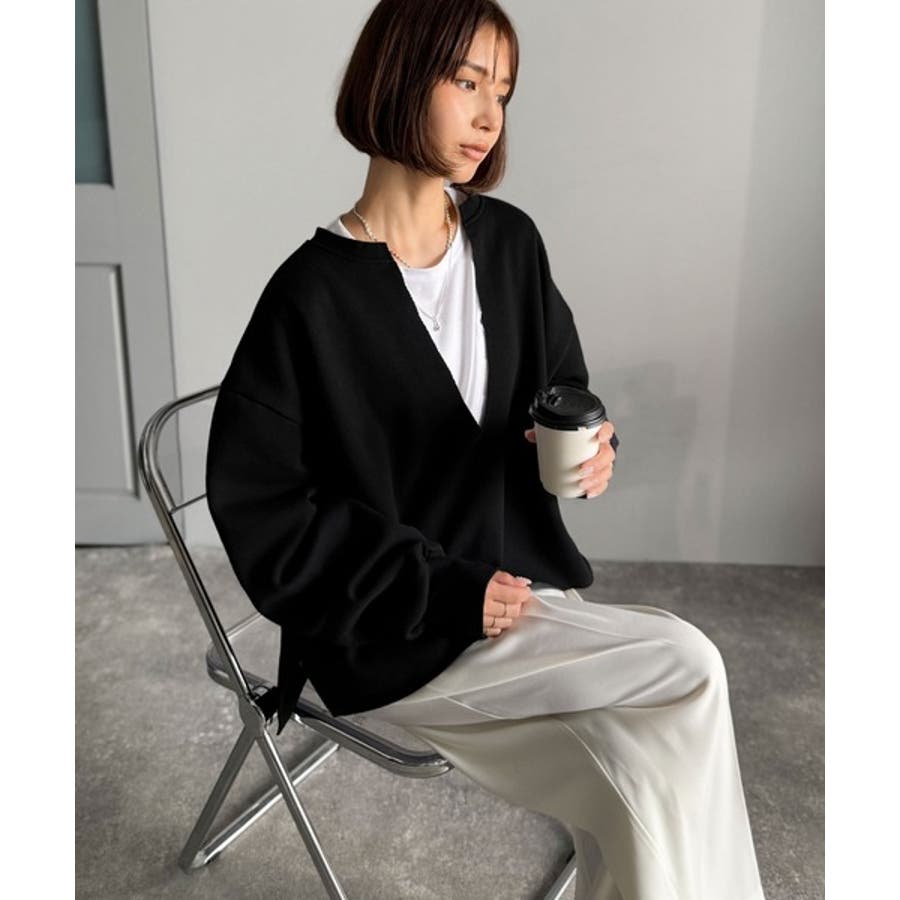 胸下まで空いたVネックは、インナー次第で表情をガラッと変えることができるのが魅力。