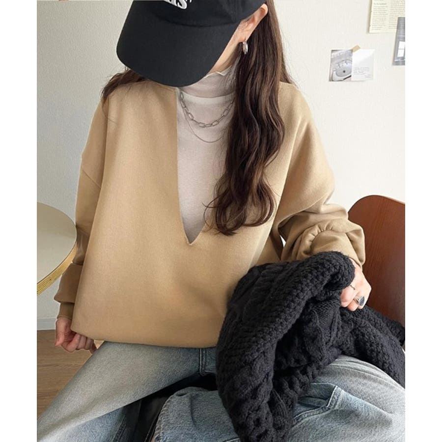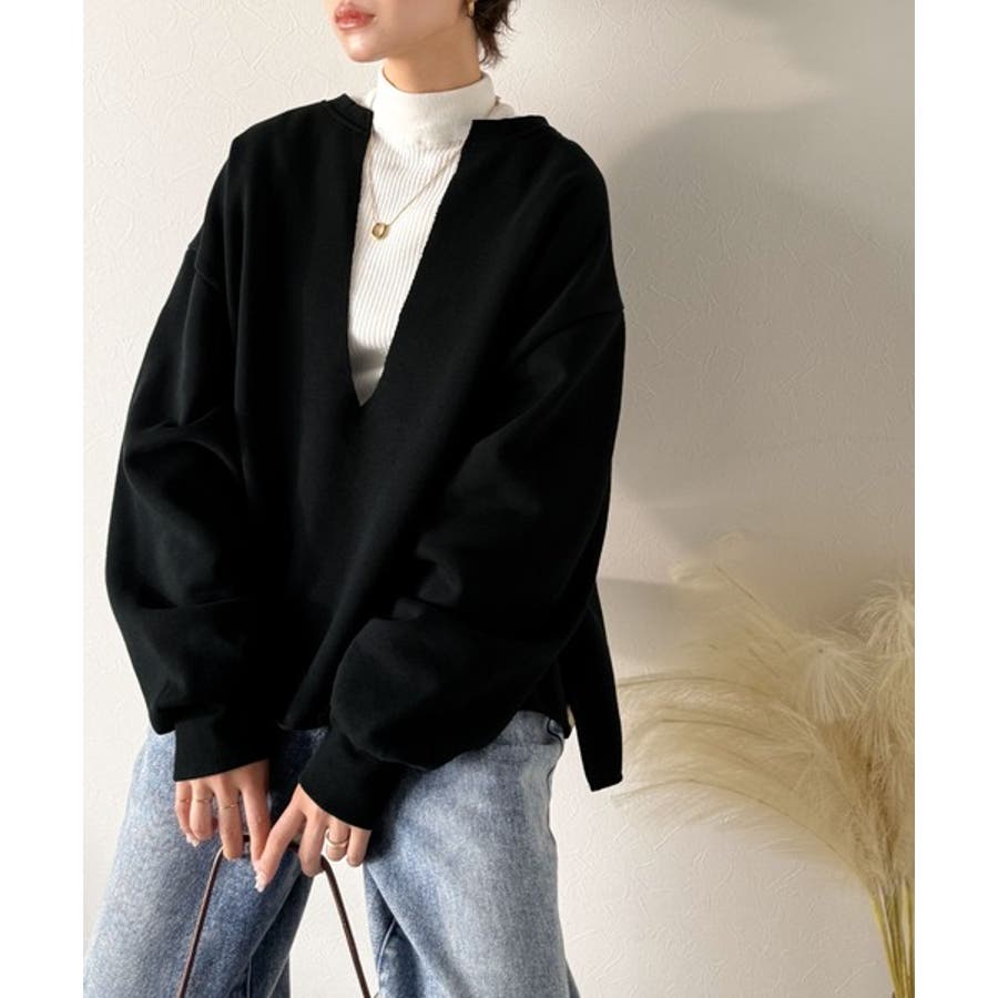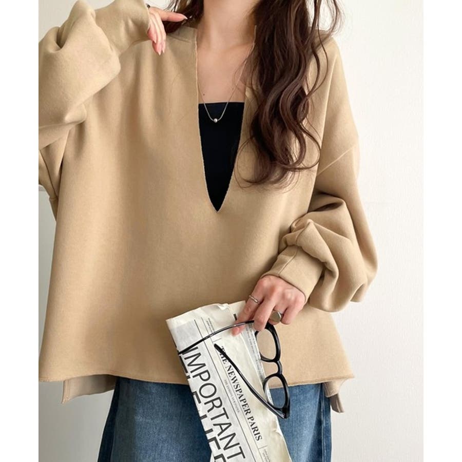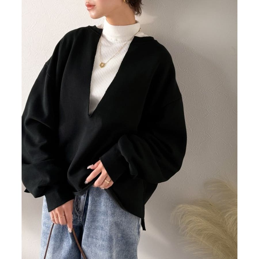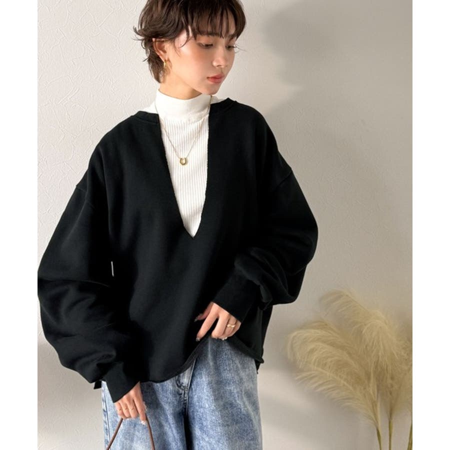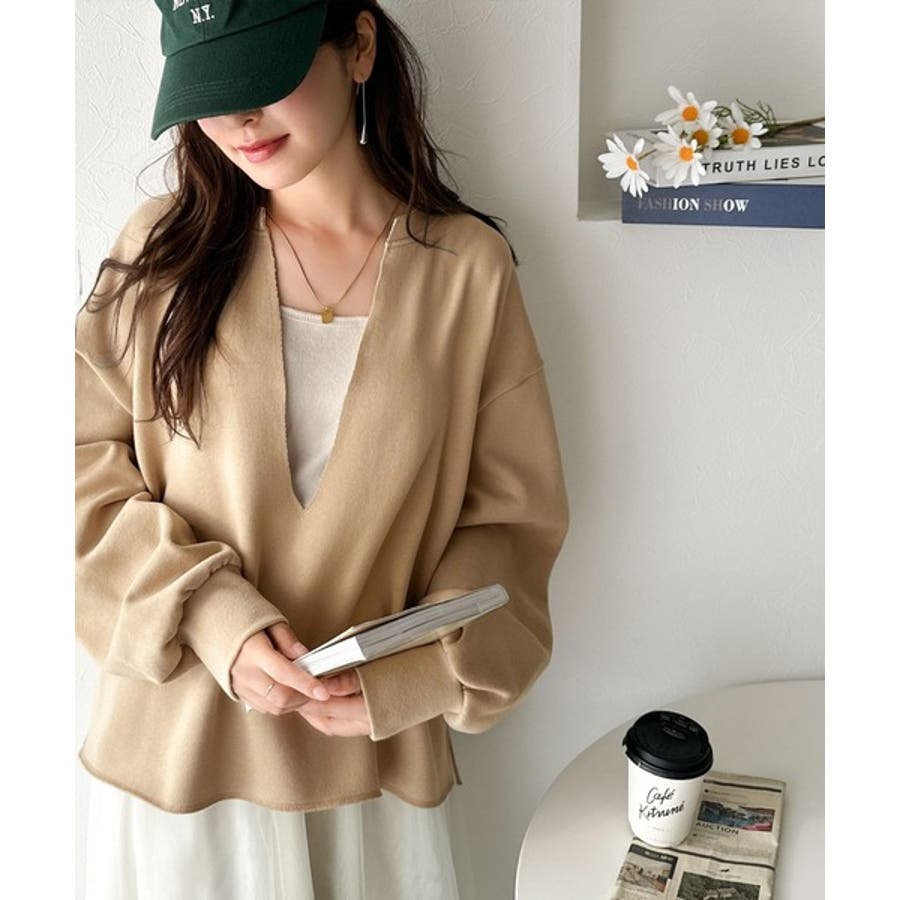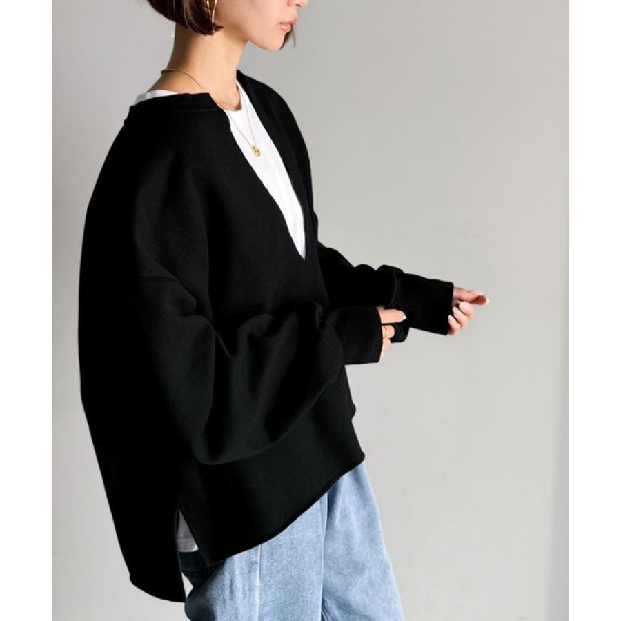 ざっくり開いたVネックデザインで顔周りもすっきり◎