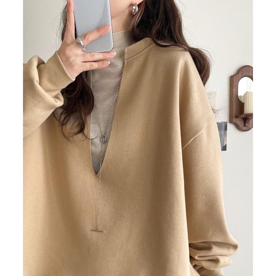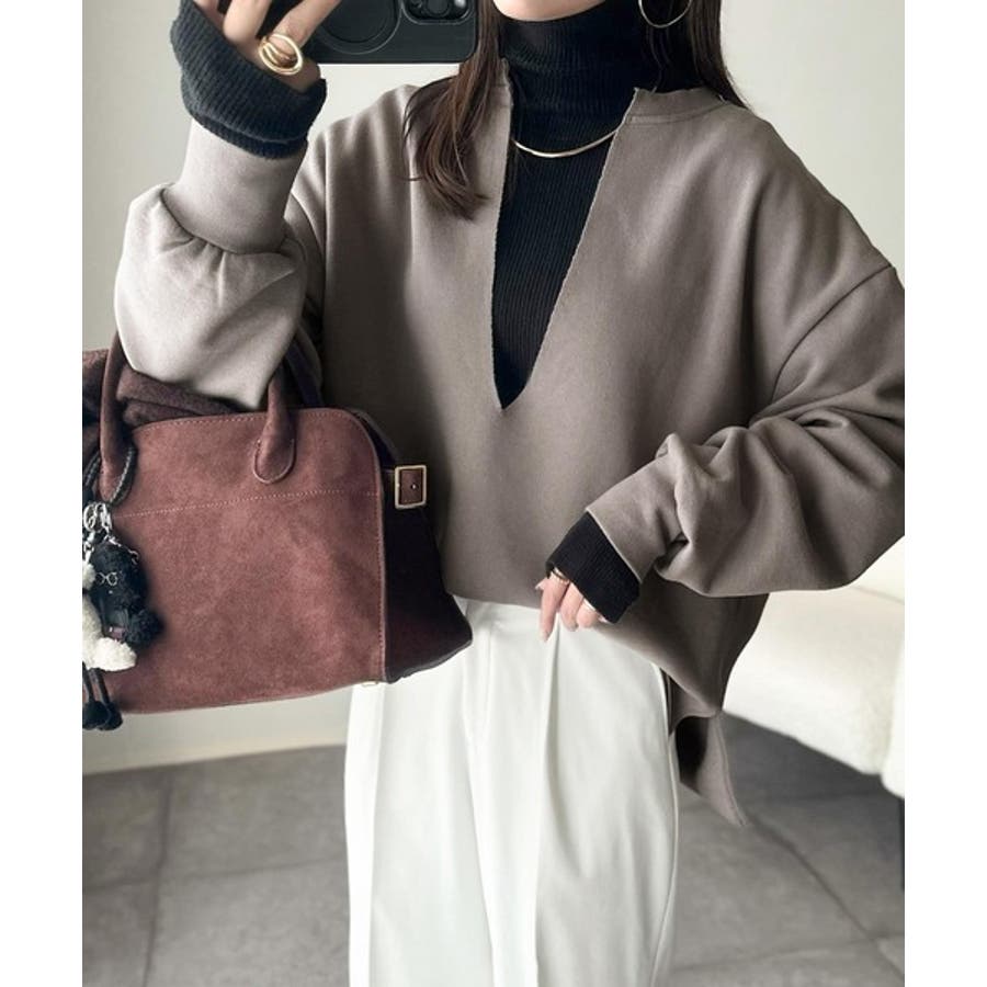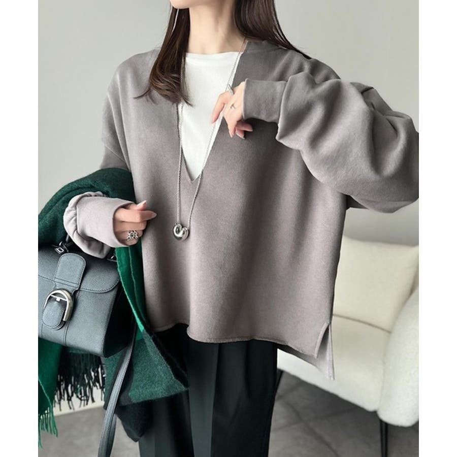 暖かさもこなれ感も、一枚で“洒落見え”。深Vネック裏起毛プルオーバー(長袖)