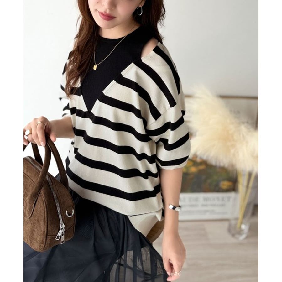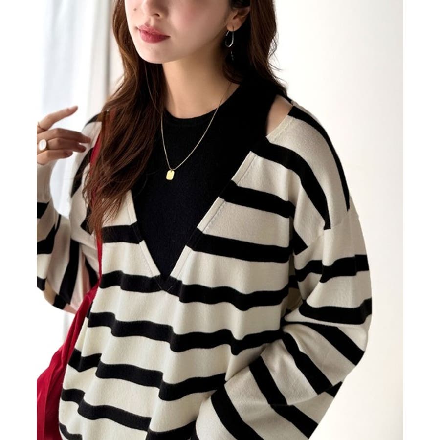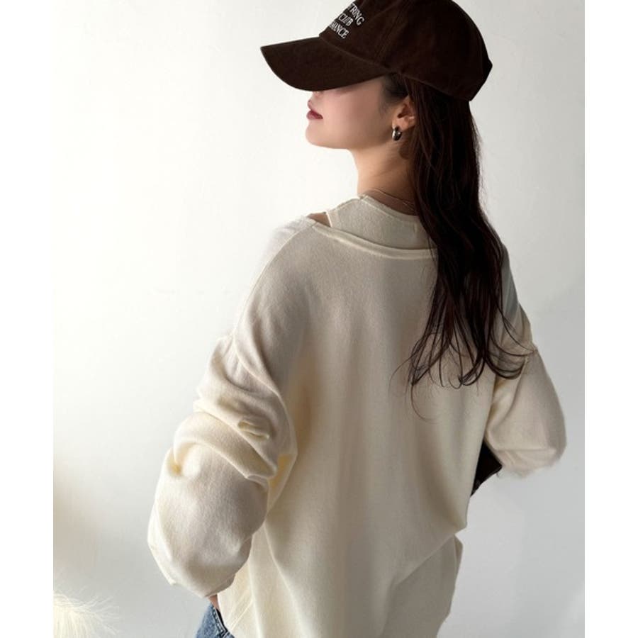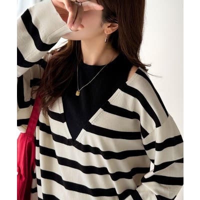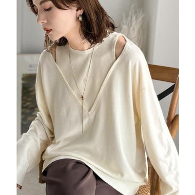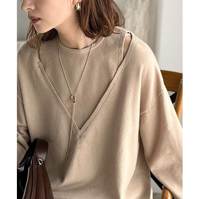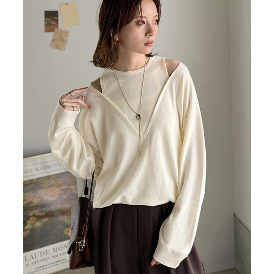Vネックニットに、まるでタンクトップを重ねたようなレイヤード風デザイン。