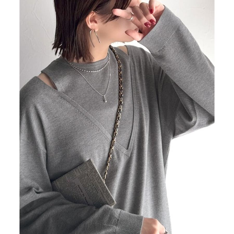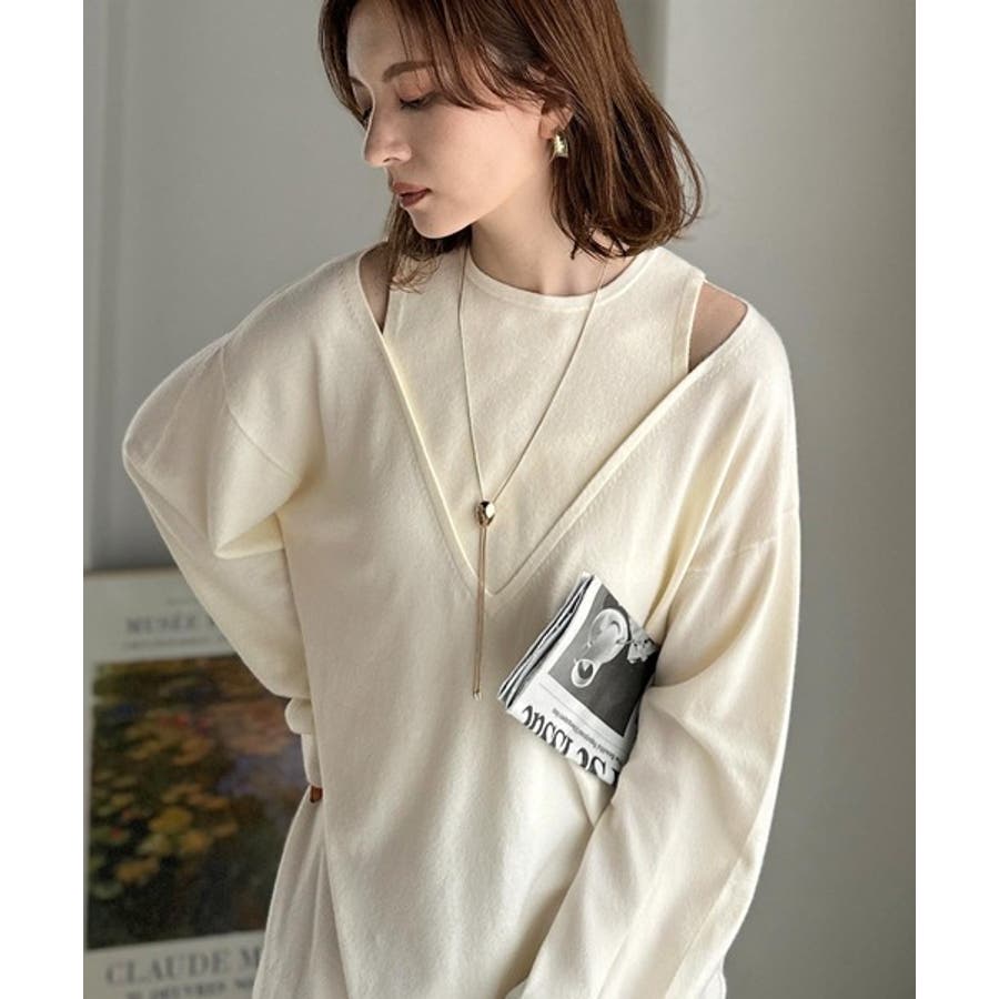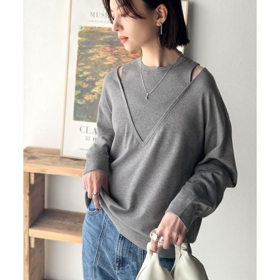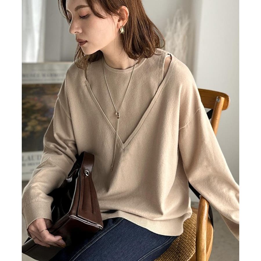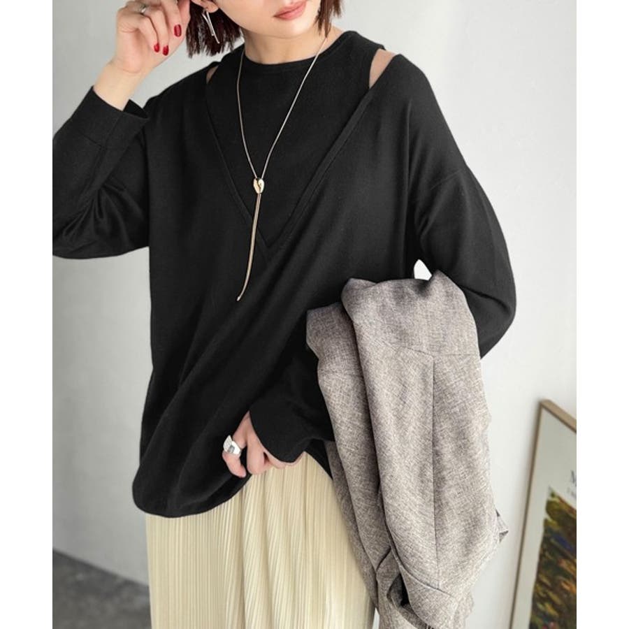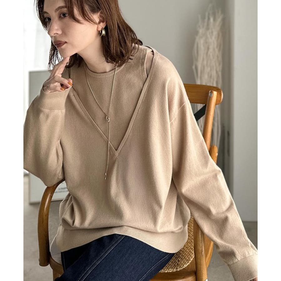 一枚着るだけで、大人の抜け感を演出♪レイヤード風ニットトップス(長袖)