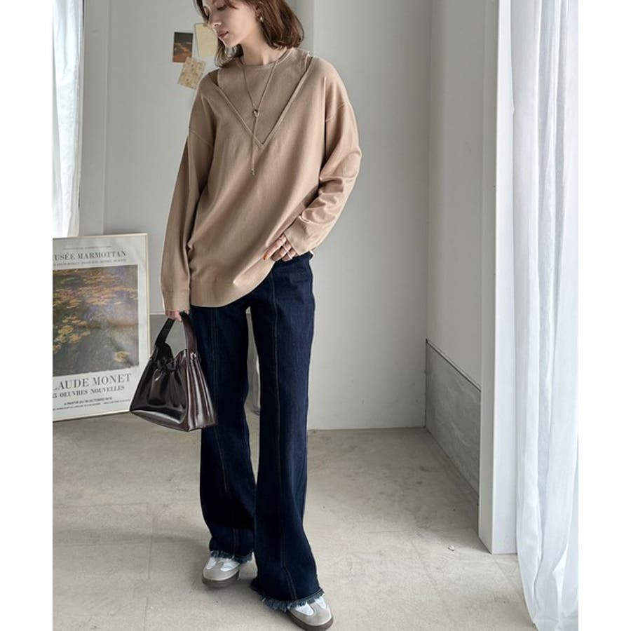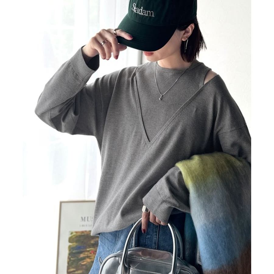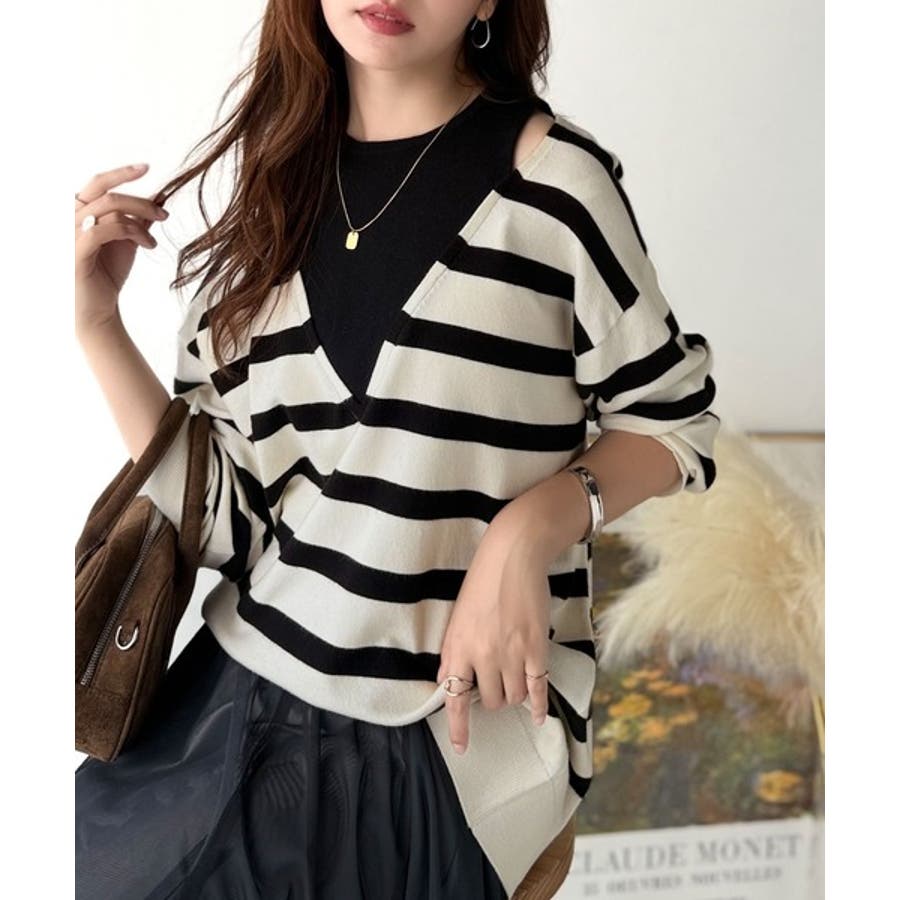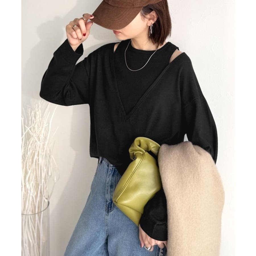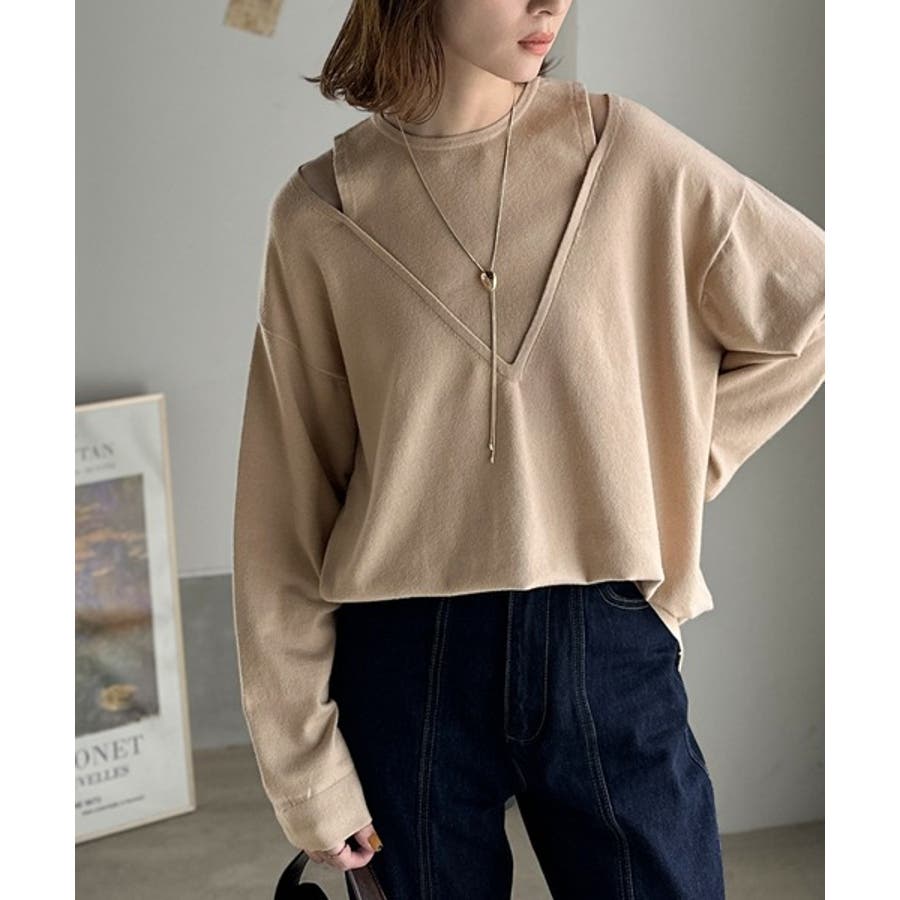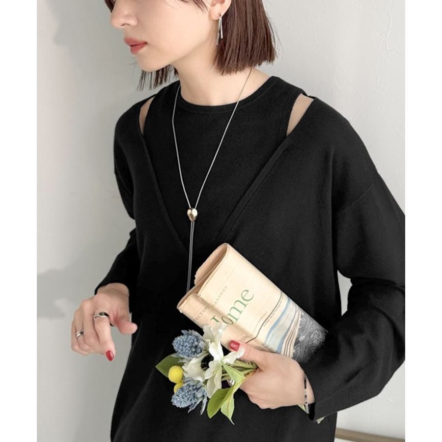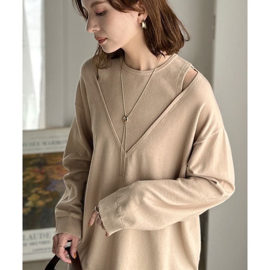 一枚着るだけで、大人の抜け感を演出♪レイヤード風ニットトップス(長袖)