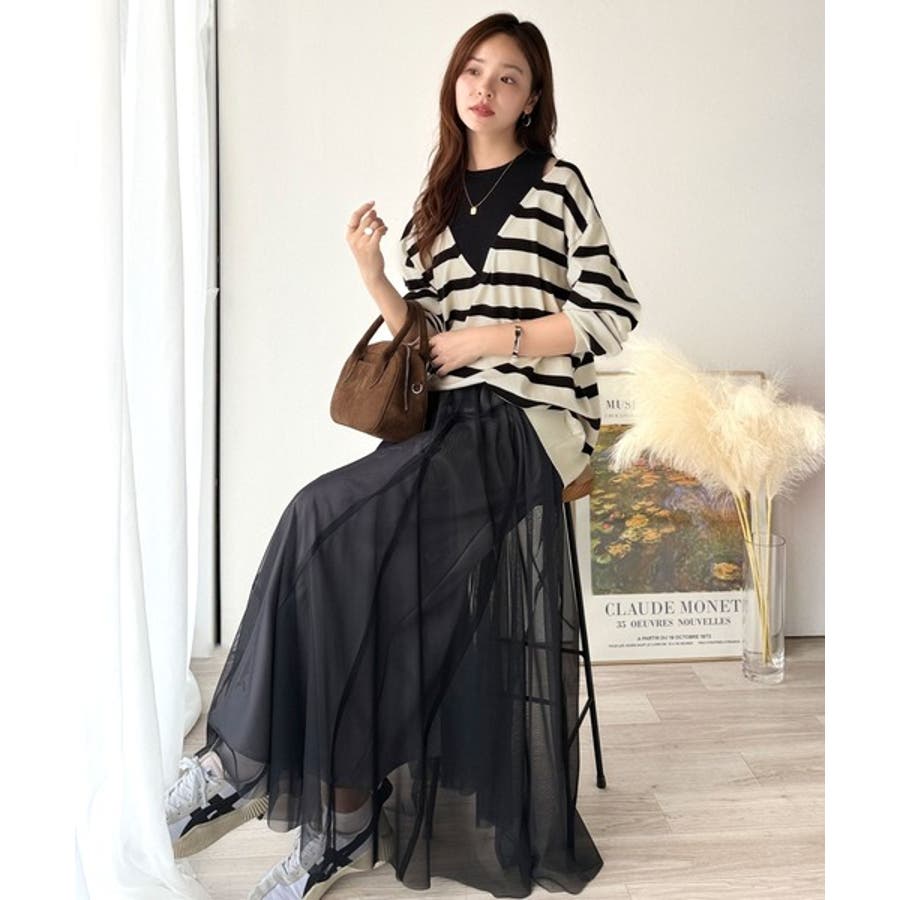 スラックスを合わせればきれいめに、ティアードスカートを合わせれば甘めカジュアルにと