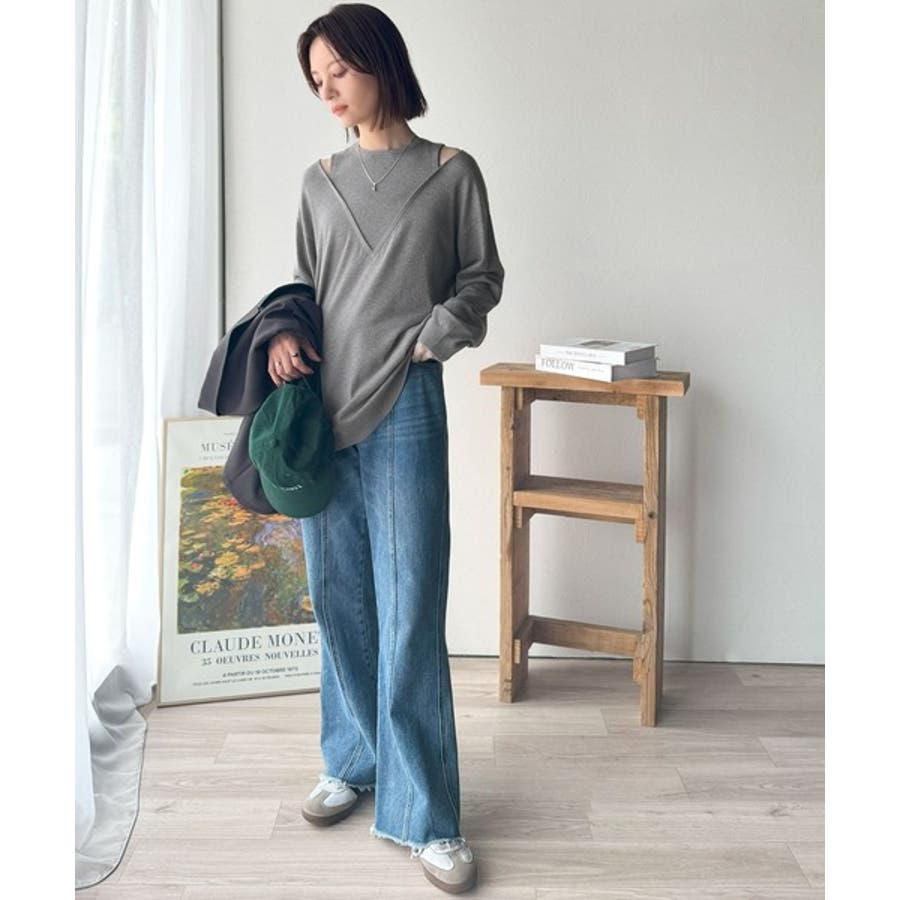 合わせるボトムス次第で自由自在に楽しめるのが魅力肩のスリットをアクセントに、キャミワンピやサロペのインナー使いも可愛い!