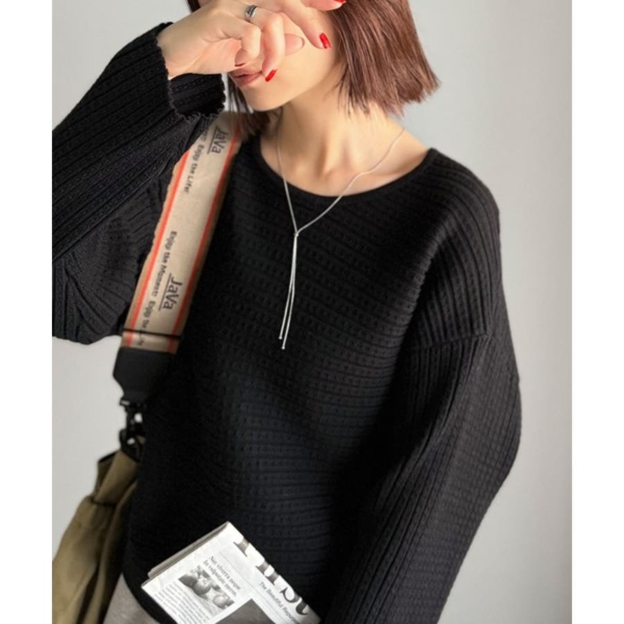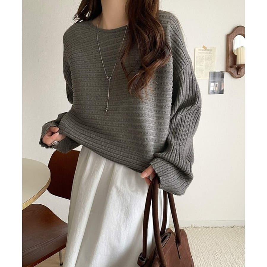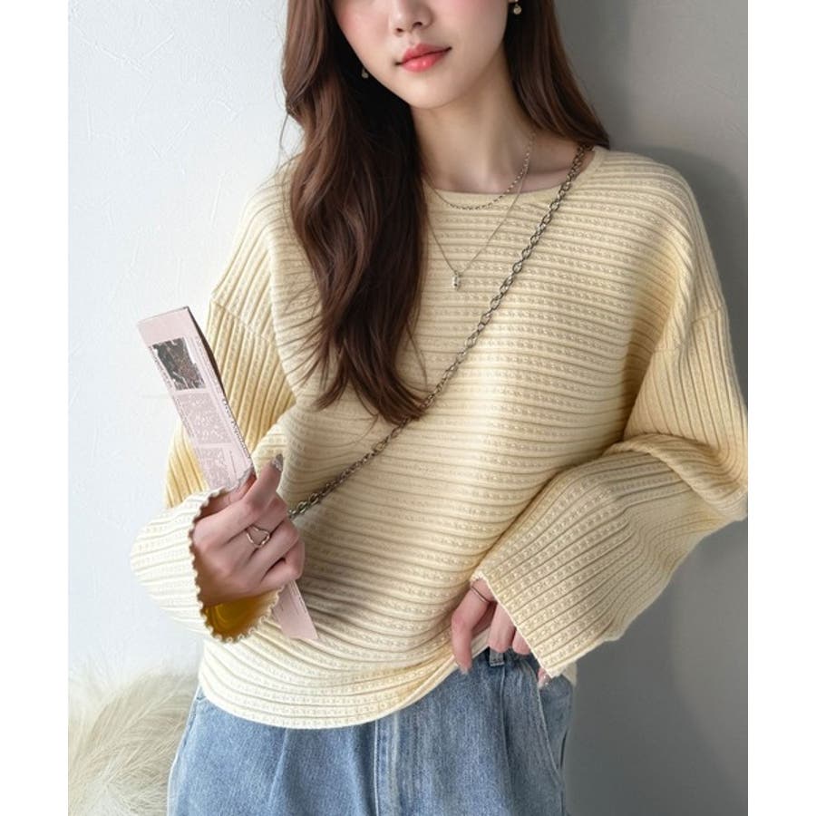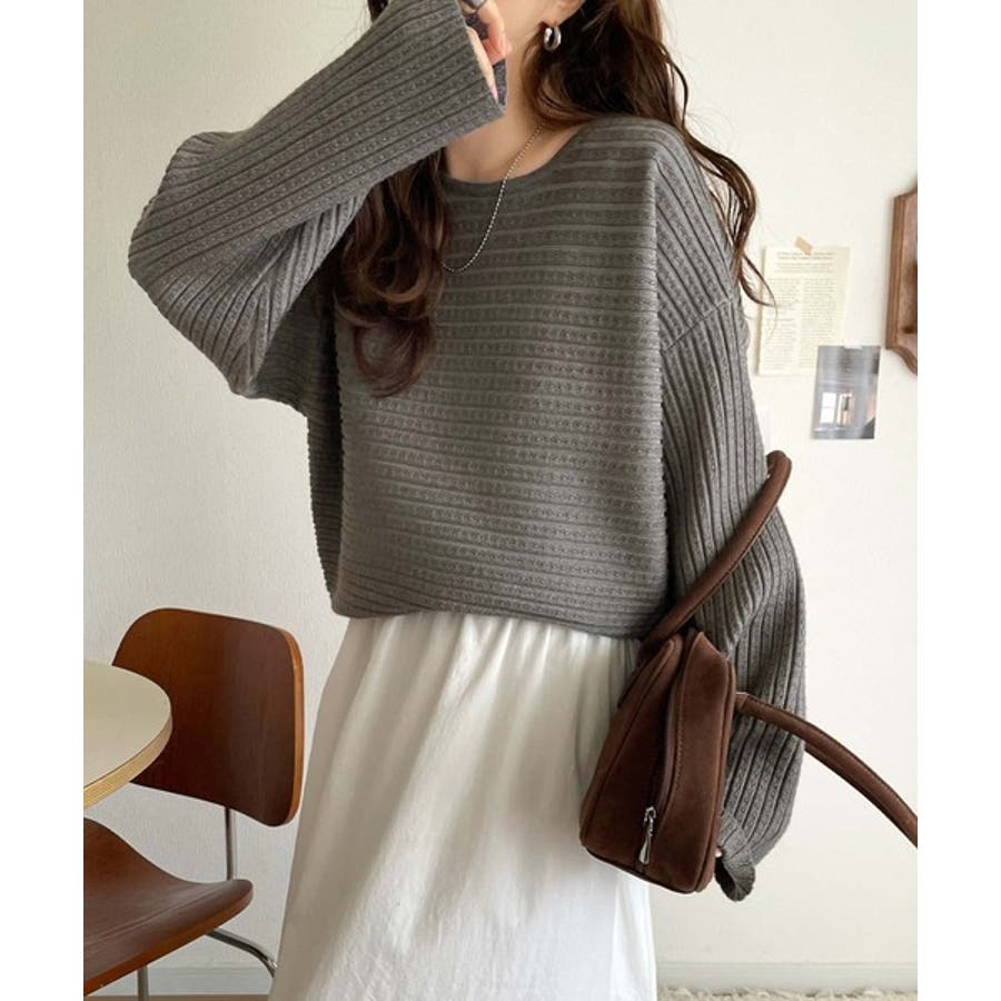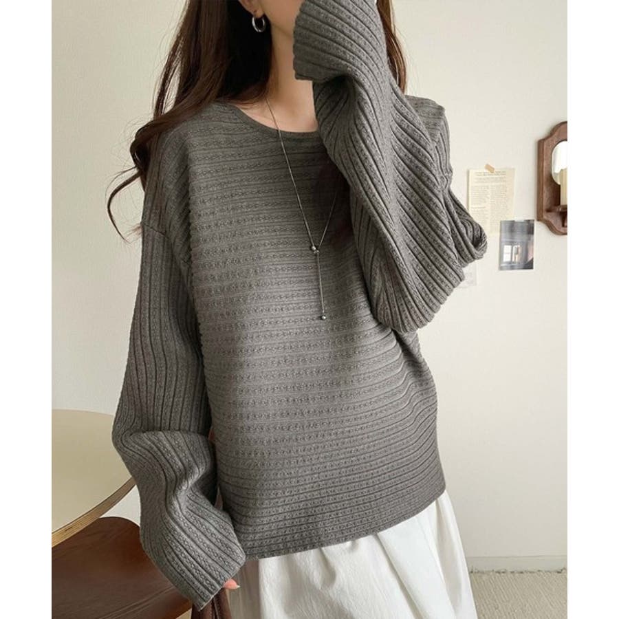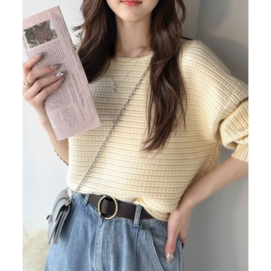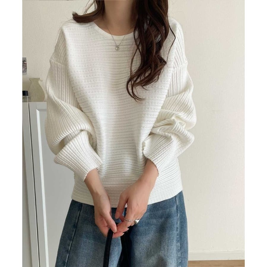 ゆるリブの抜け感。ドルマン袖クルーネックニットトップス(長袖)