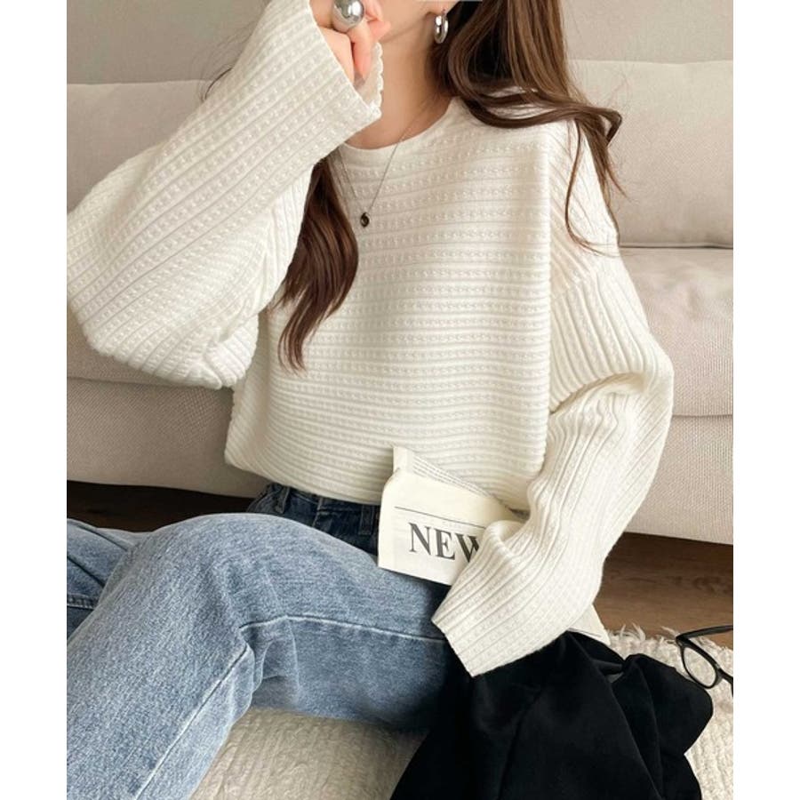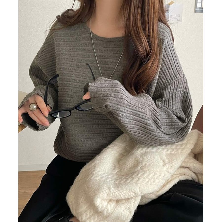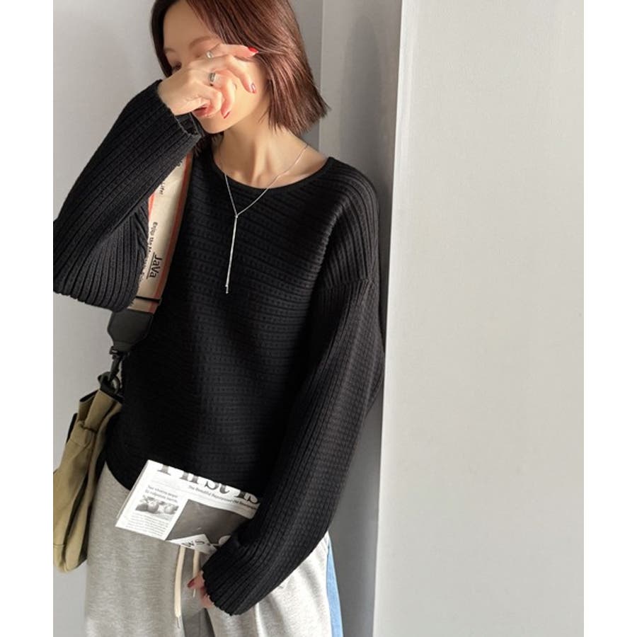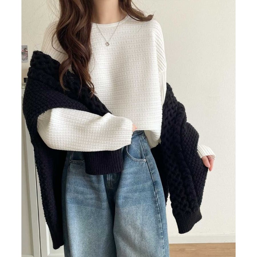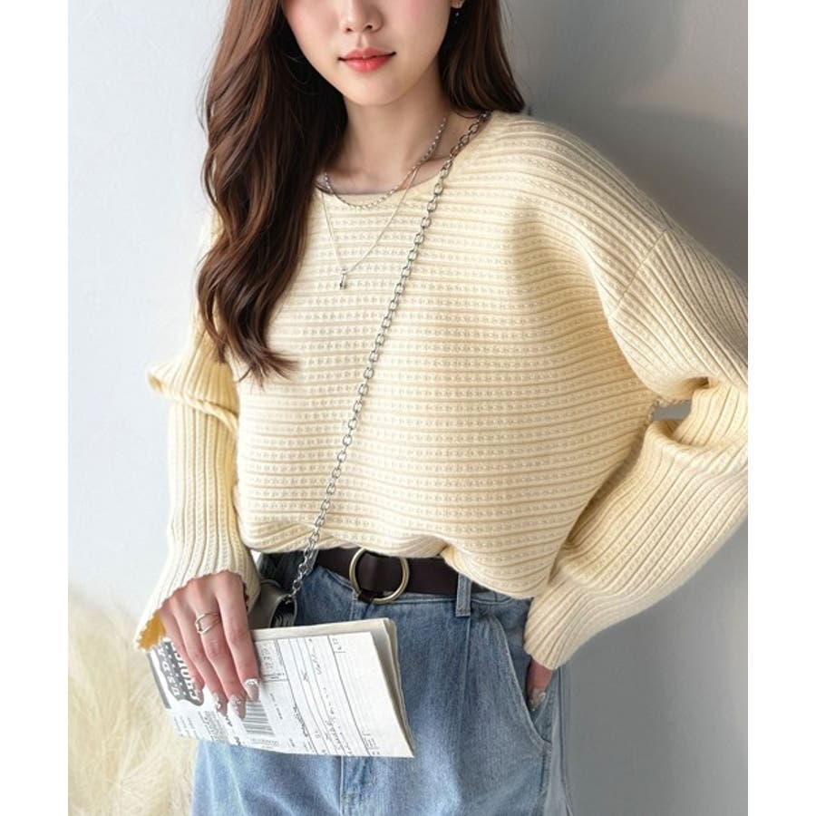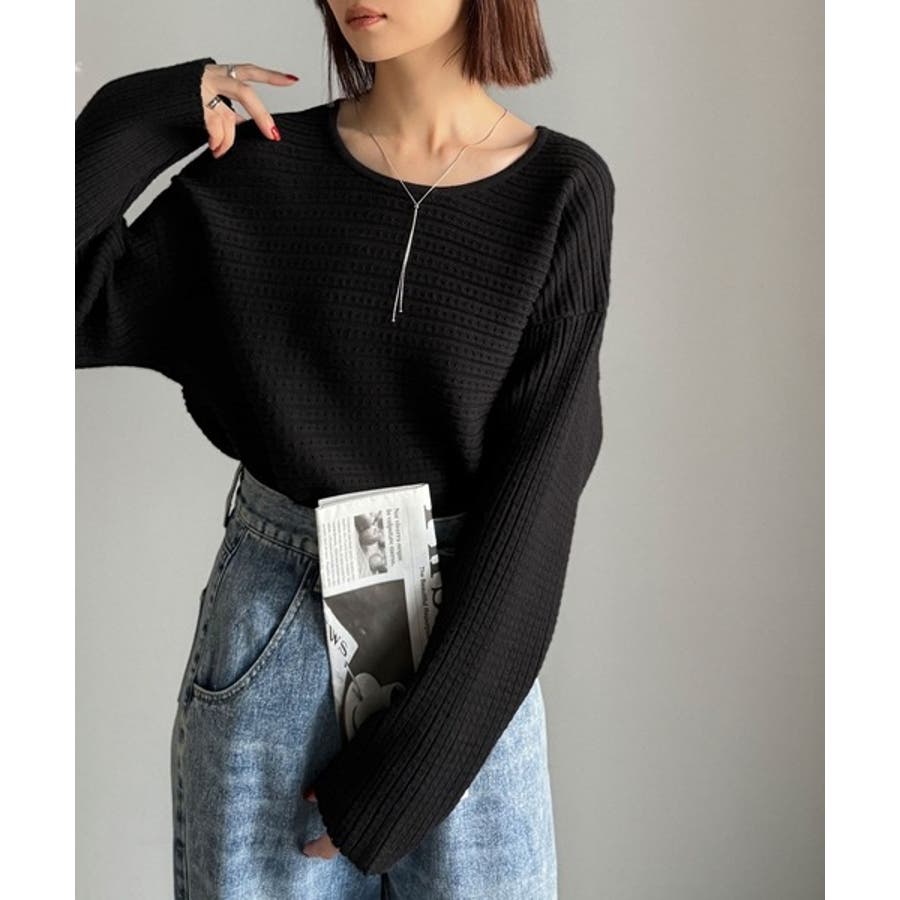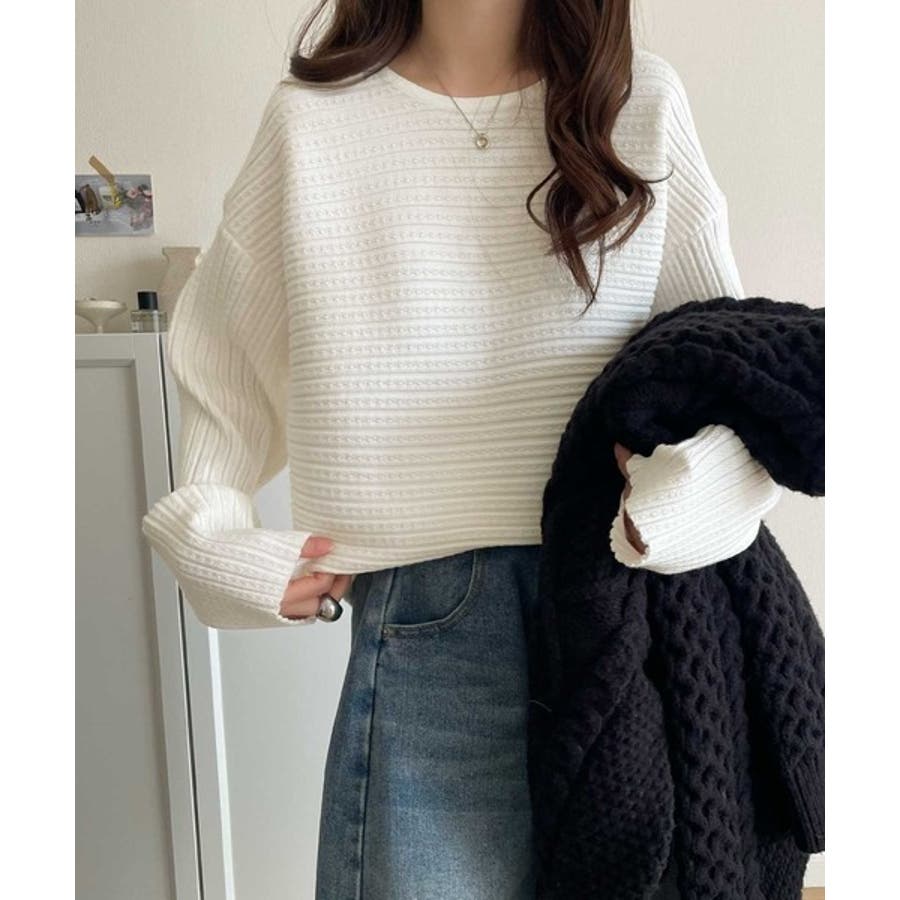ゆるリブの抜け感。ドルマン袖クルーネックニットトップス(長袖)