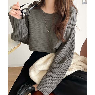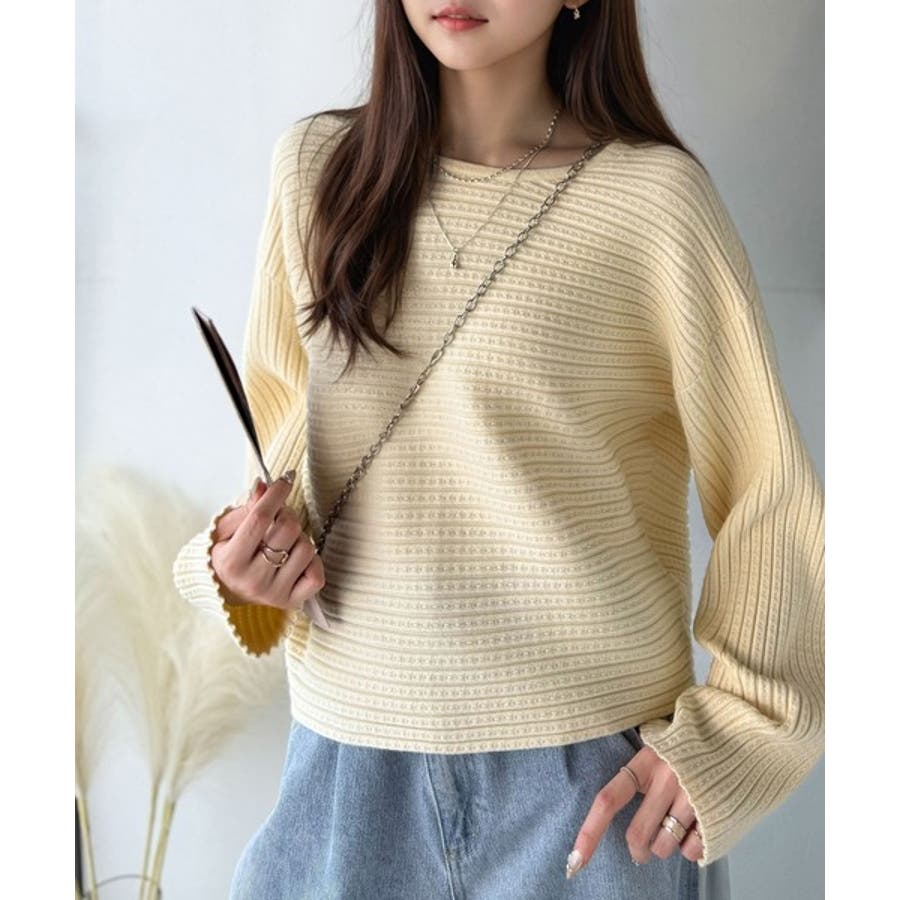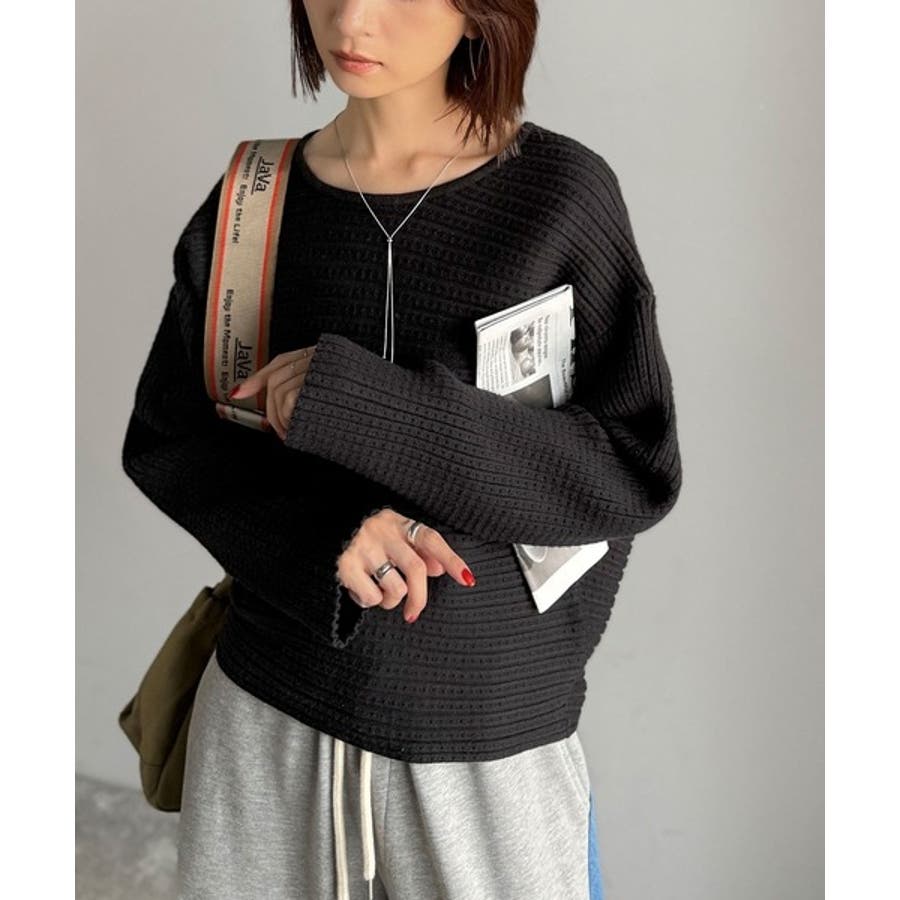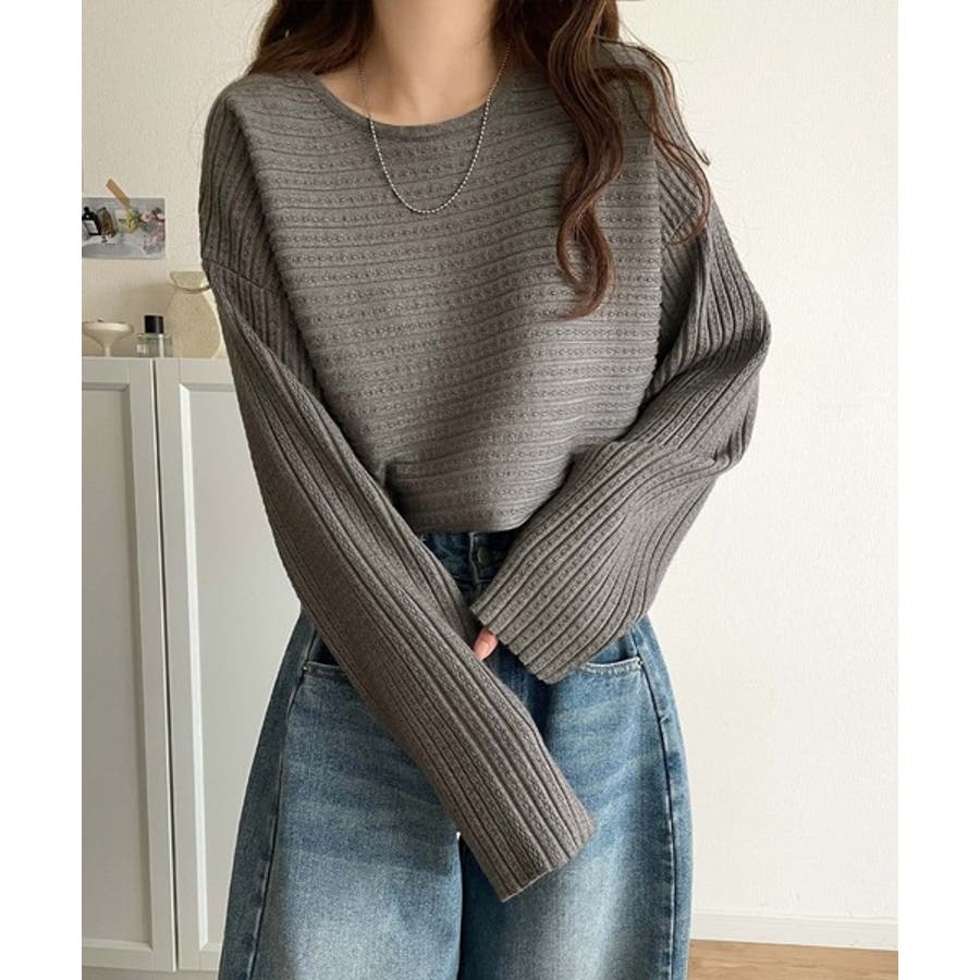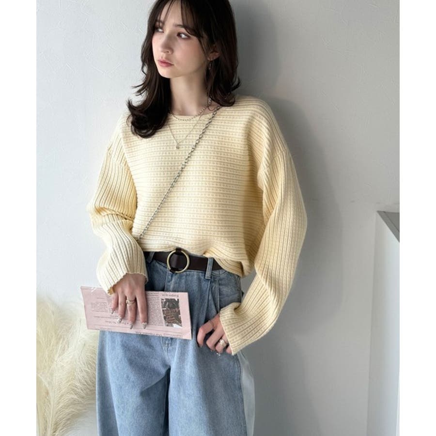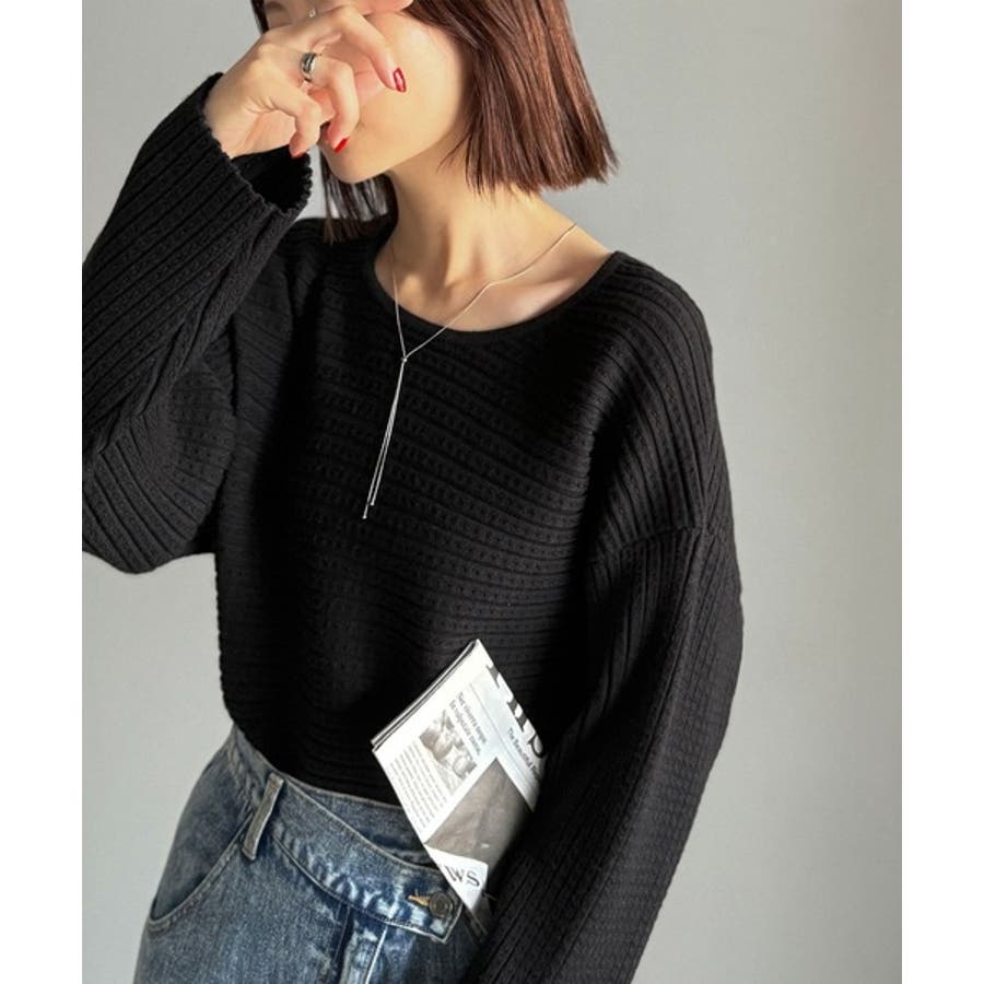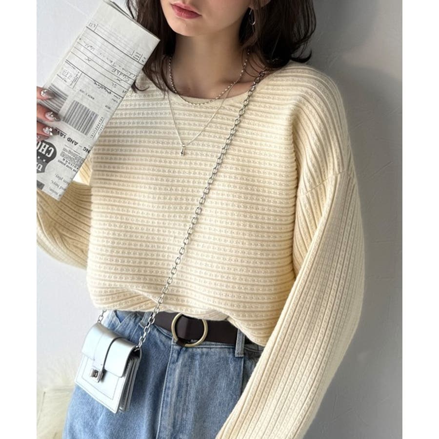 ゆるリブの抜け感。ドルマン袖クルーネックニットトップス(長袖)