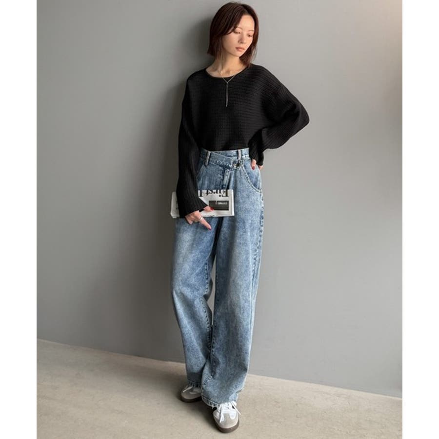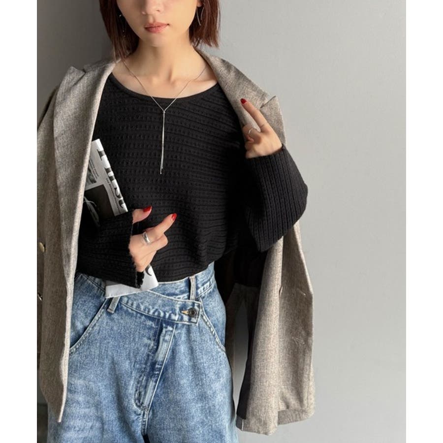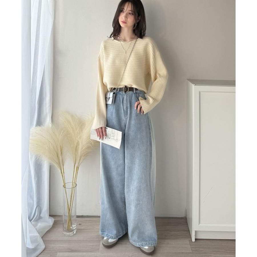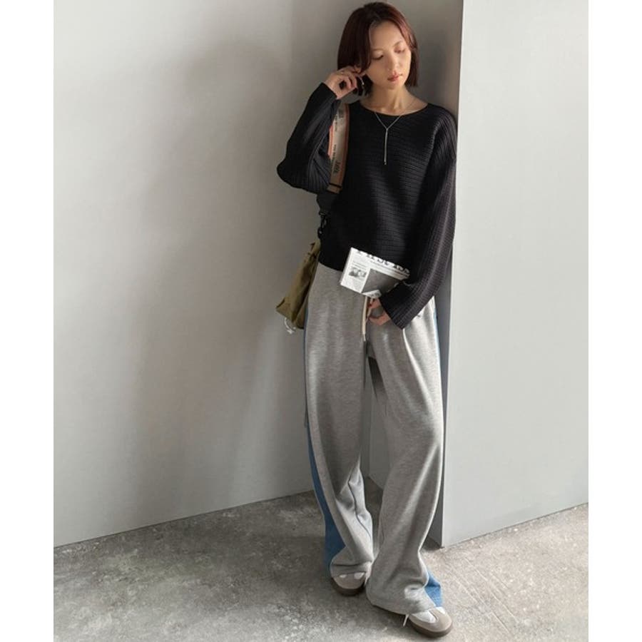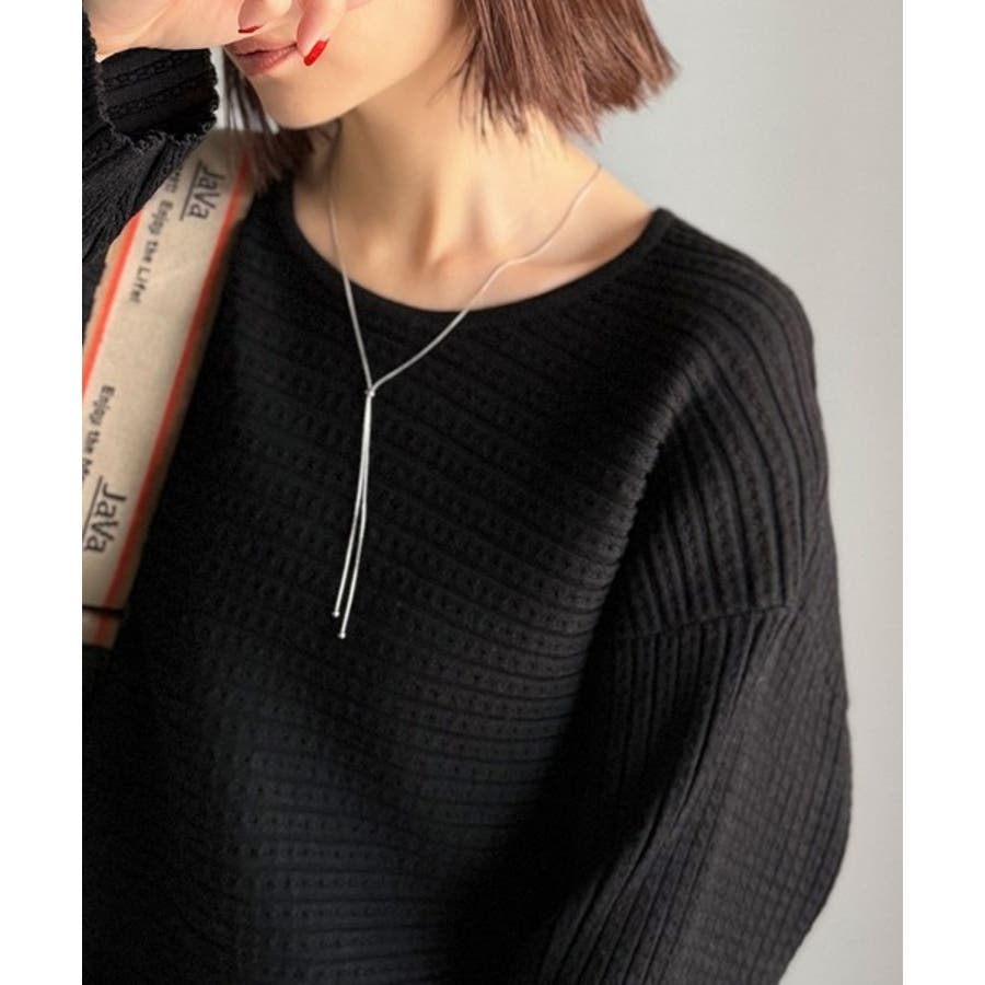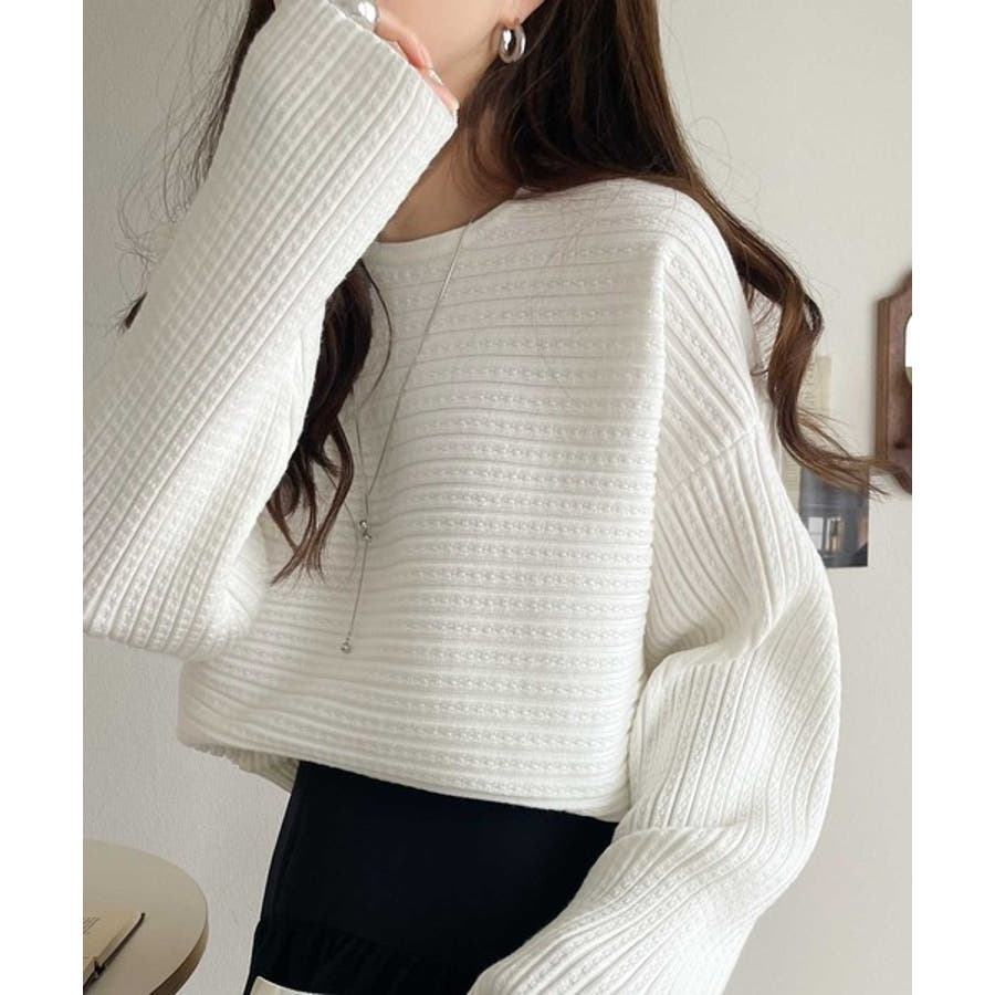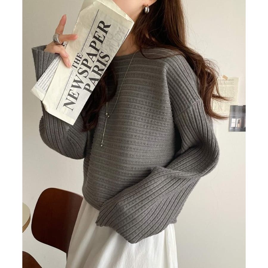 ゆるリブの抜け感。ドルマン袖クルーネックニットトップス(長袖)
