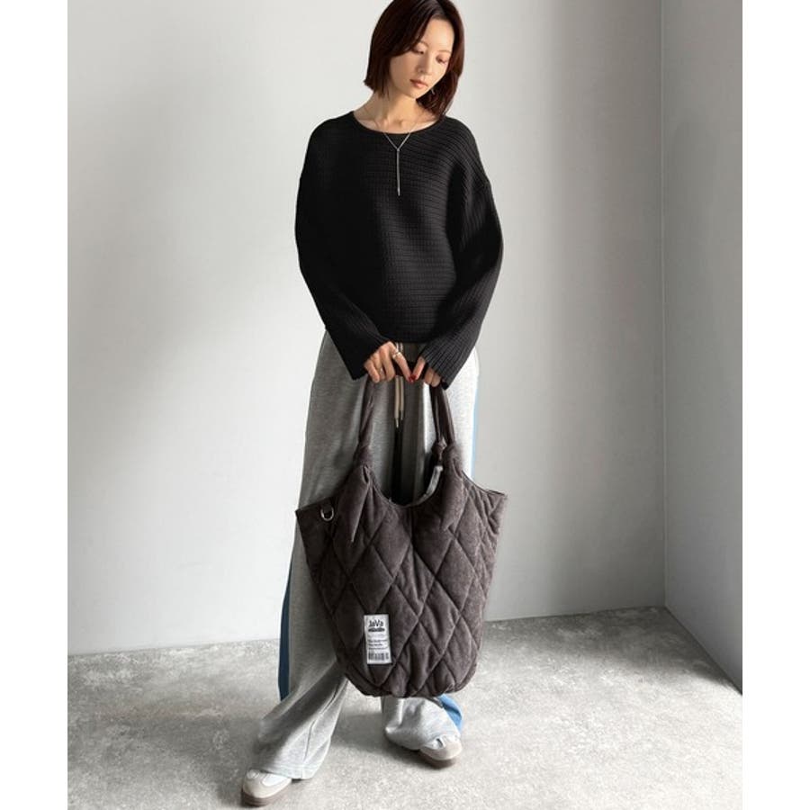 シンプルなデザインで、どんなコーディネートにも合わせやすいクルーネックリブ編みプルオーバー。