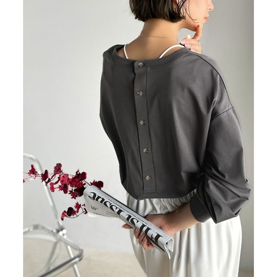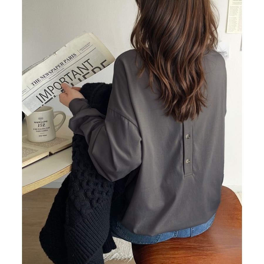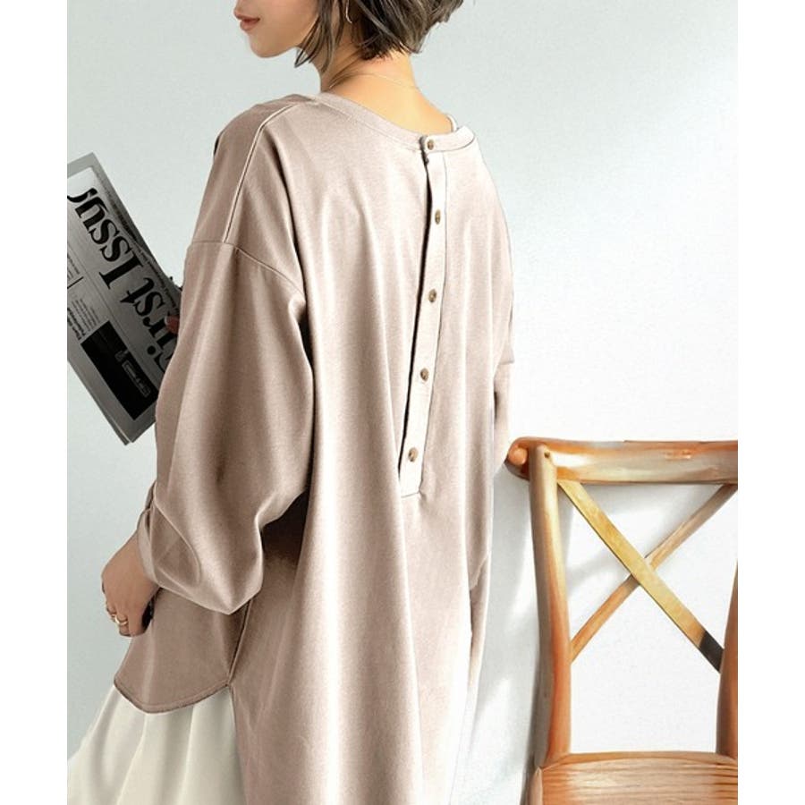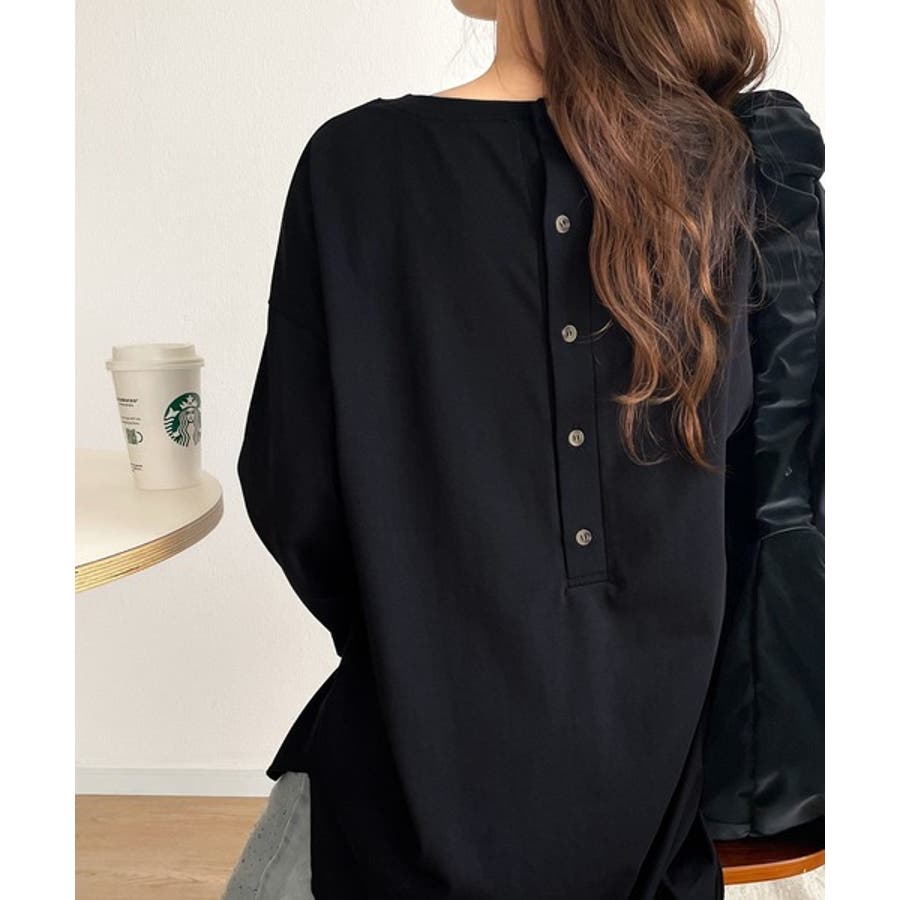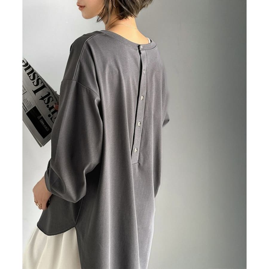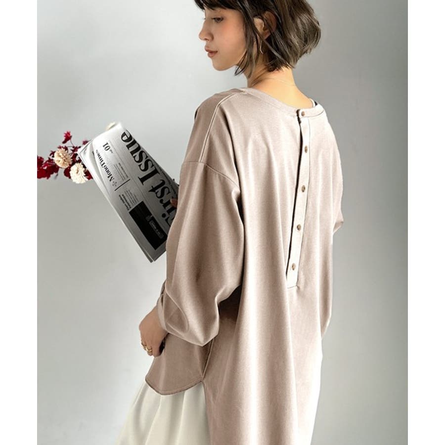 ふんわり袖と前後差デザインで、1枚で着映え◎バックのヘンリーネックボタンがさりげないアクセントに。