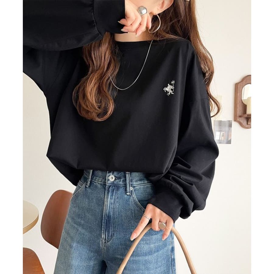 ・左胸のエンブレム刺繍が着こなしのアクセントに