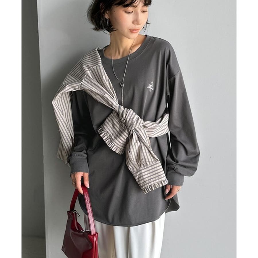 後ろ姿も、抜かりなく。胸刺繍 シルケット素材 ゆったりシルエット