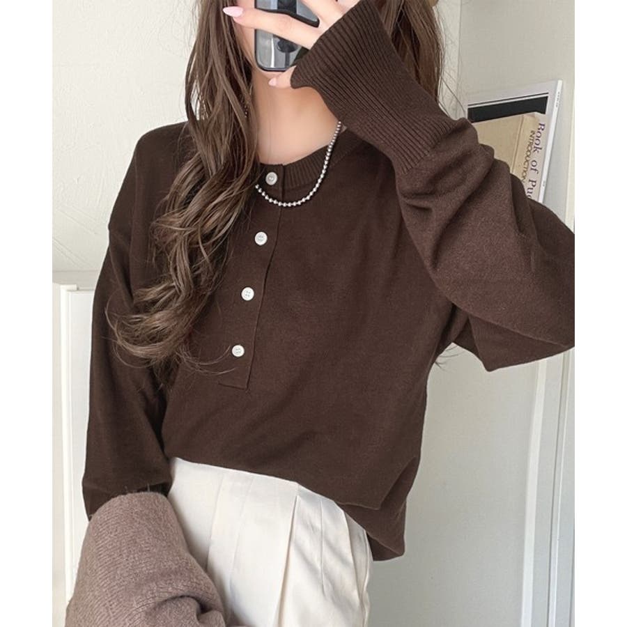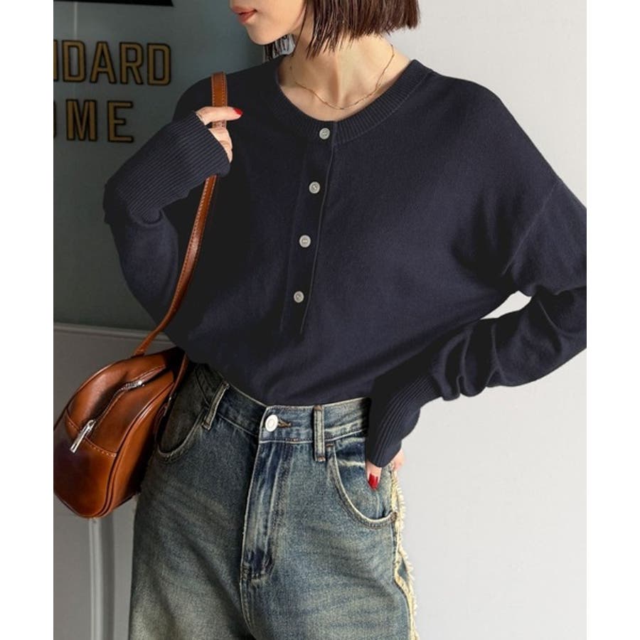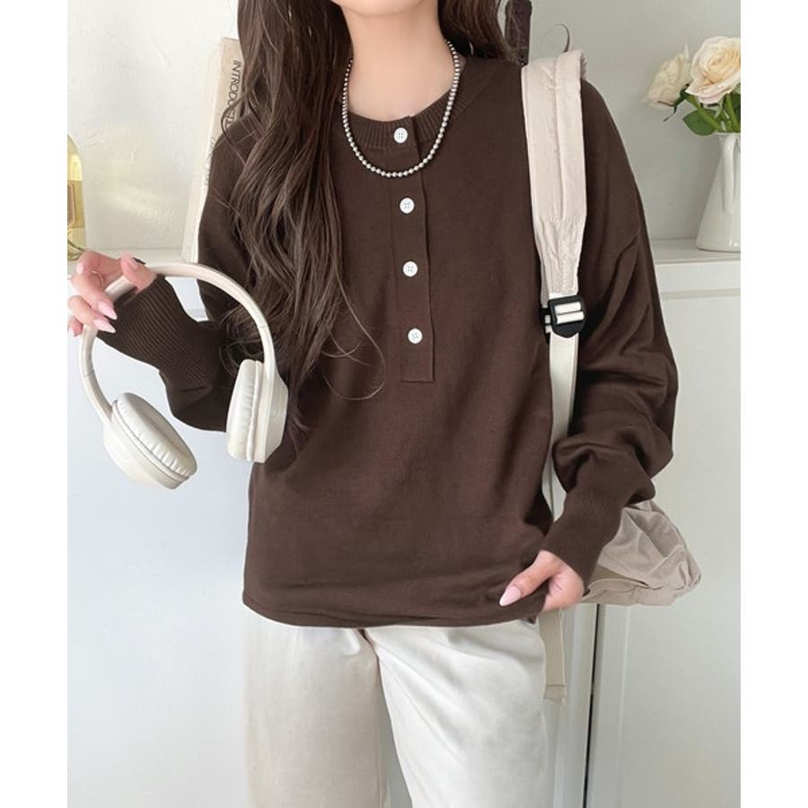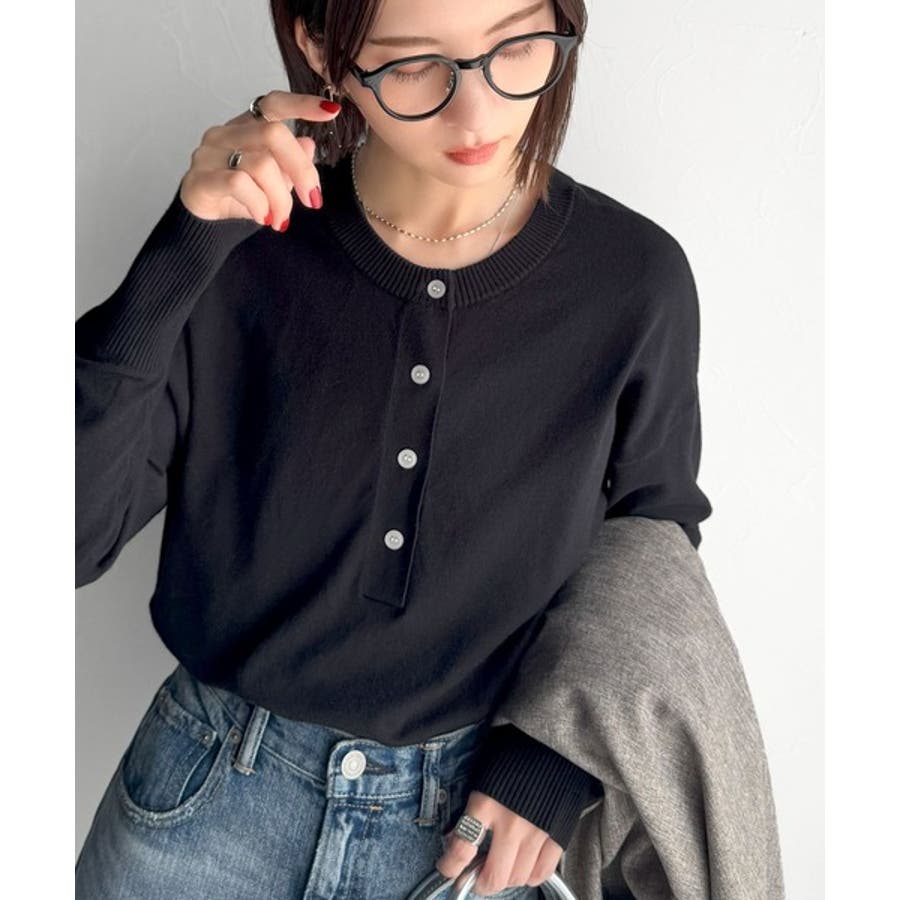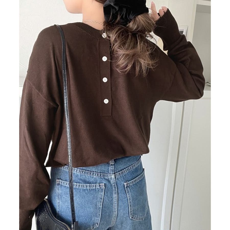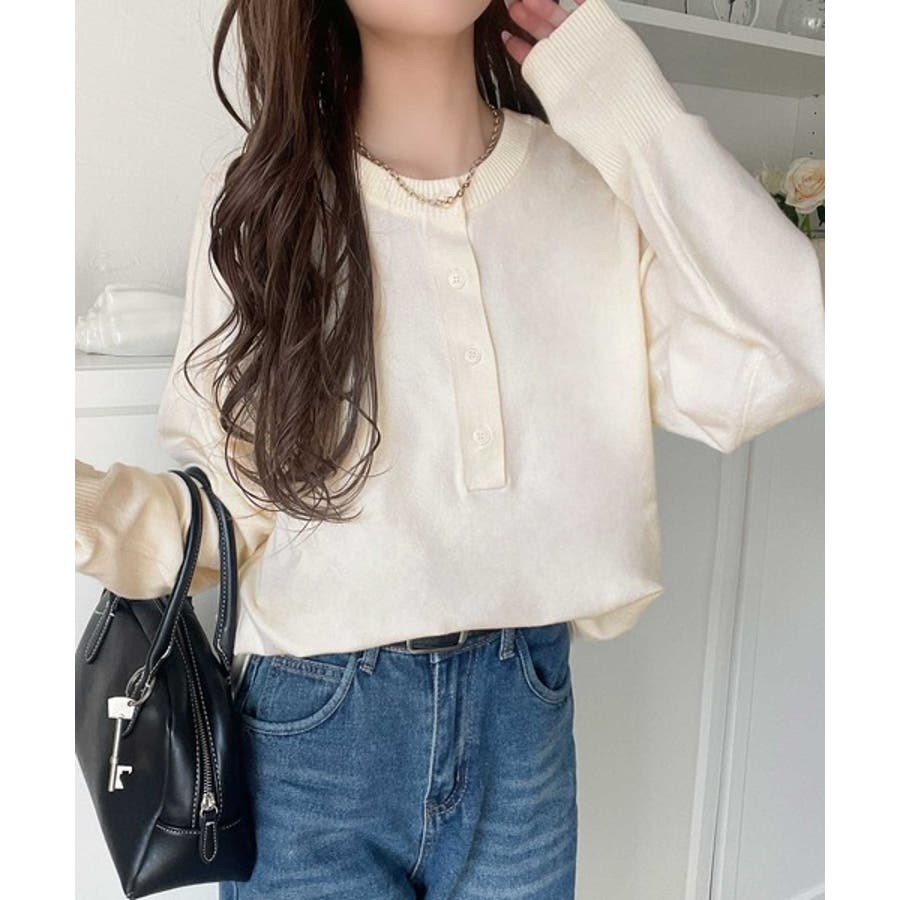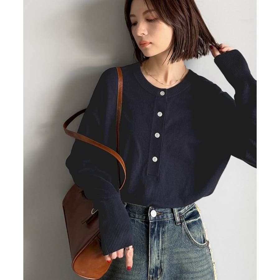 ニットのぬくもりに、少しのアクセント。前後2wayヘンリーネックニットプルオーバ…
