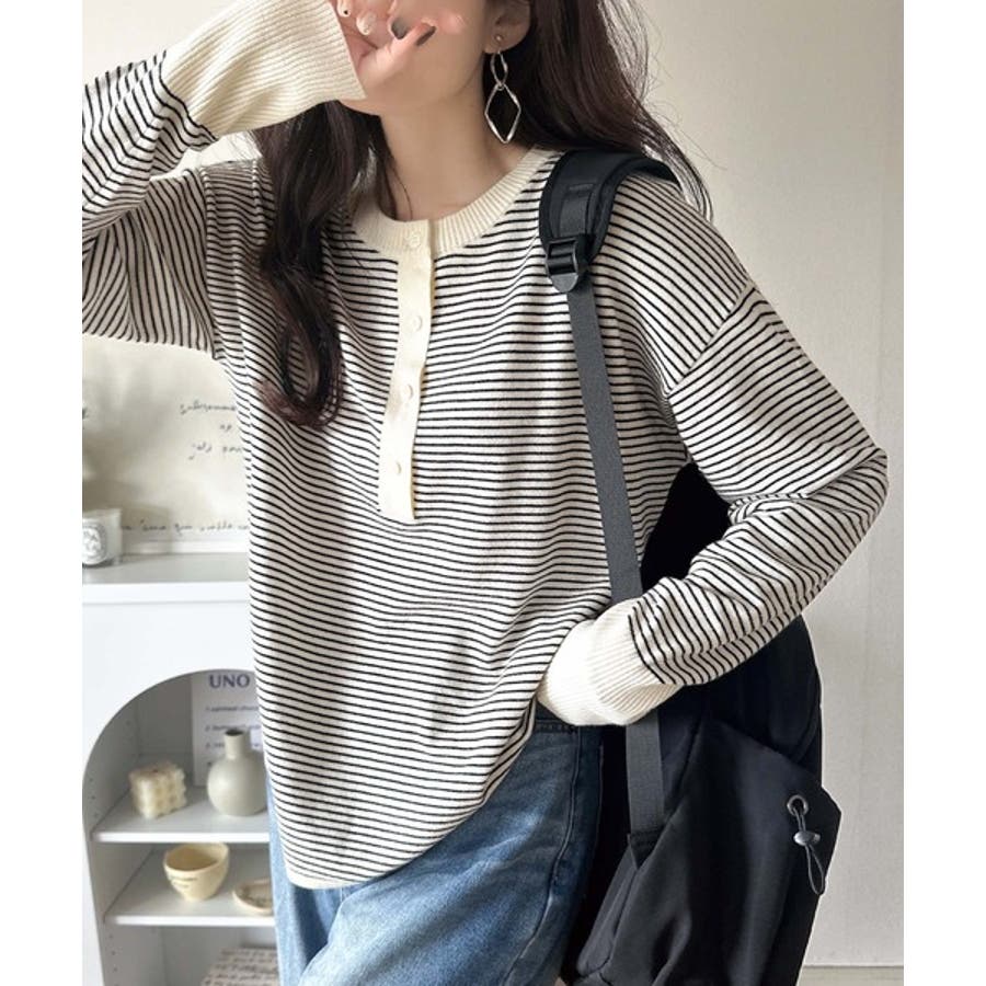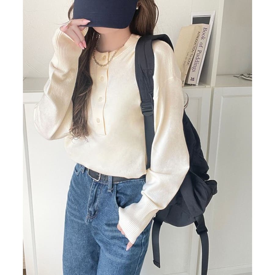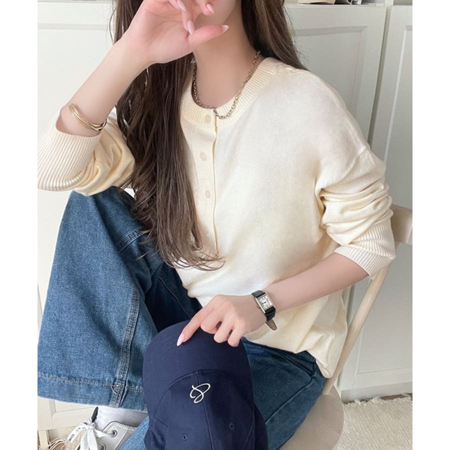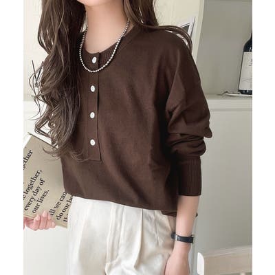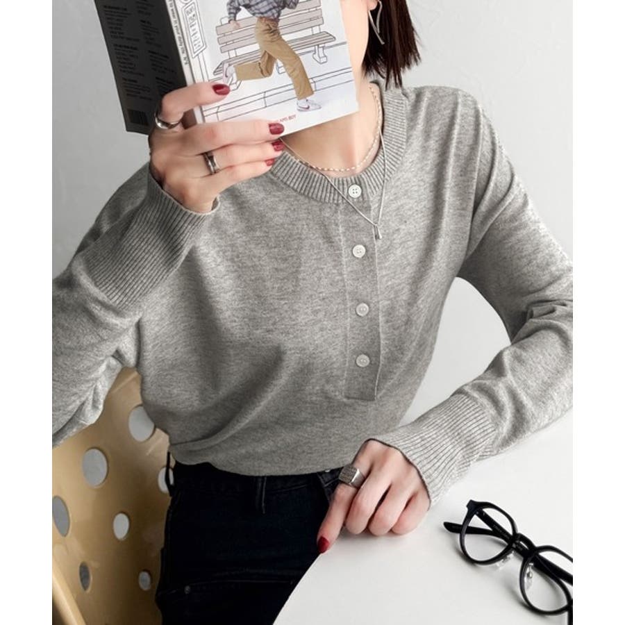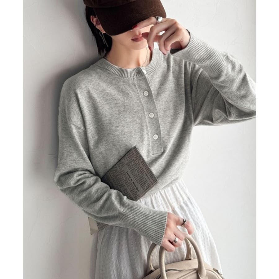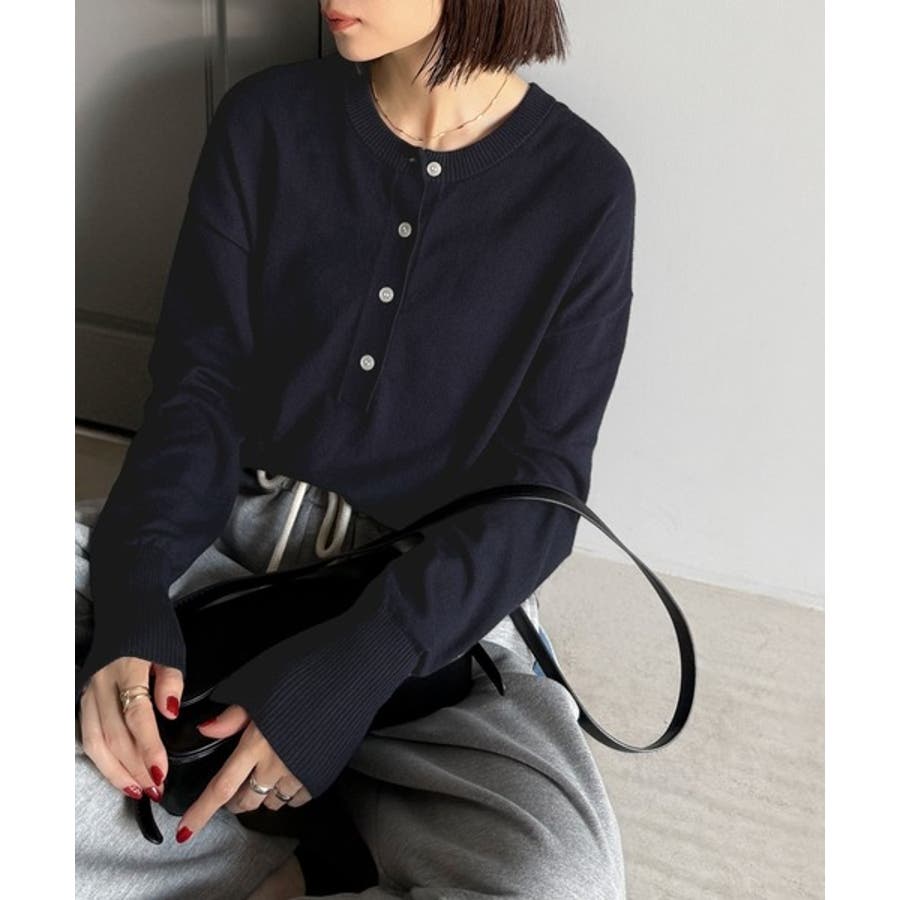 ニットのぬくもりに、少しのアクセント。前後2wayヘンリーネックニットプルオーバ…