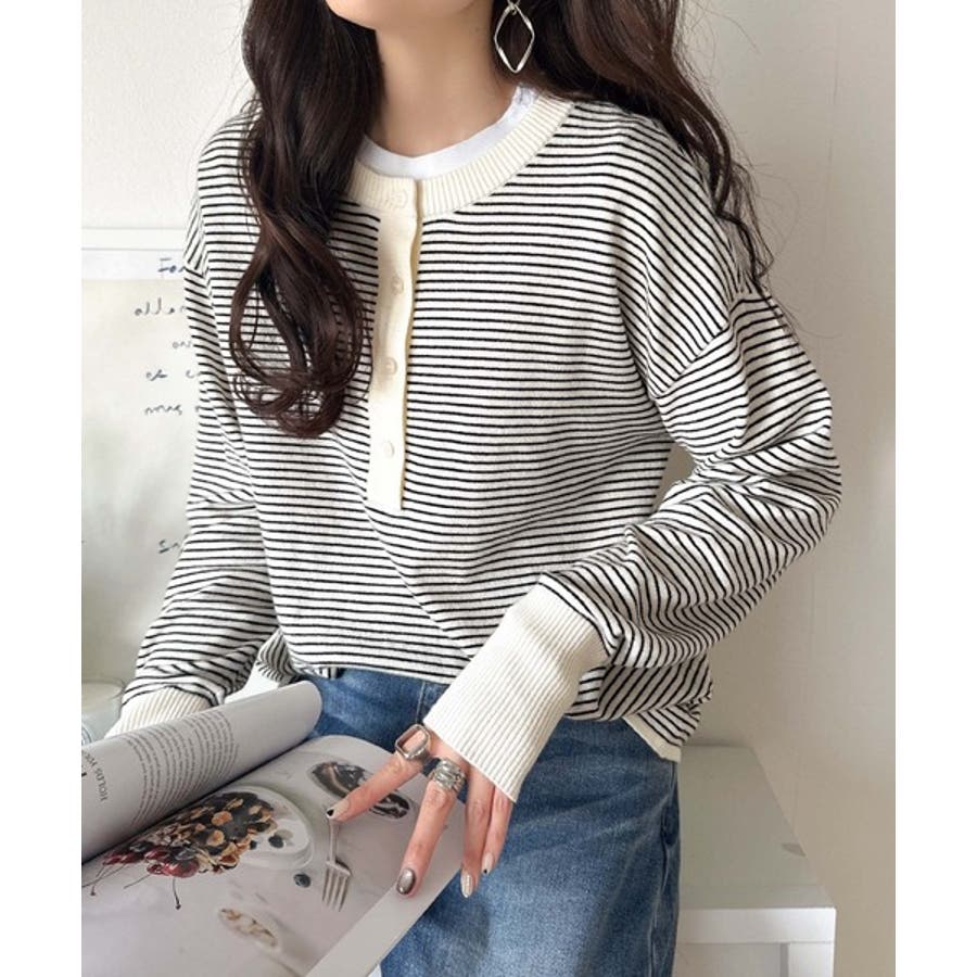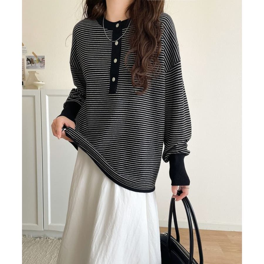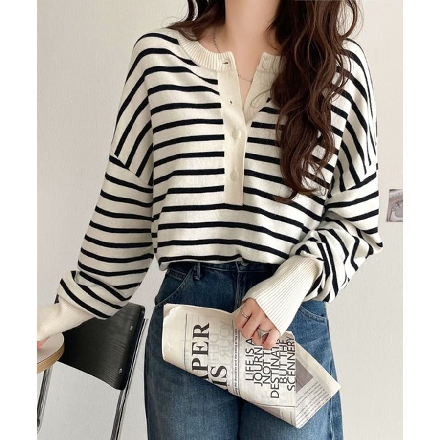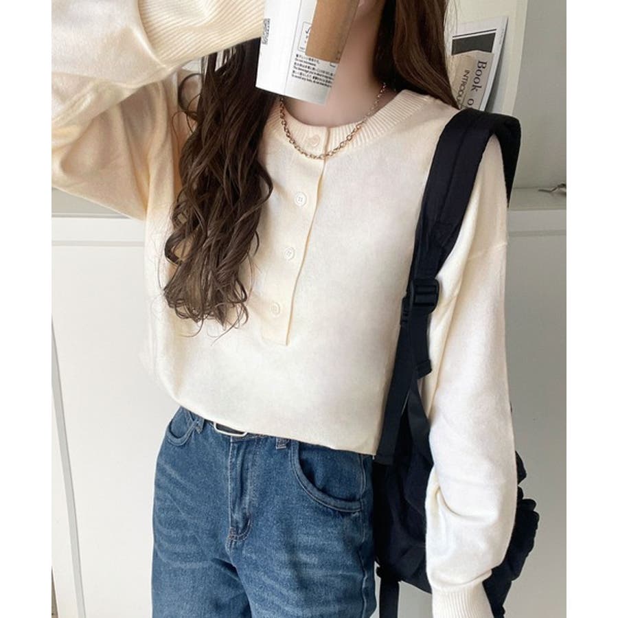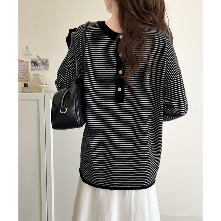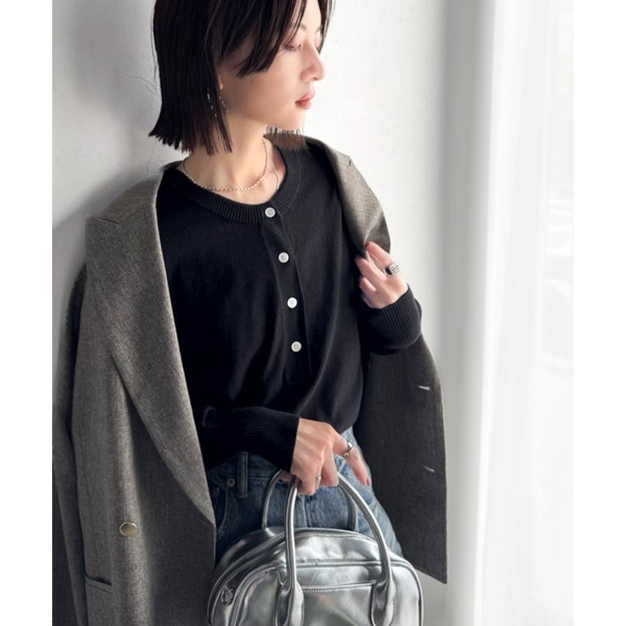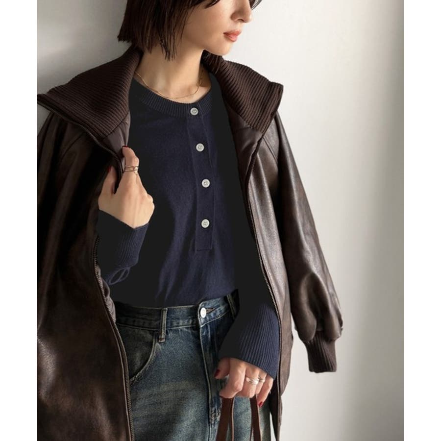ニットのぬくもりに、少しのアクセント。前後2wayヘンリーネックニットプルオーバ…