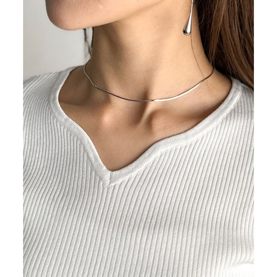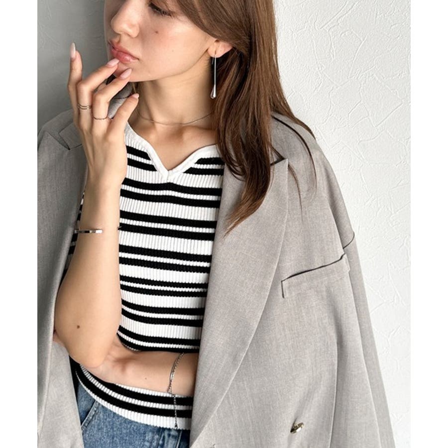 デコルテをきれいに見せる絶妙な開き具合で、ジャケットやカーディガンのインナーとしても映えるデザイン◎