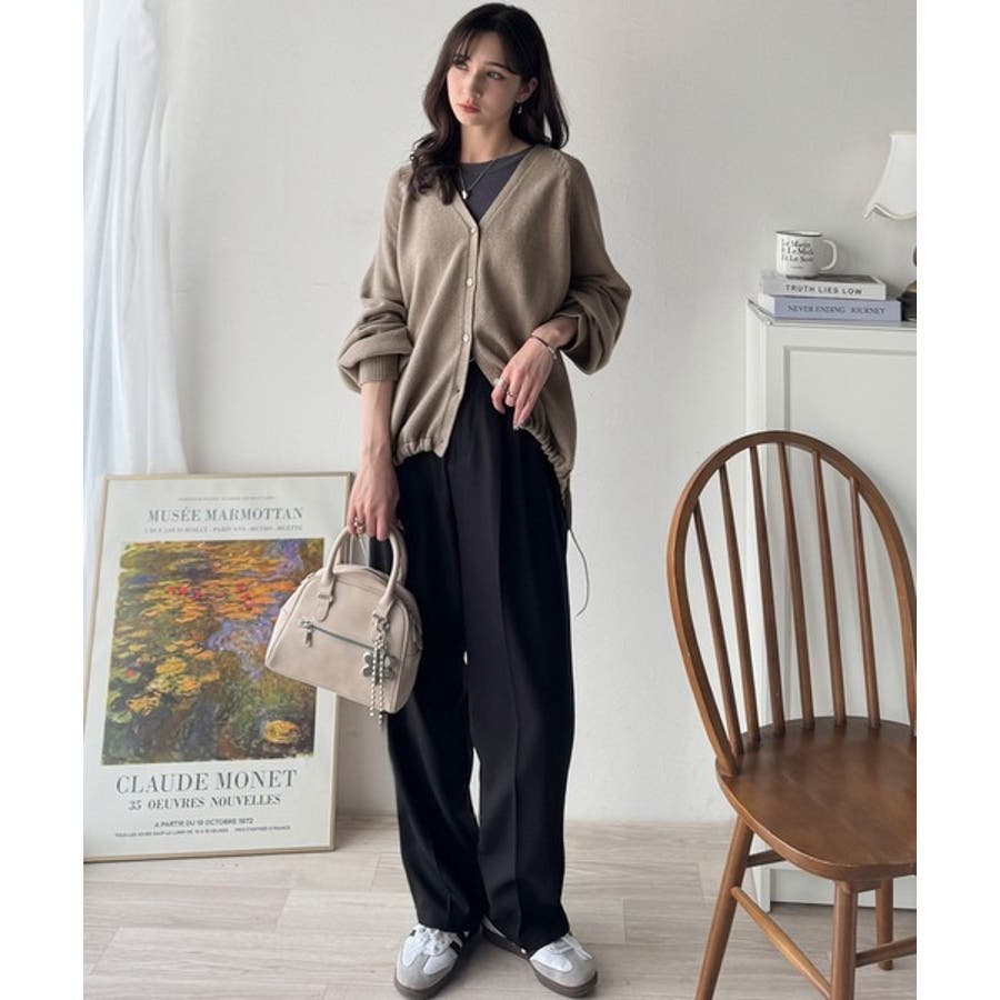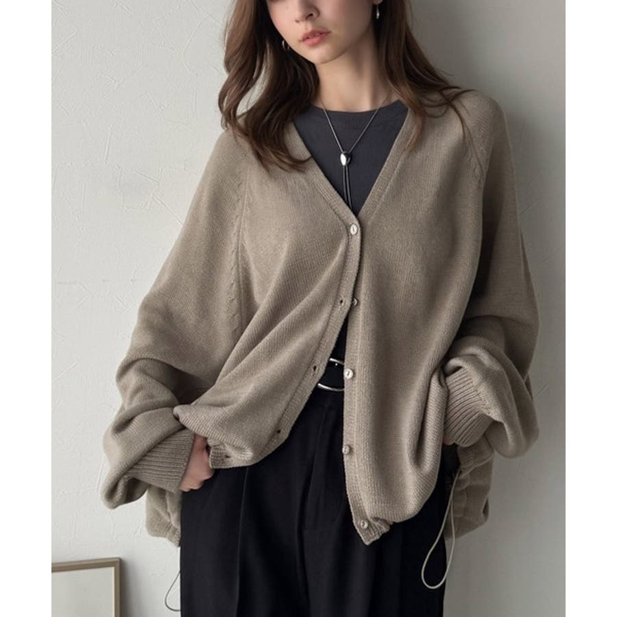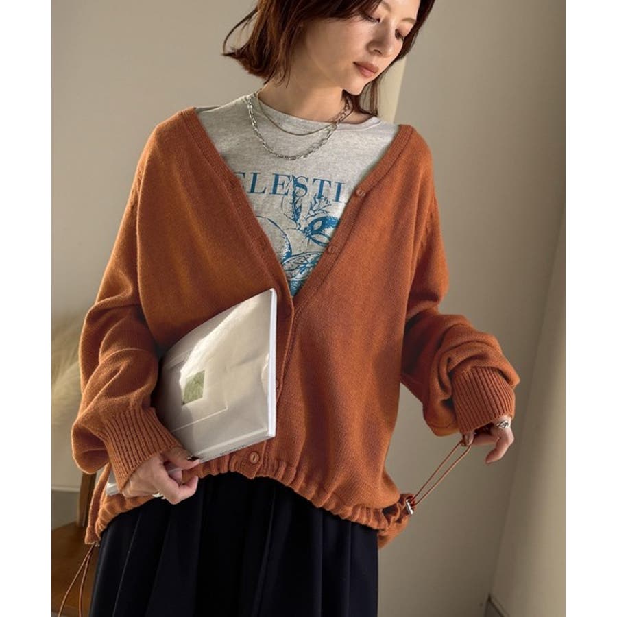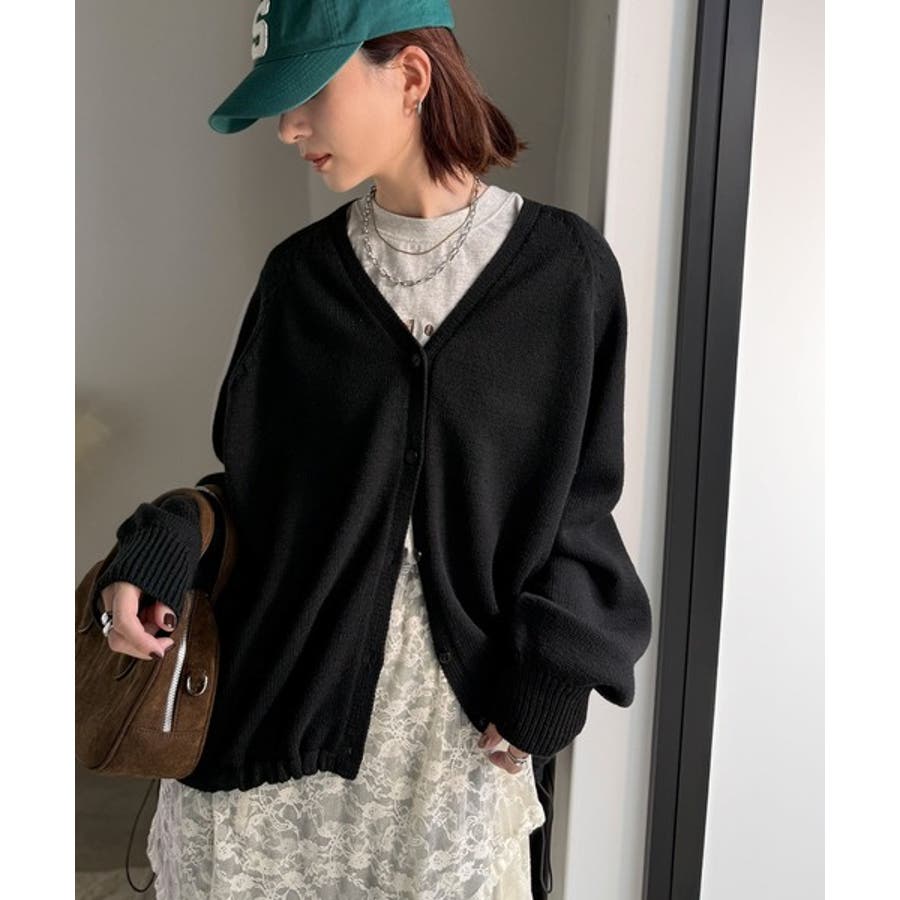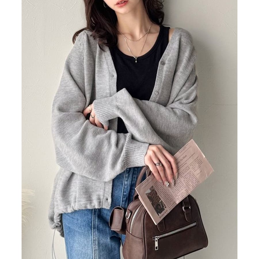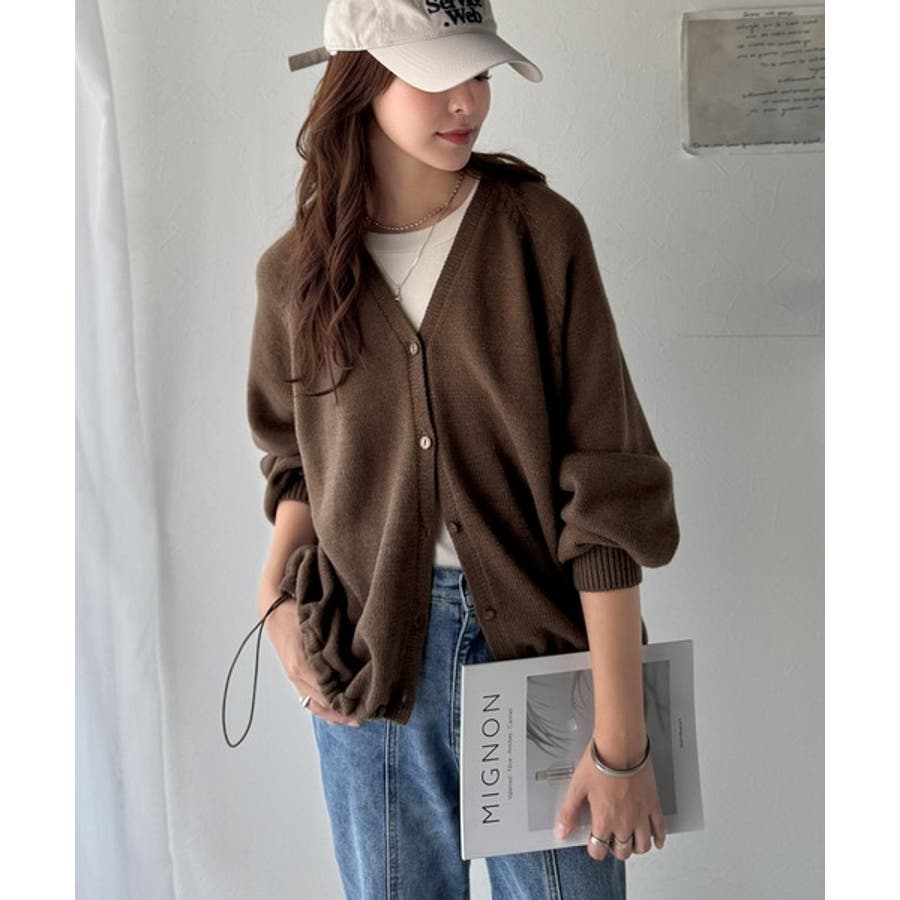 羽織るだけで今っぽいバランスが完成するドロストVネックカーディガン。