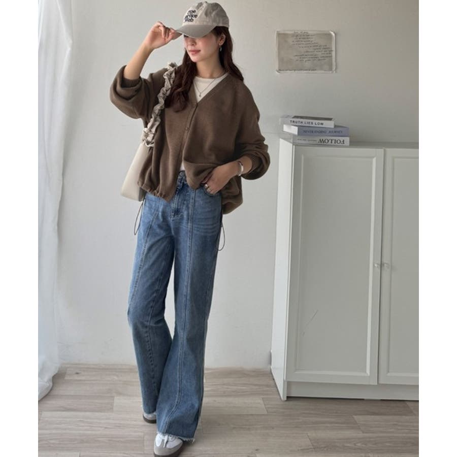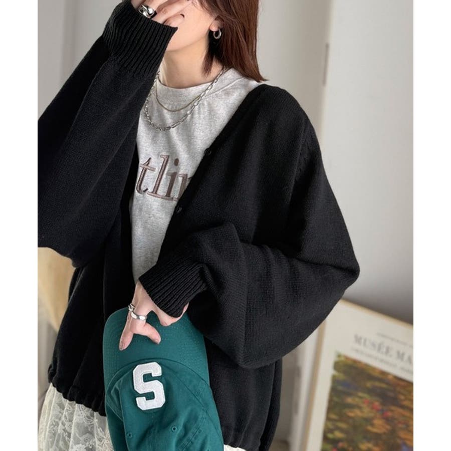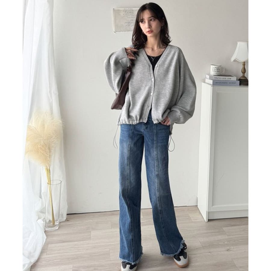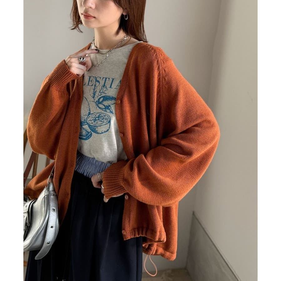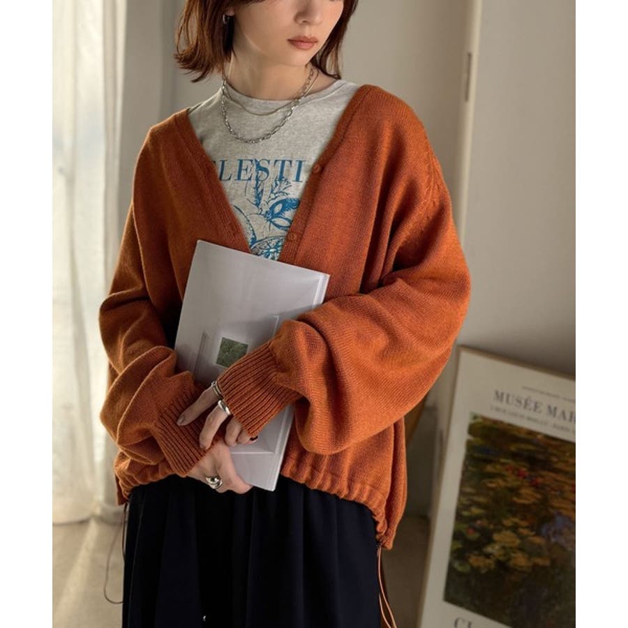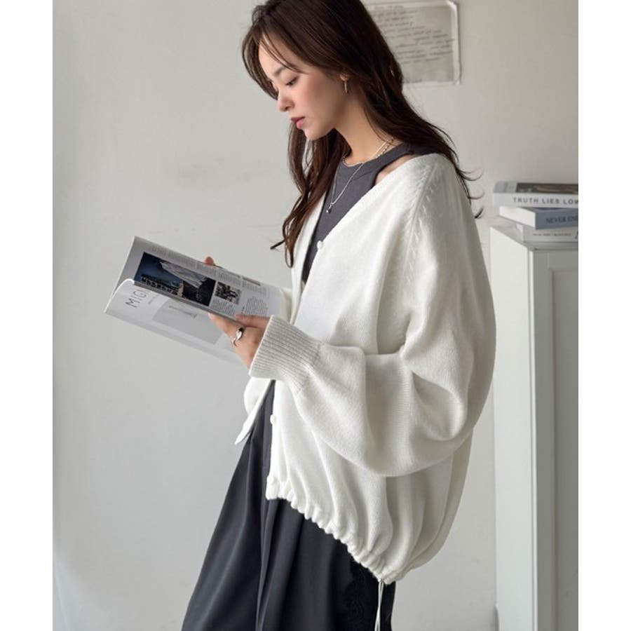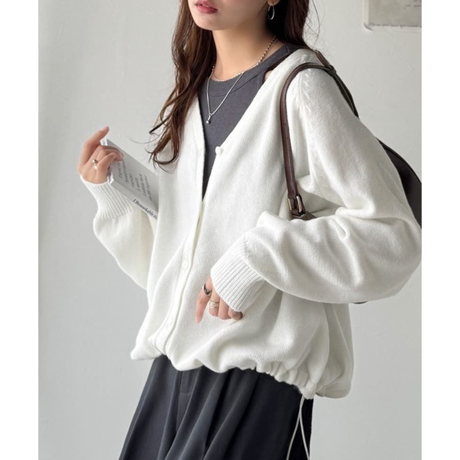 羽織るだけで今っぽいバランスが完成するドロストVネックカーディガン。