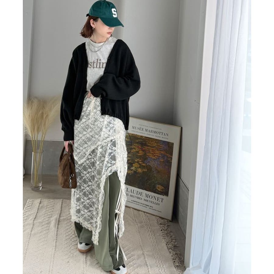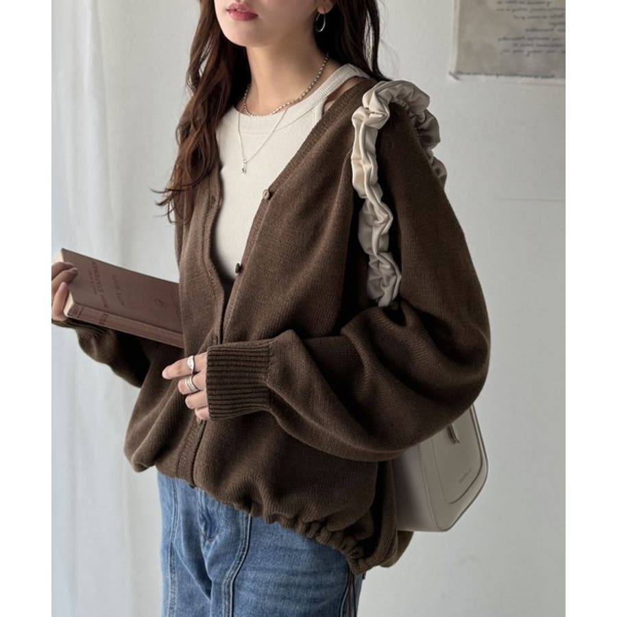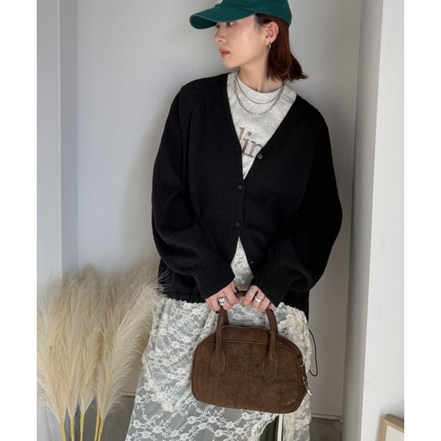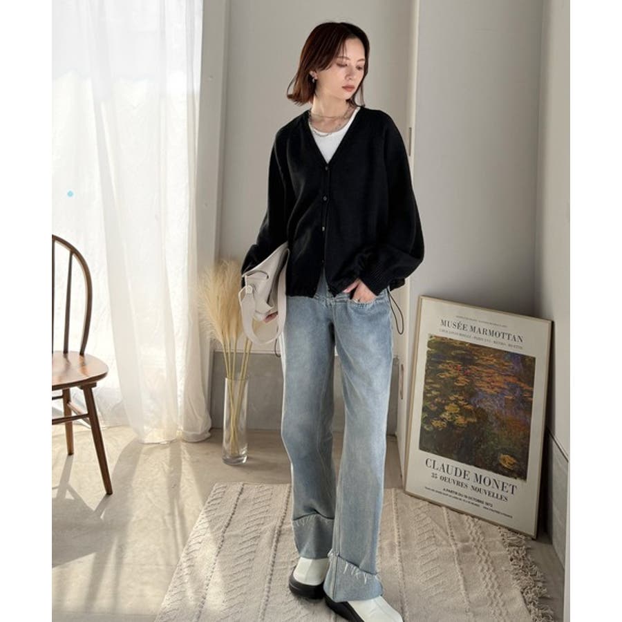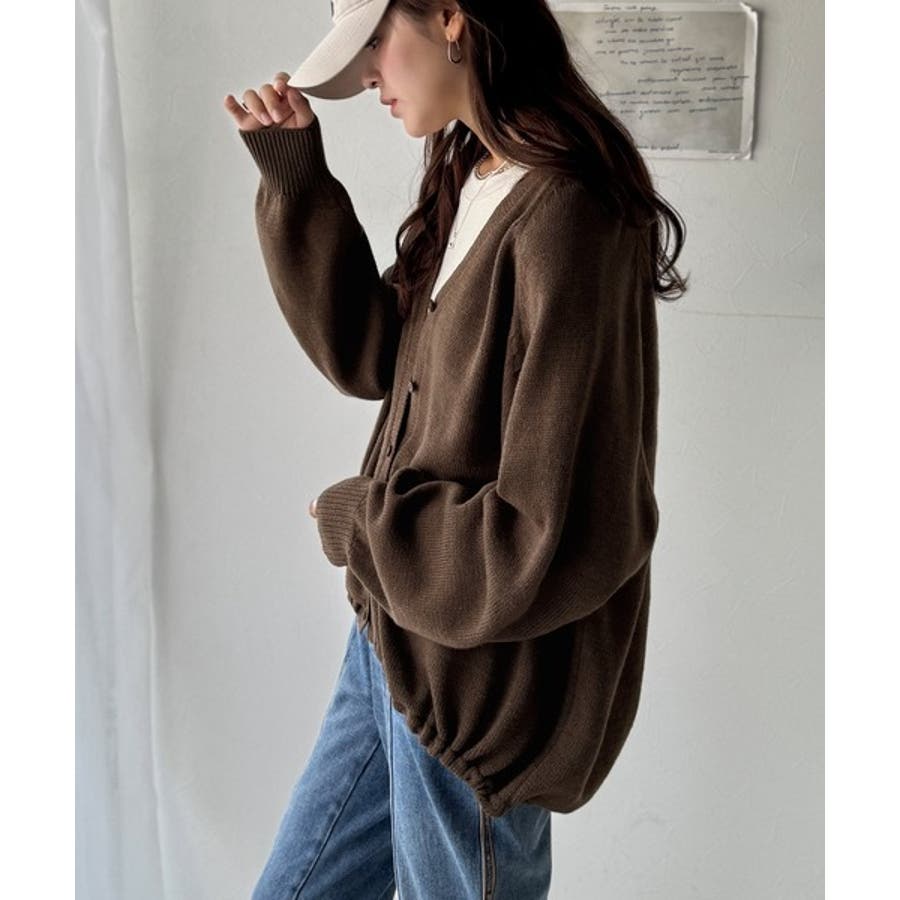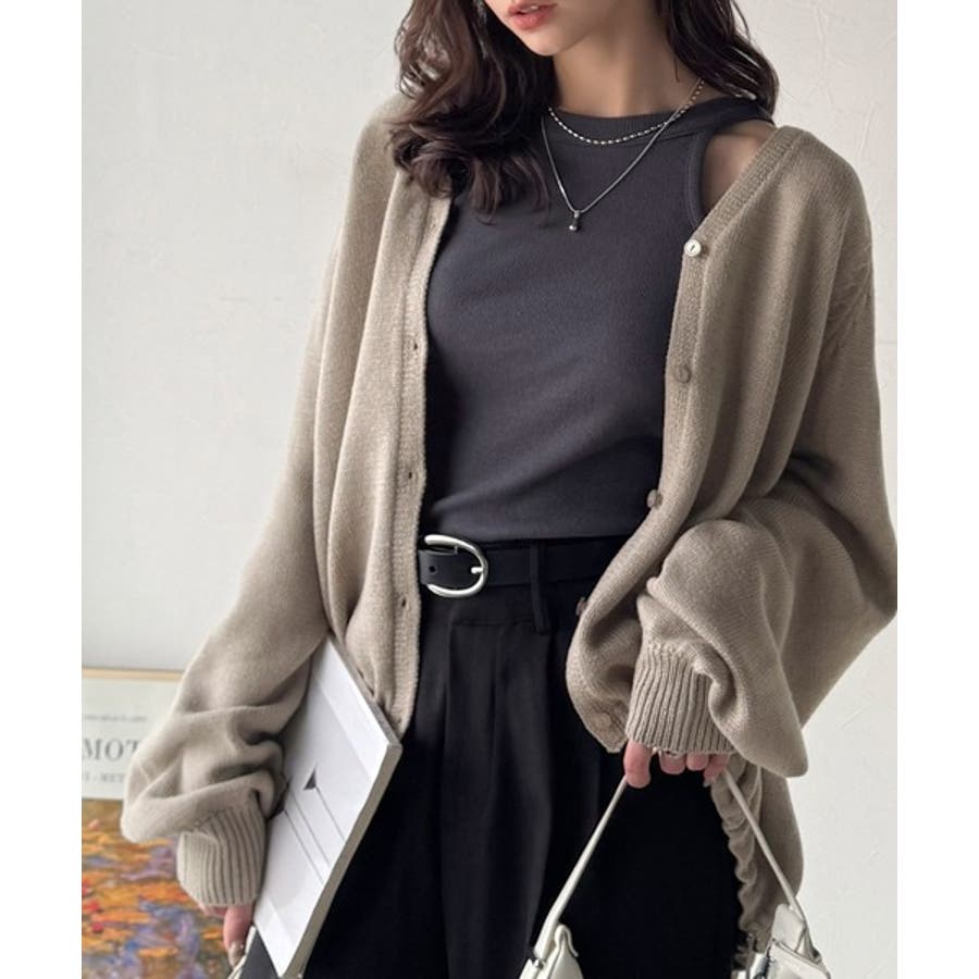 羽織るだけで今っぽいバランスが完成するドロストVネックカーディガン。