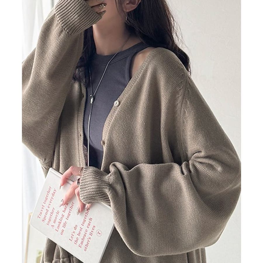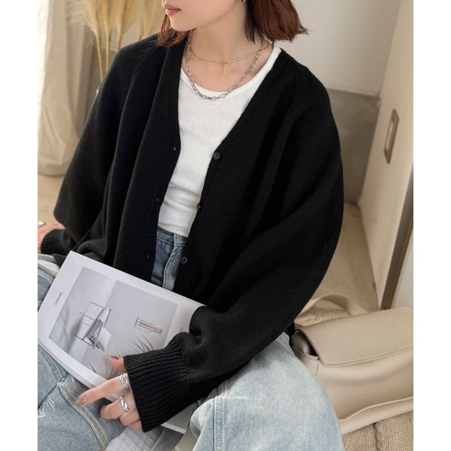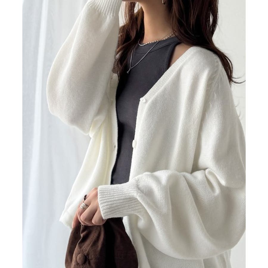 ゆったりとした落ち感のあるシルエットに、Vネックがすっきりとした印象を与えるカーディガンです。