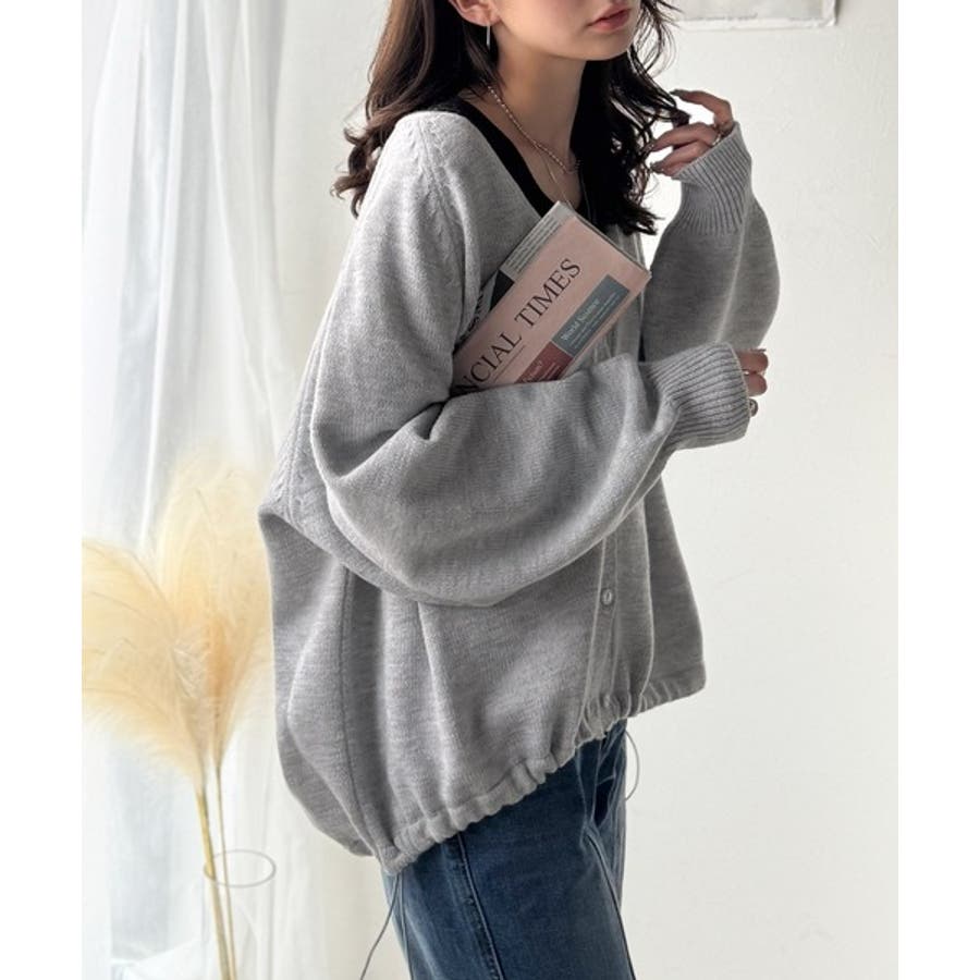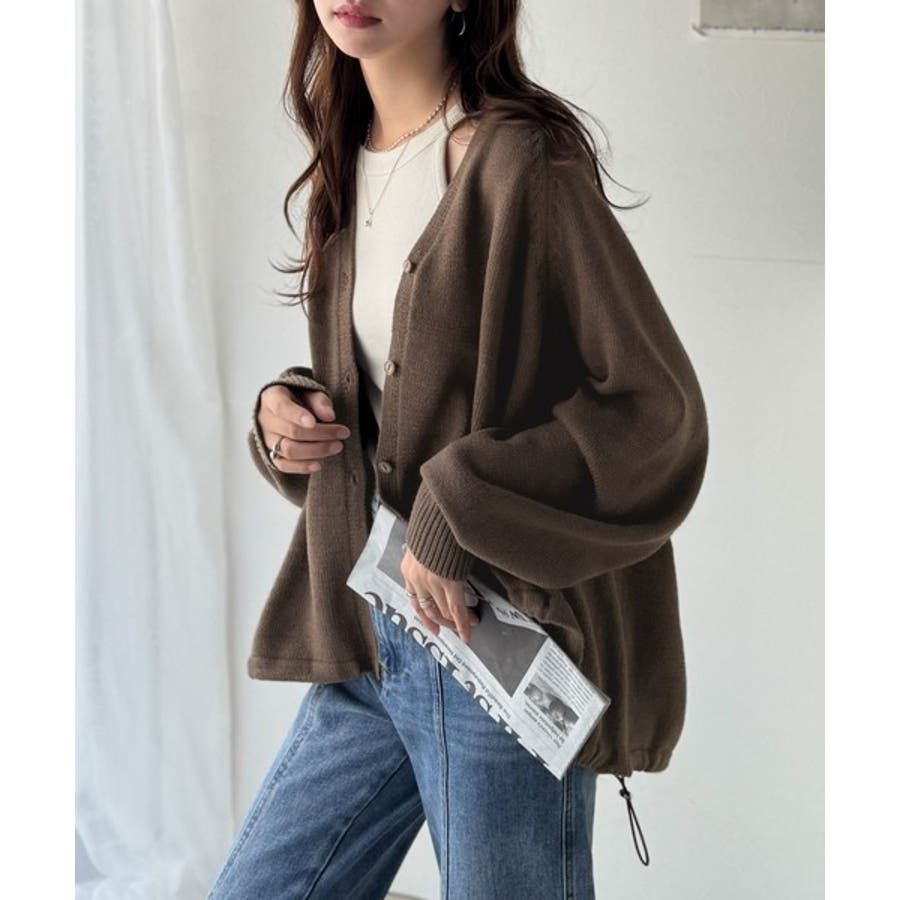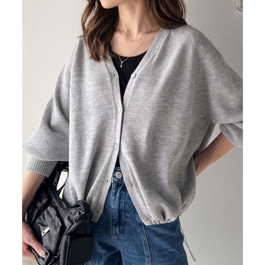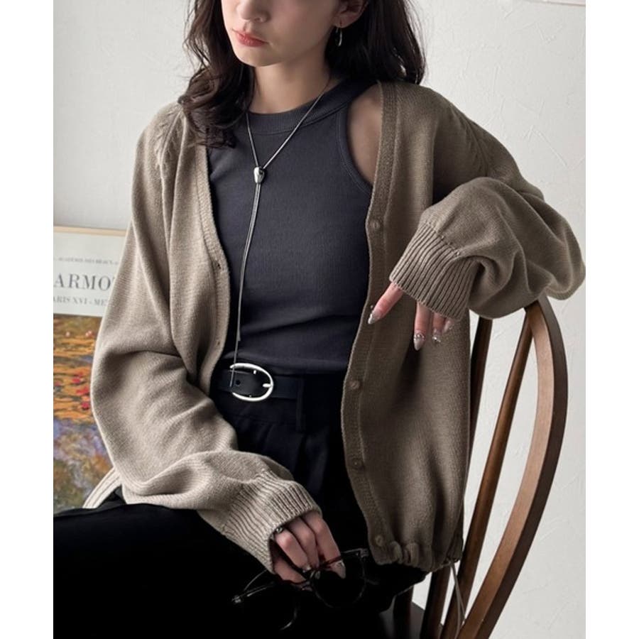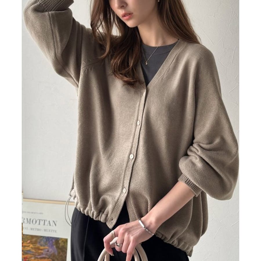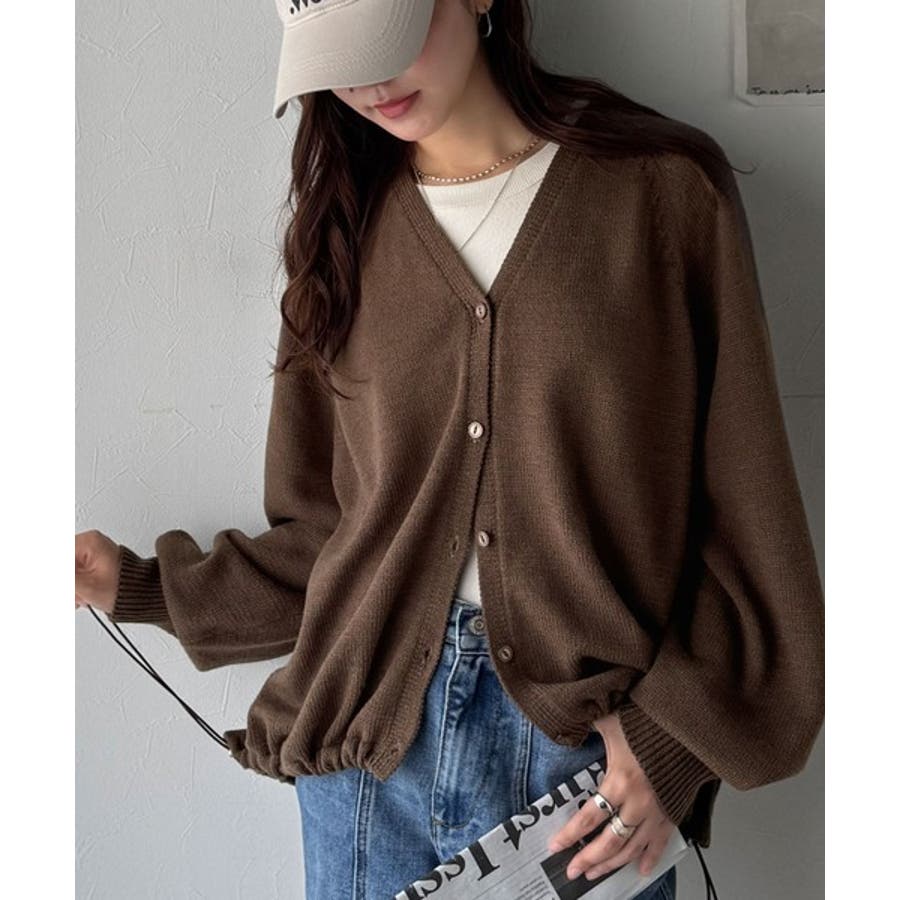 シルエット自在でお洒落も叶う。裾ドロストVネックニットカーディガン(長袖)