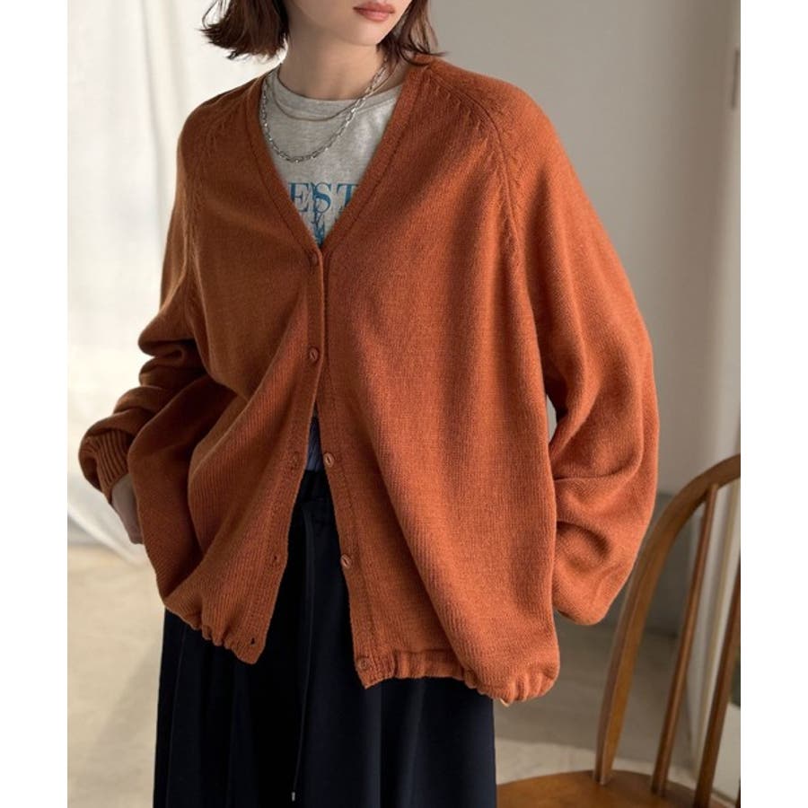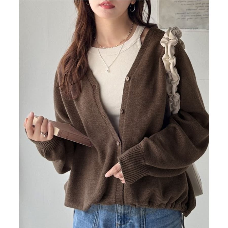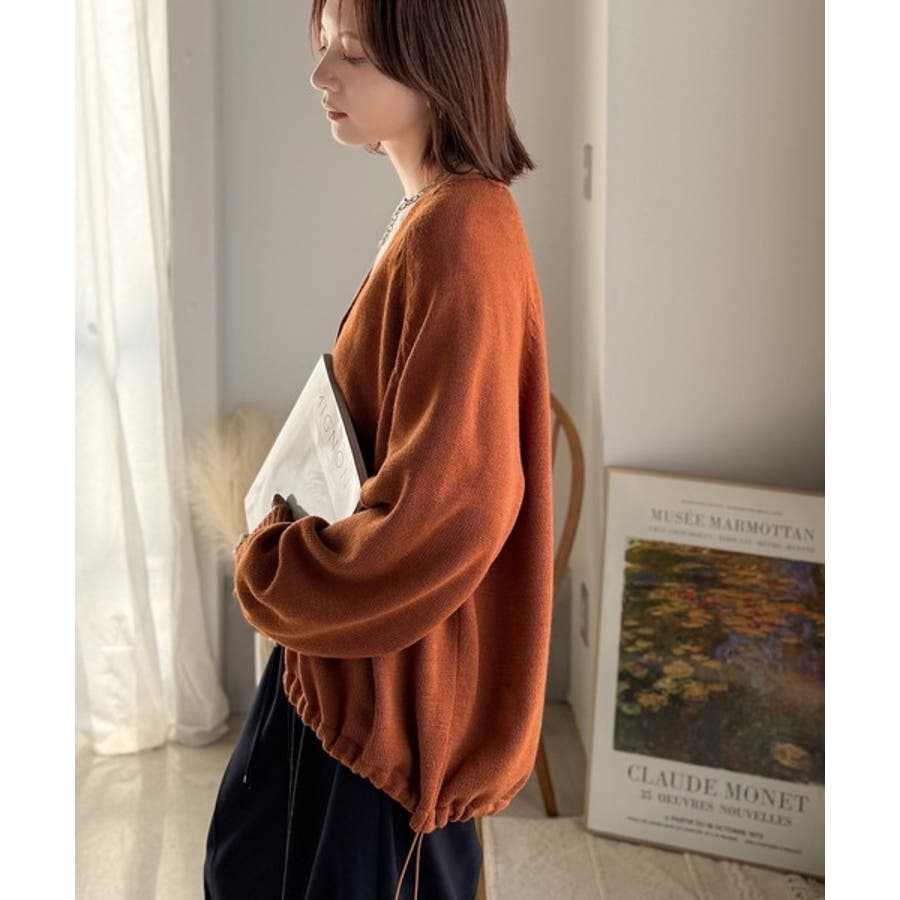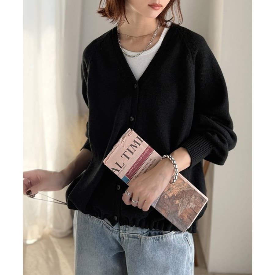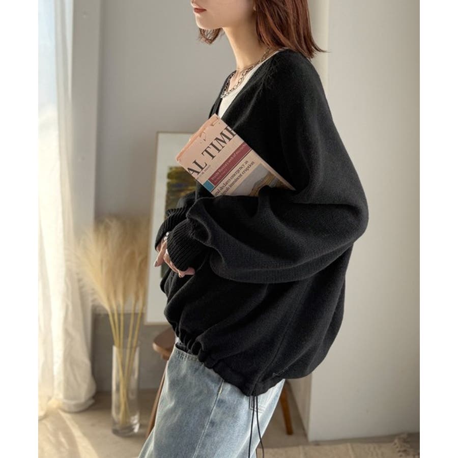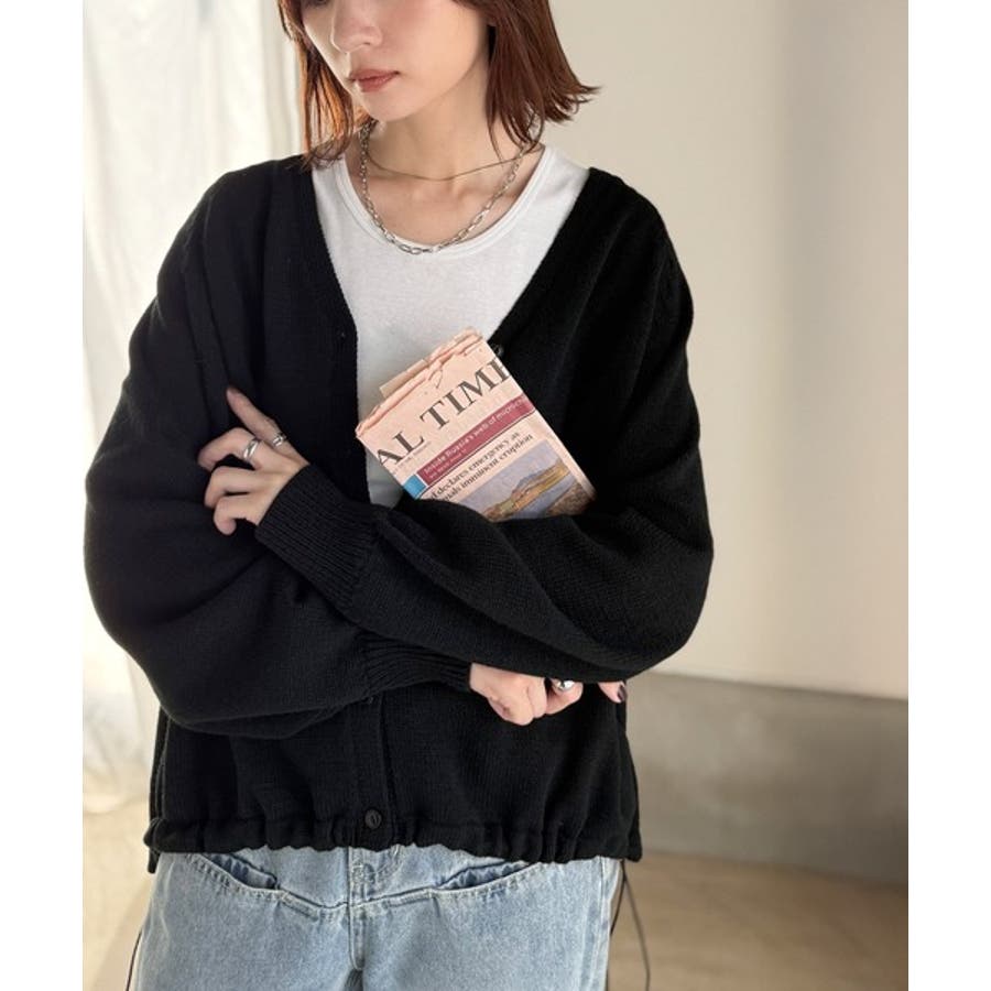 シルエット自在でお洒落も叶う。裾ドロストVネックニットカーディガン(長袖)