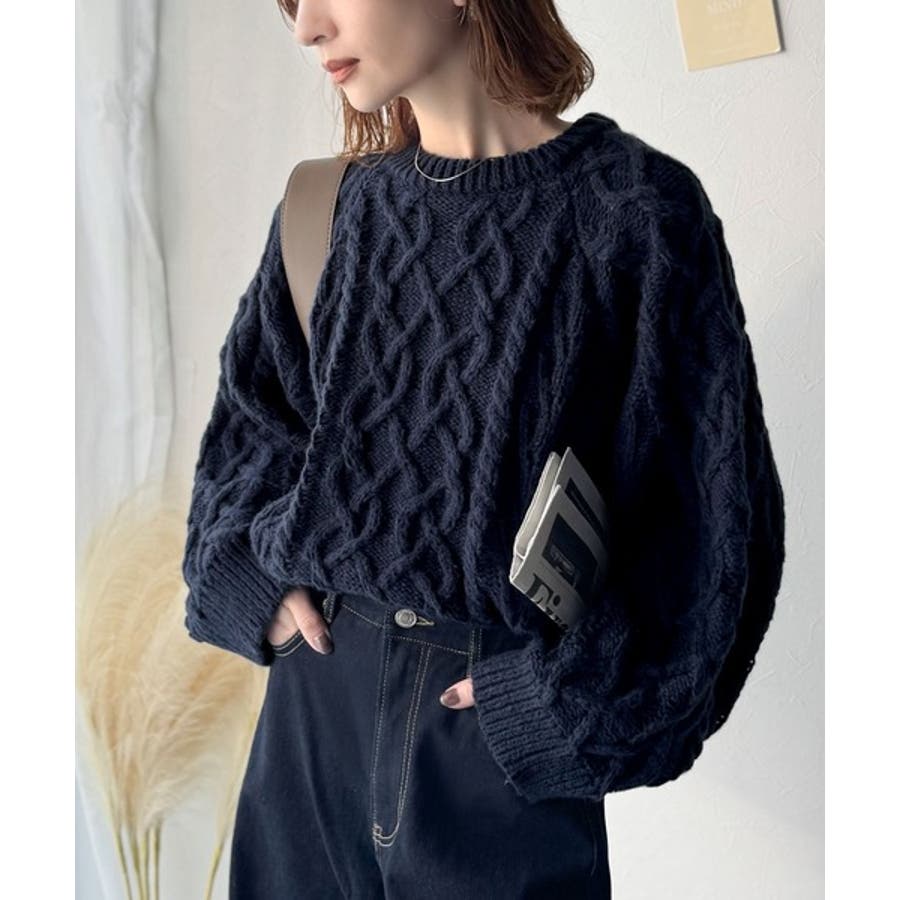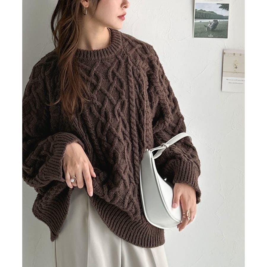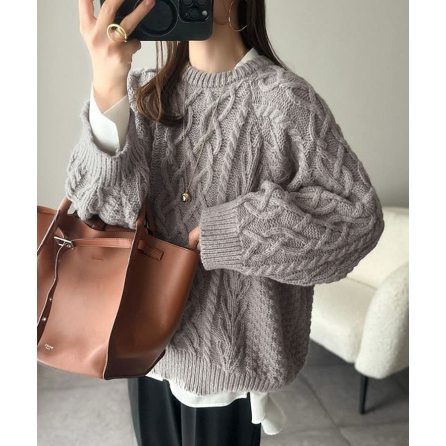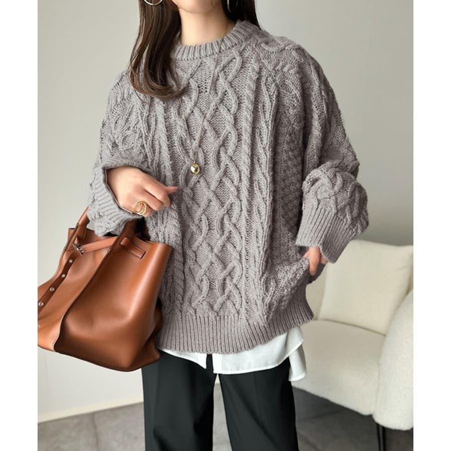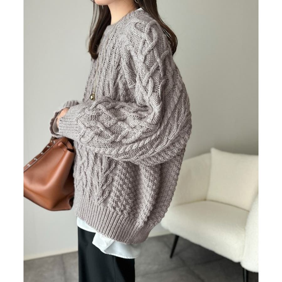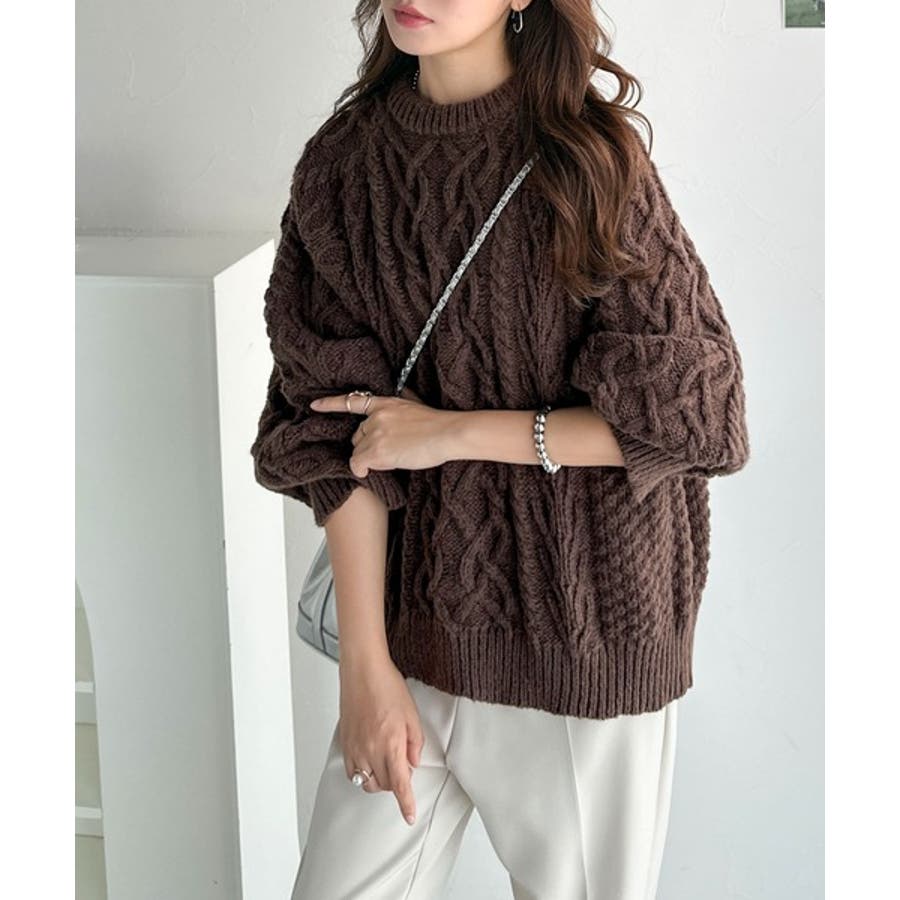 ざっくり感で一瞬でこなれ顔◎立体アラン柄ローゲージケーブルニット