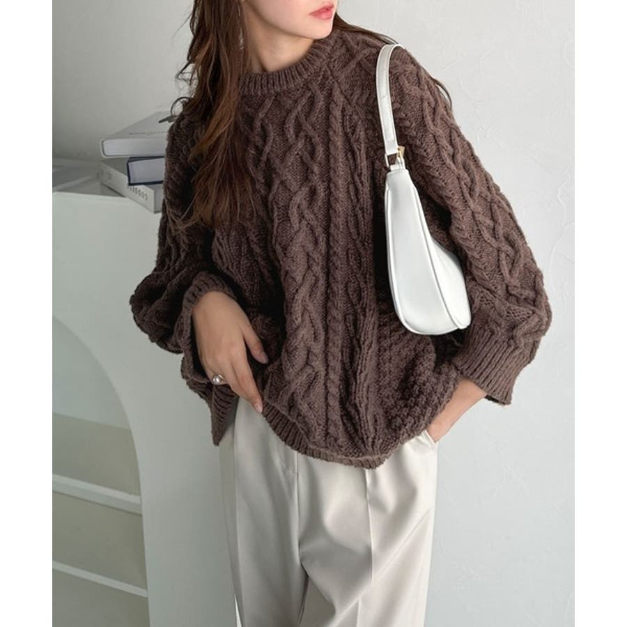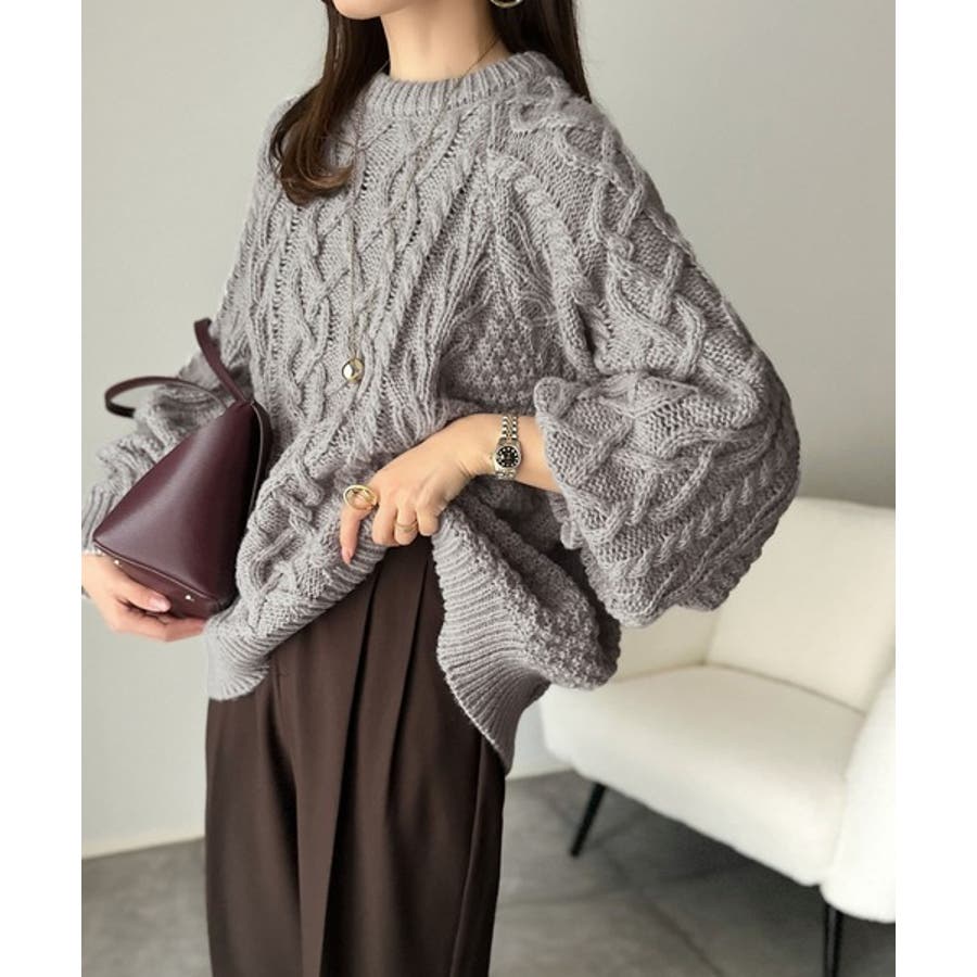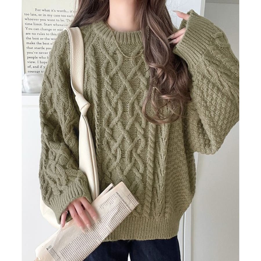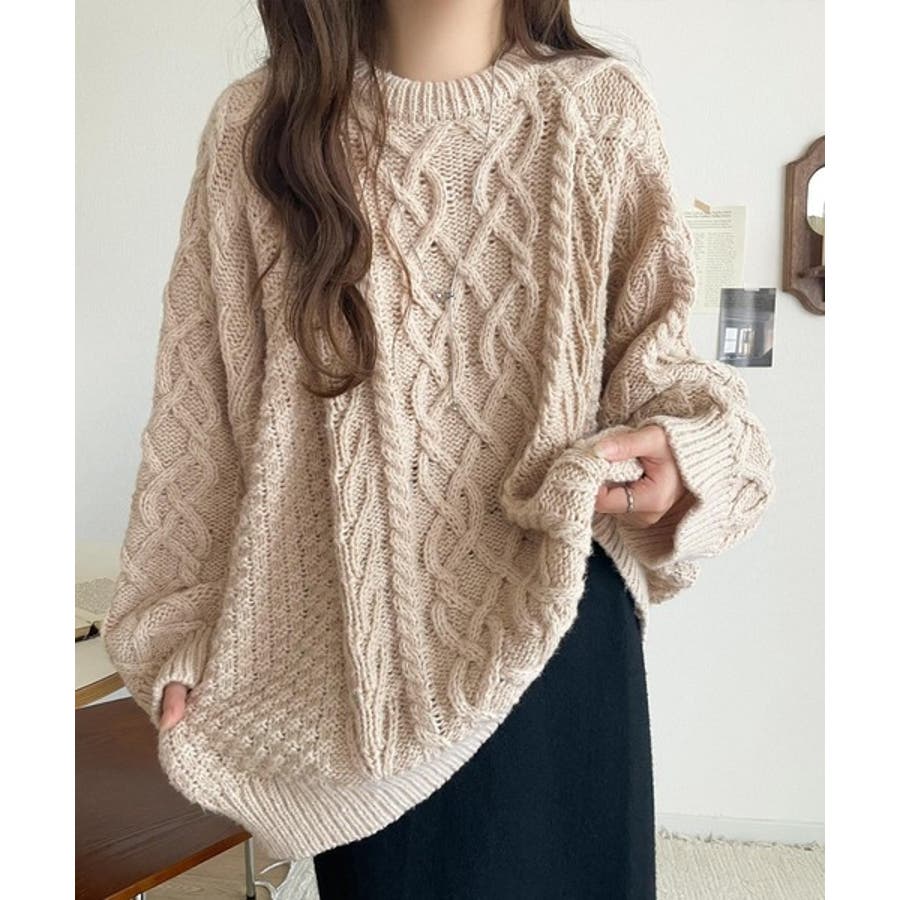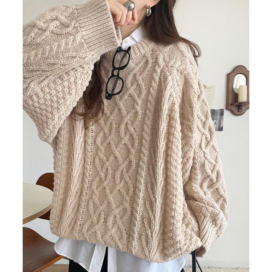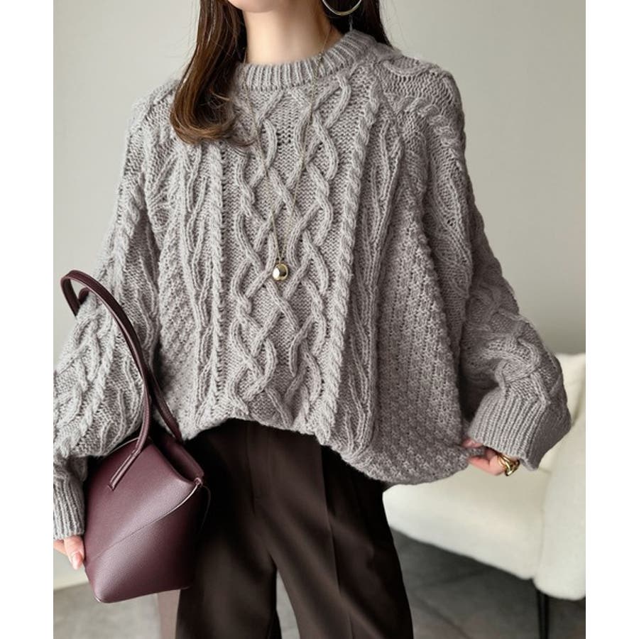 ざっくり感で一瞬でこなれ顔◎立体アラン柄ローゲージケーブルニット