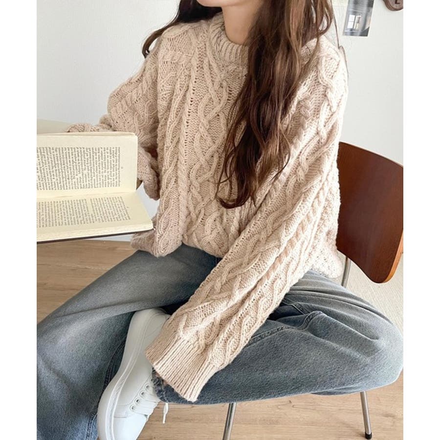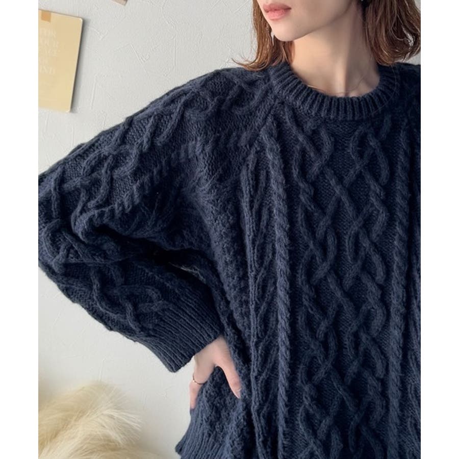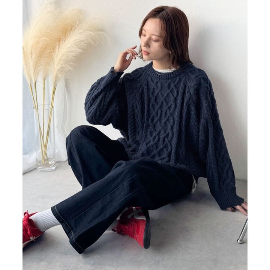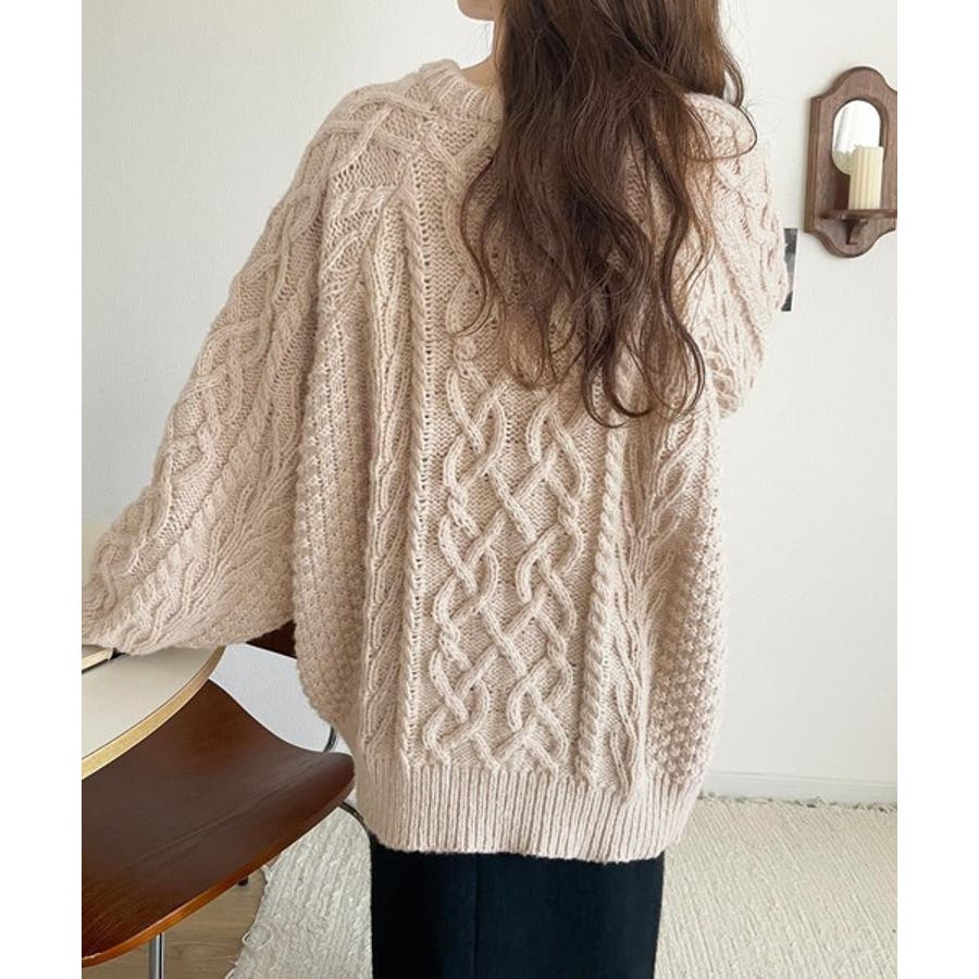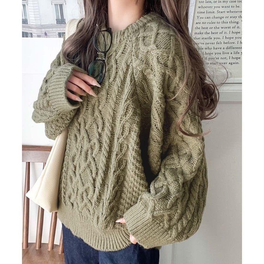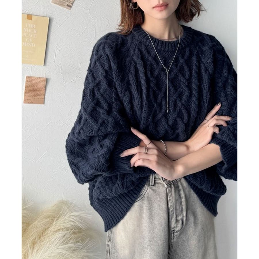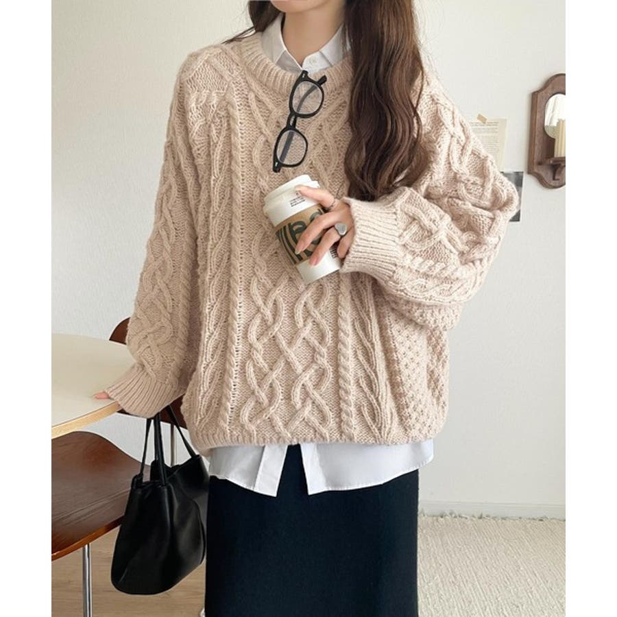 ざっくり感で一瞬でこなれ顔◎立体アラン柄ローゲージケーブルニット
