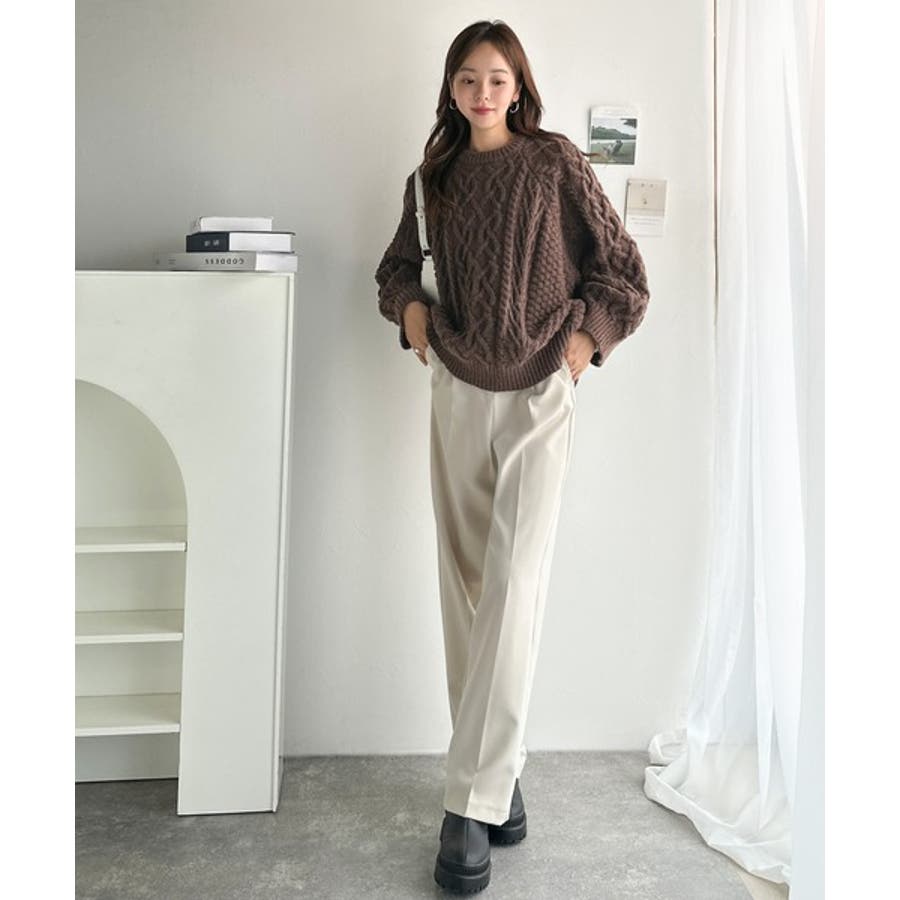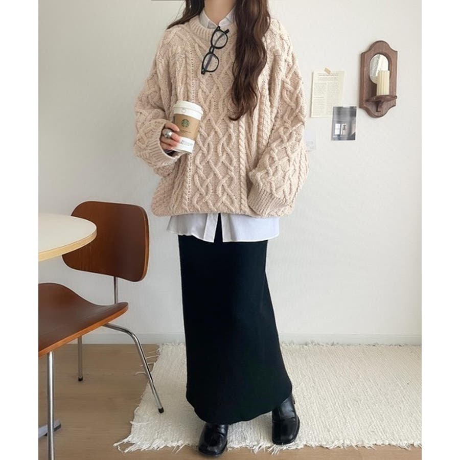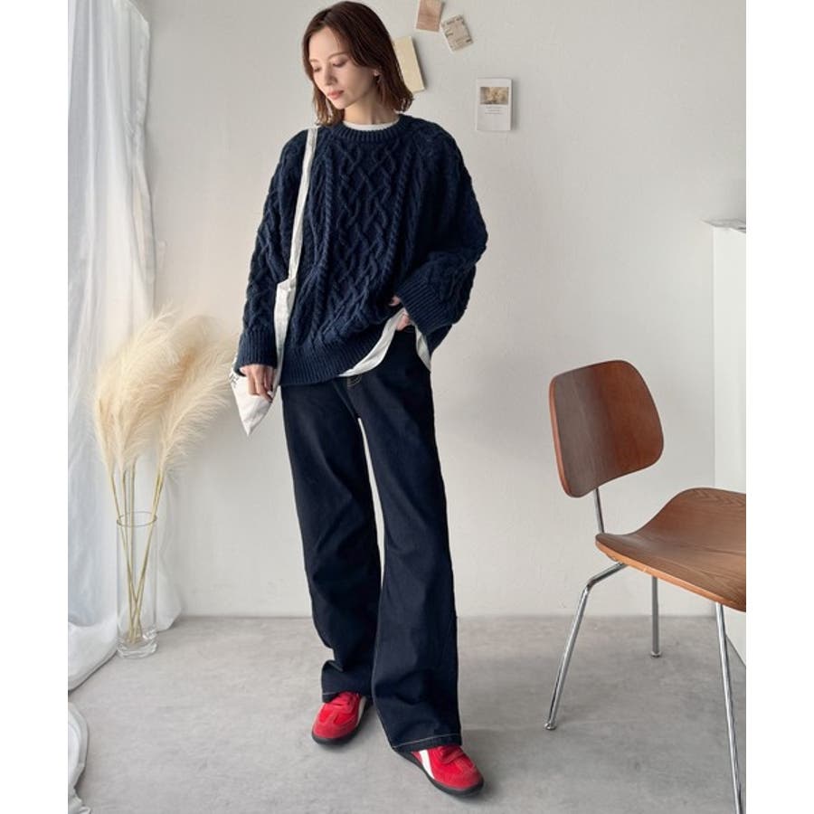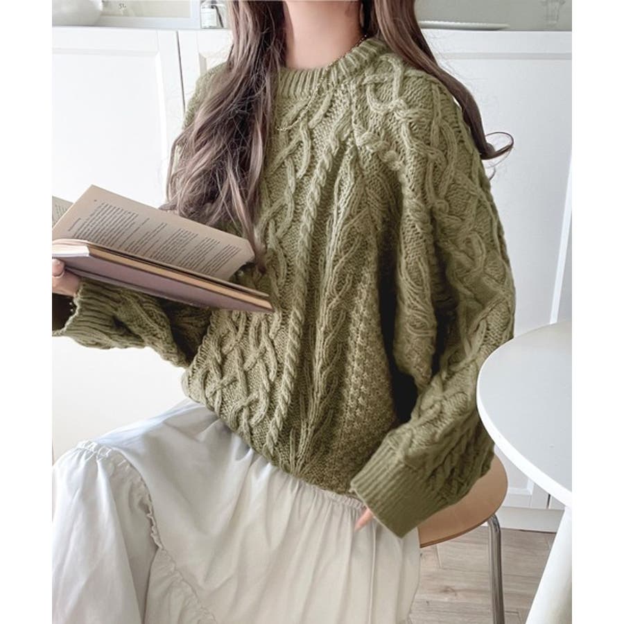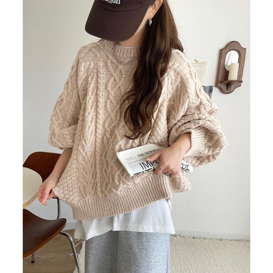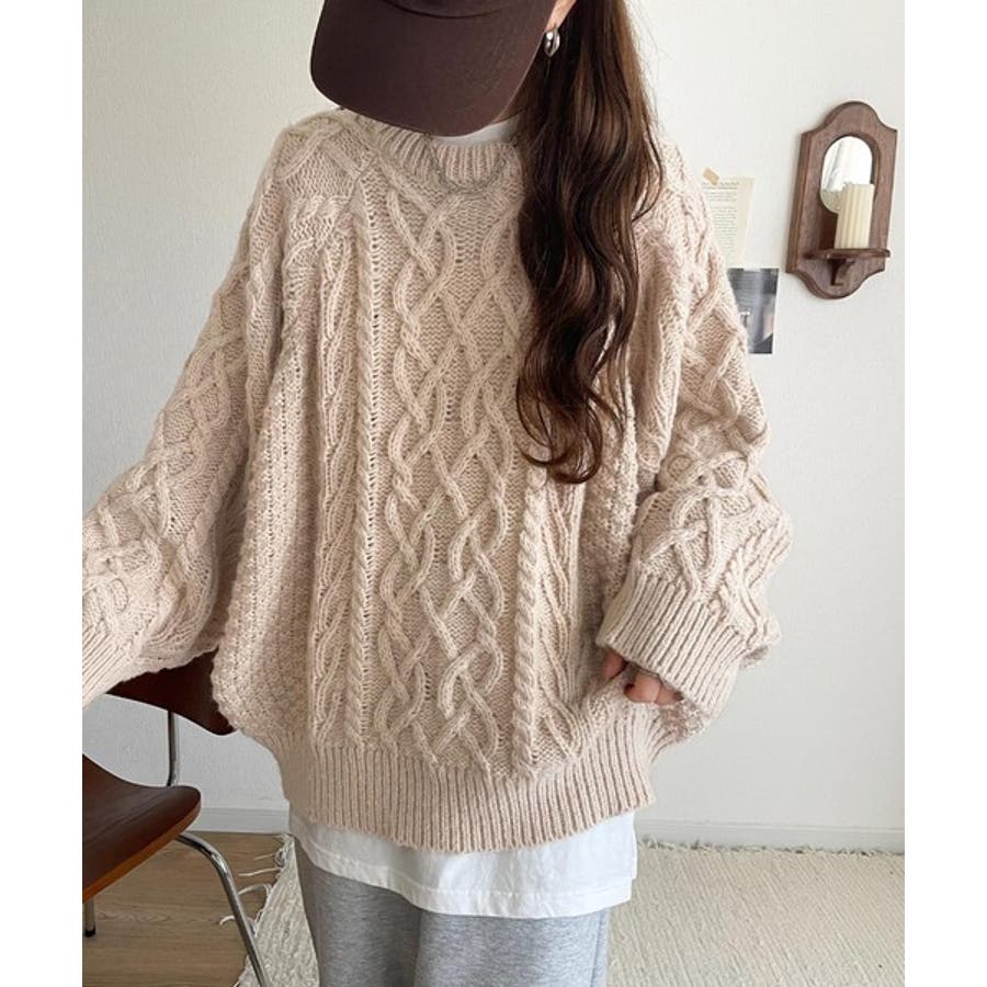 ざっくり感で一瞬でこなれ顔◎立体アラン柄ローゲージケーブルニット
