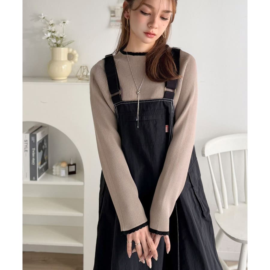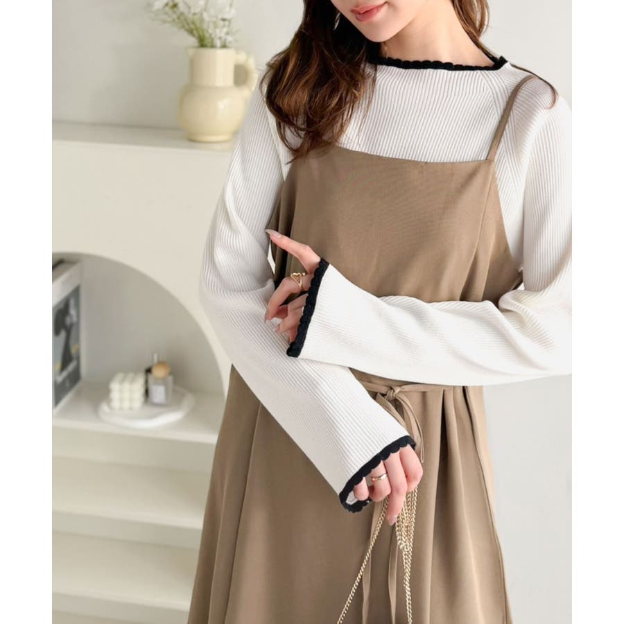 程よくボディにフィットするリブ編地は縦ラインを強調し、スタイルアップ効果も期待。