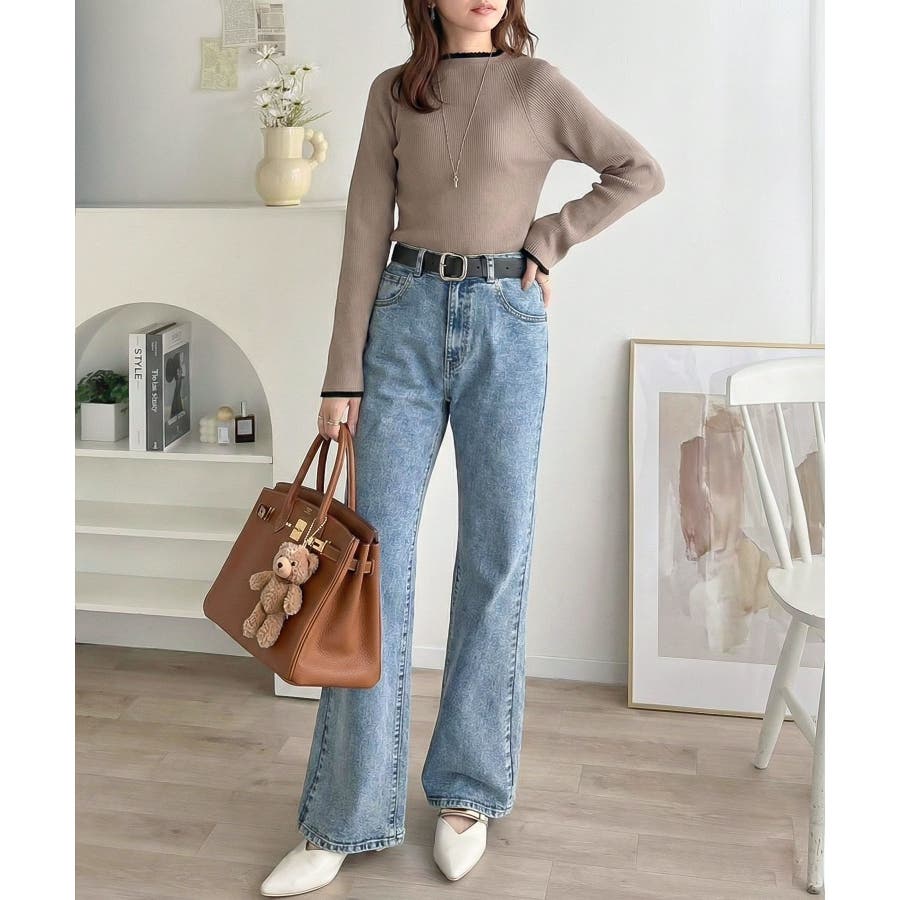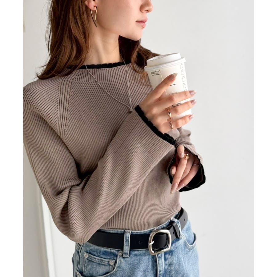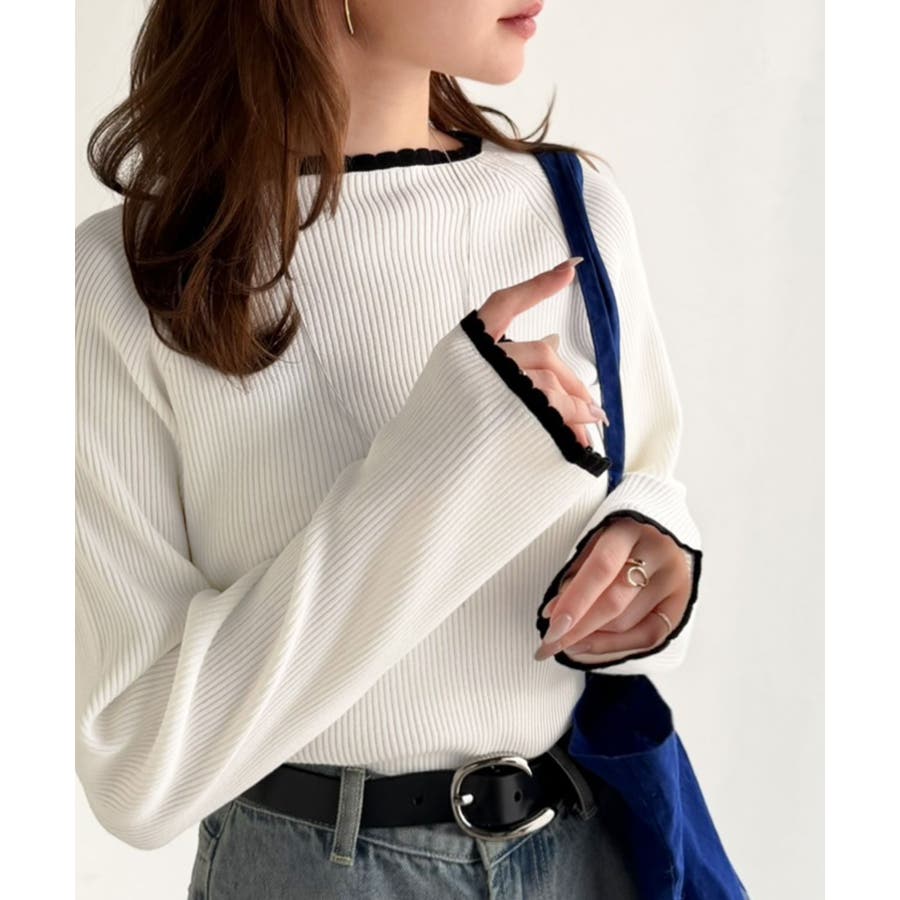 程よいフィット感のリブニットがスタイルアップを叶え、