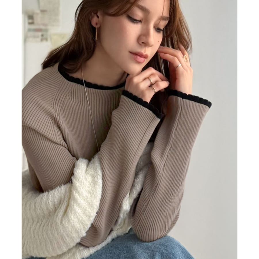 色っぽさと着回し力を兼ね備えた主役級ニット。スカラップ配色デザインニットプルオー…