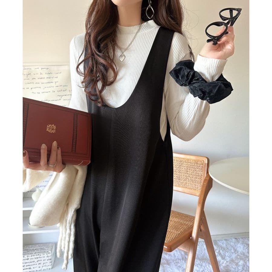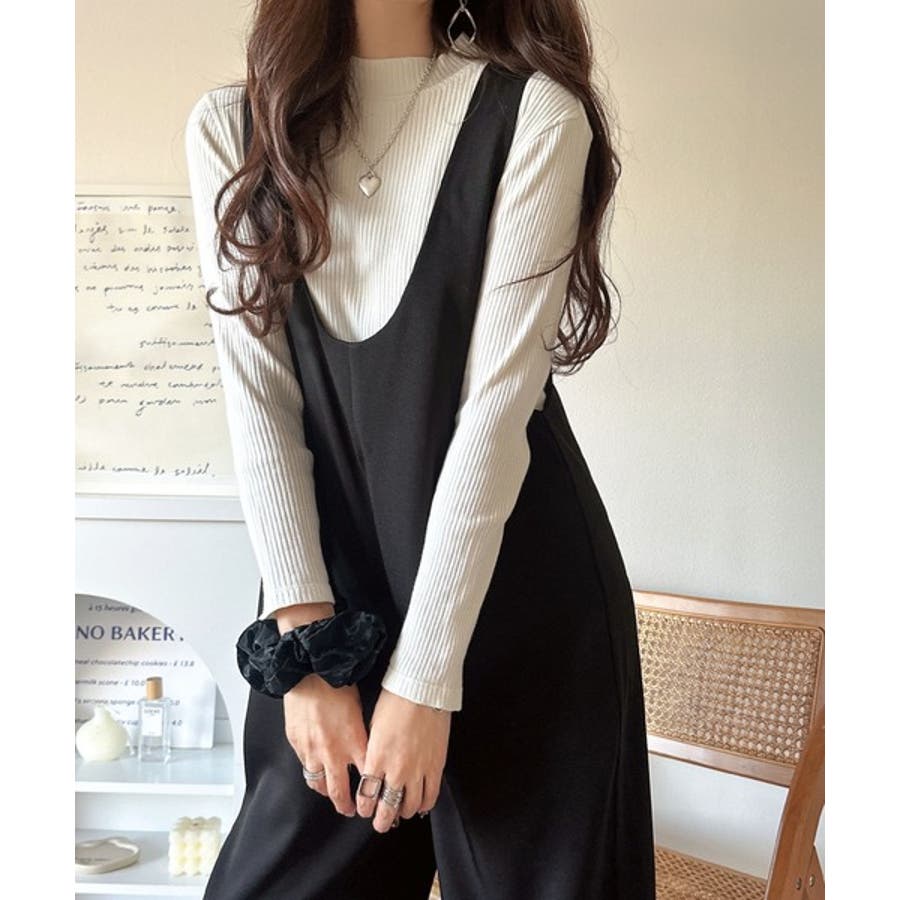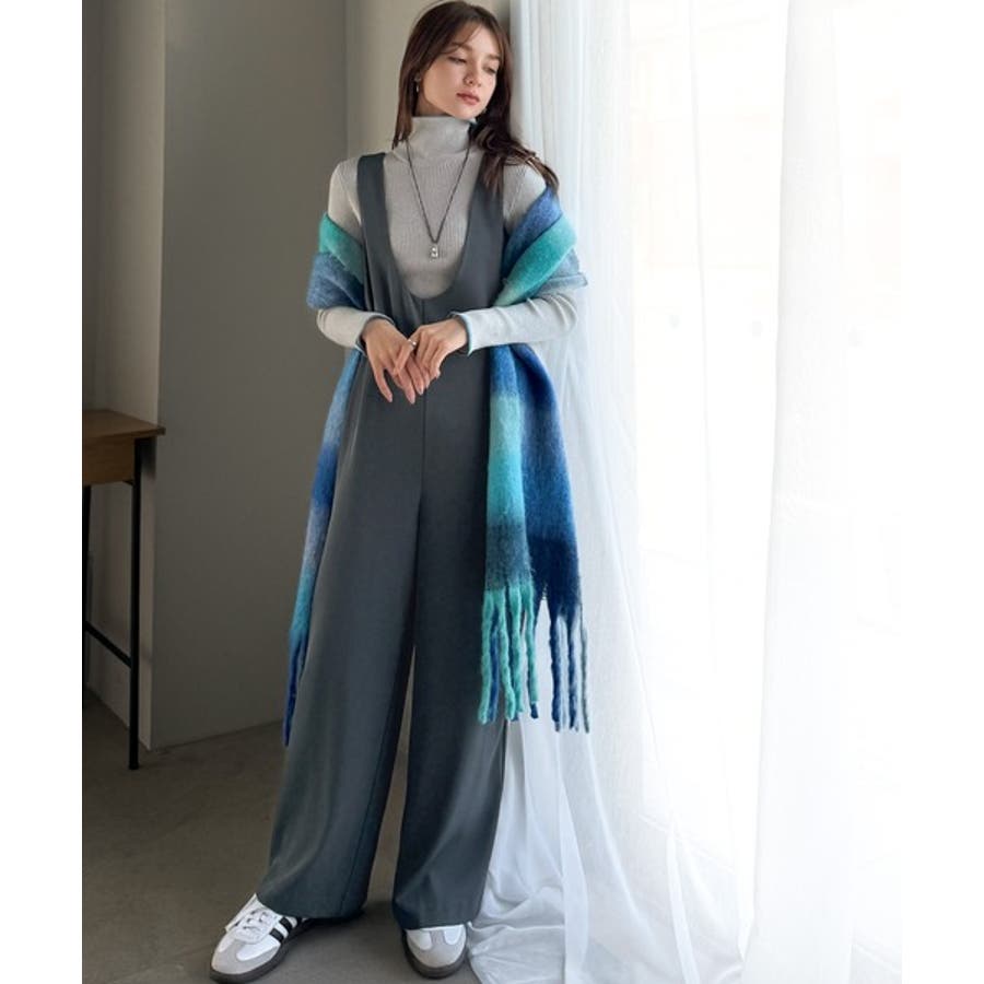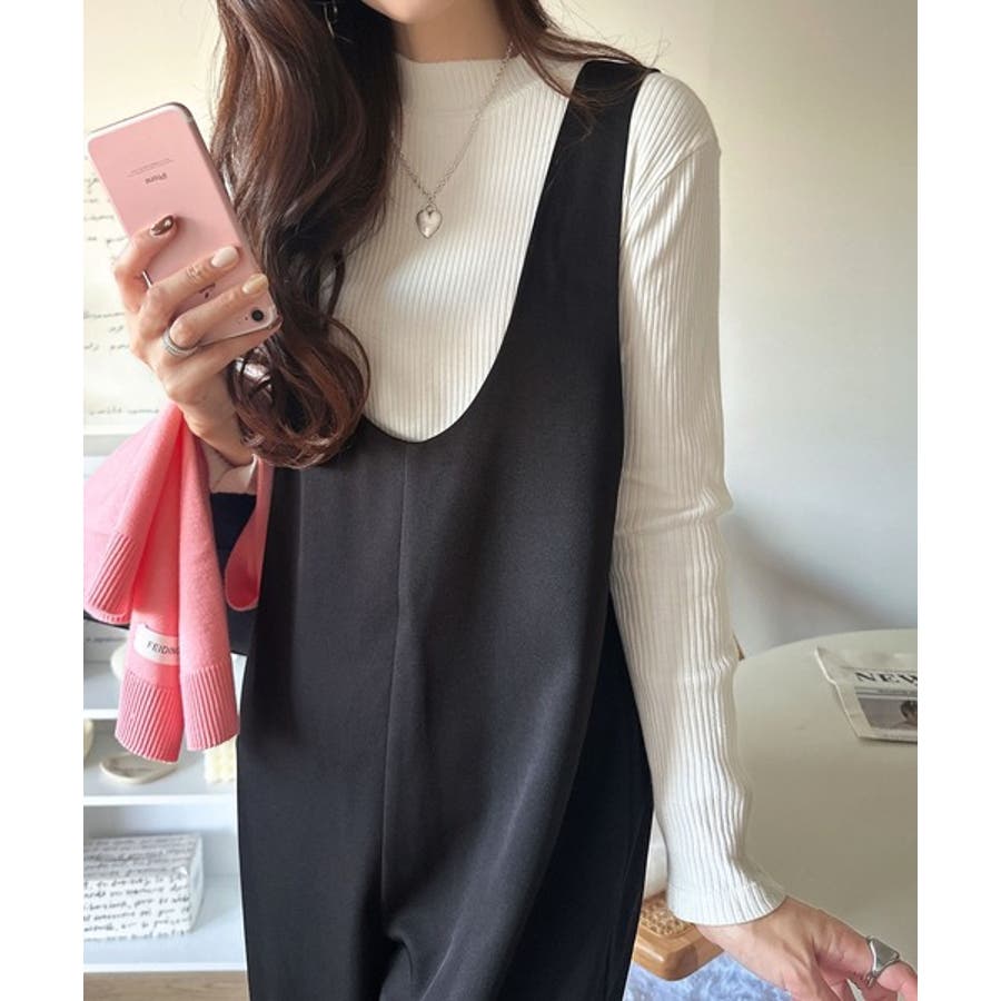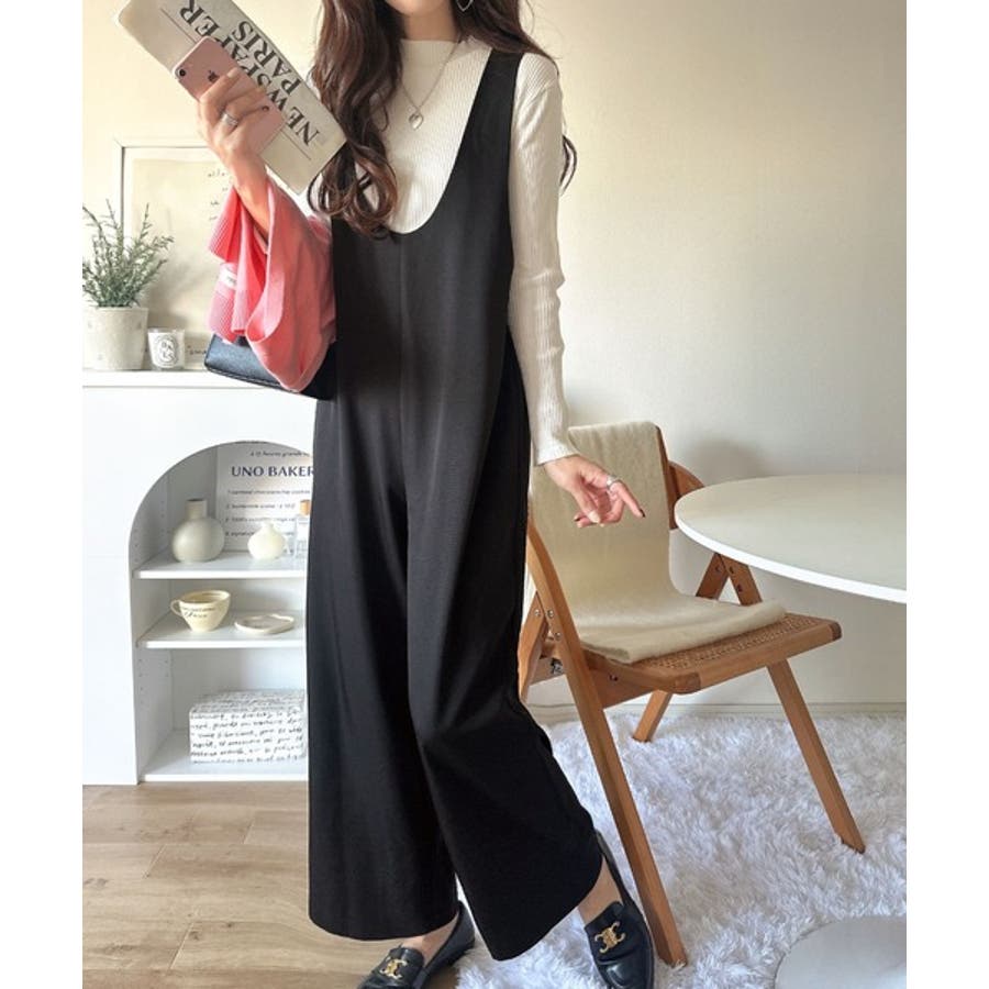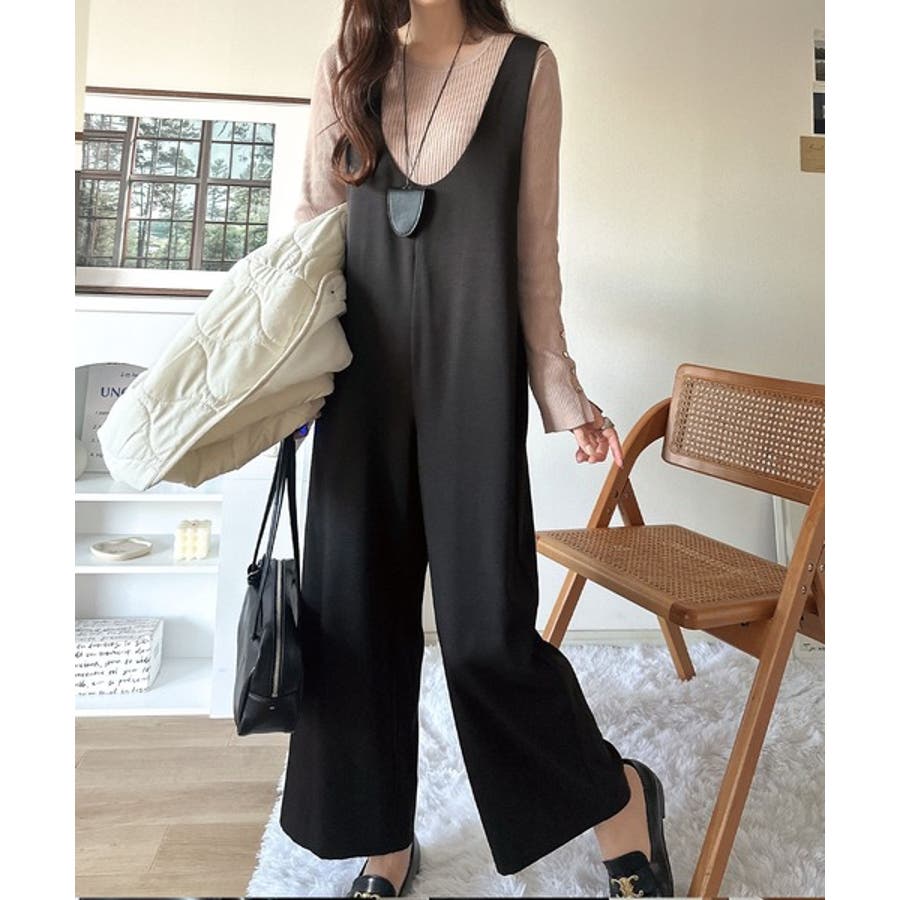 着心地ラクチン×お洒落見え♪深Uネックオールインワンサロペットパンツ
