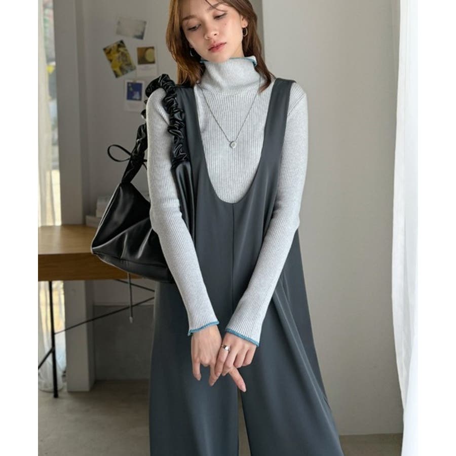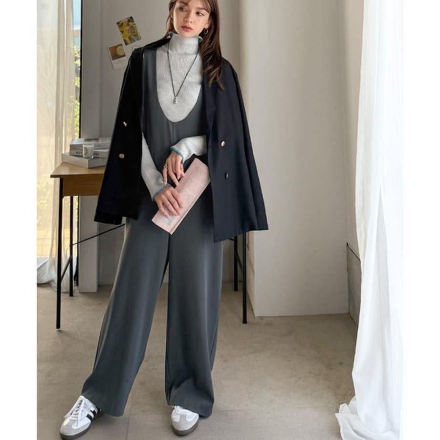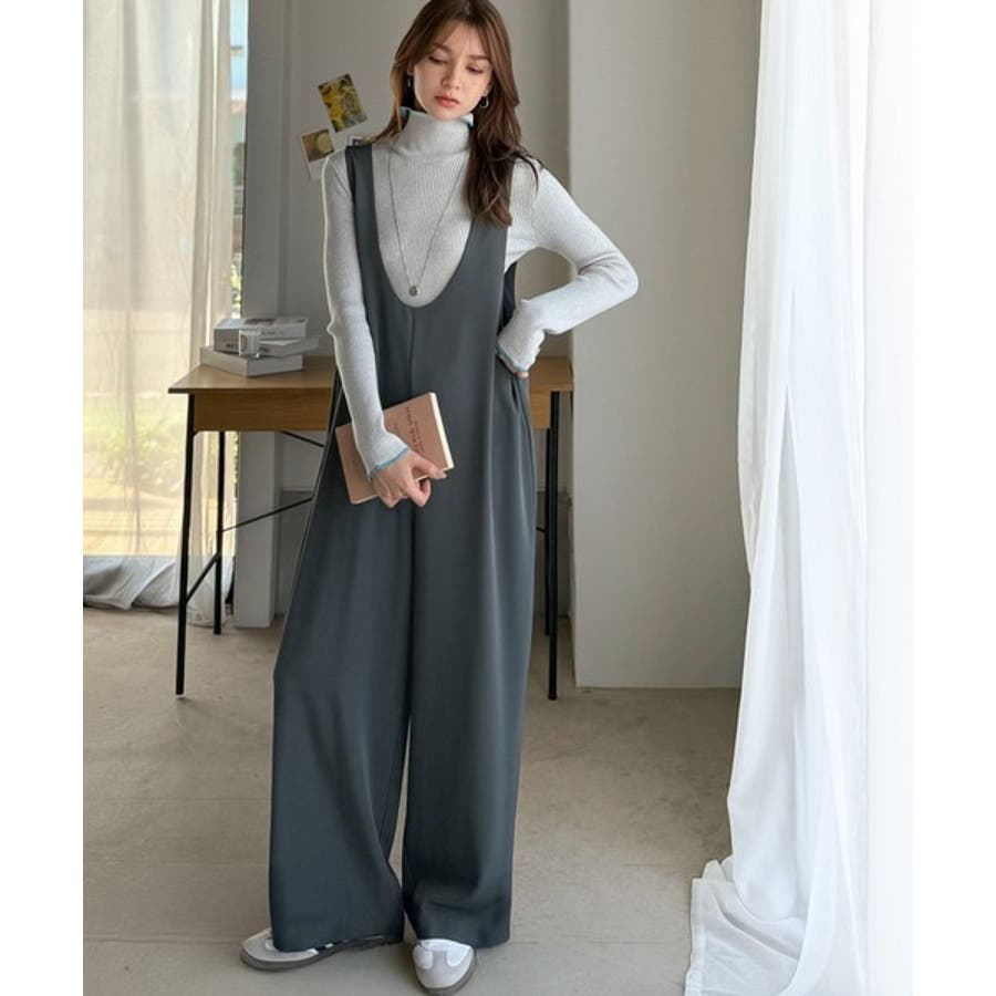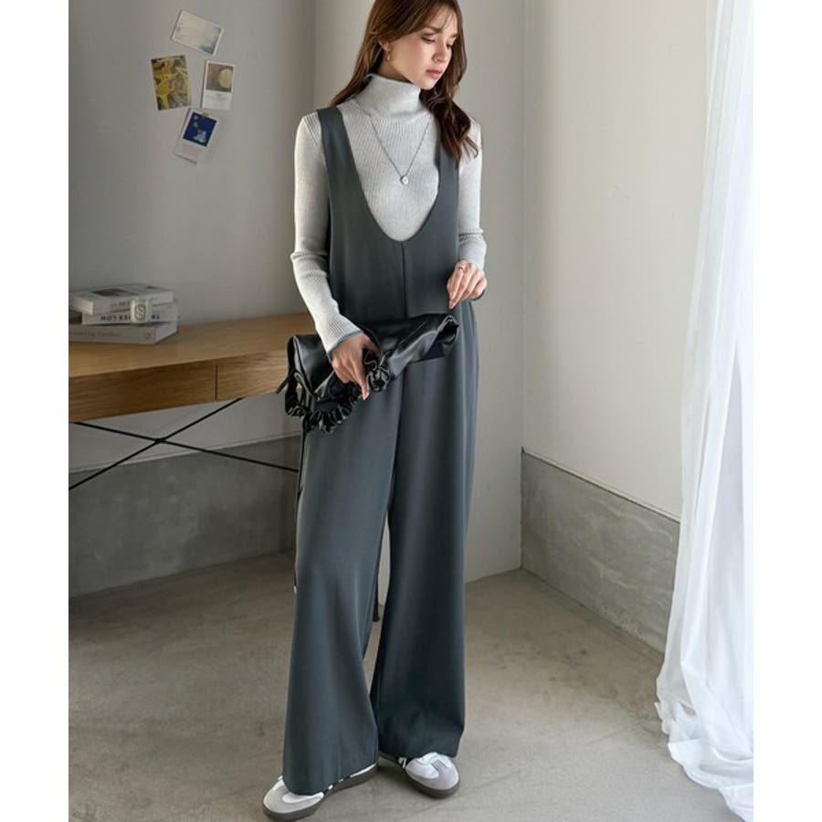 トレンドの深めUネックデザインのオールインワン。