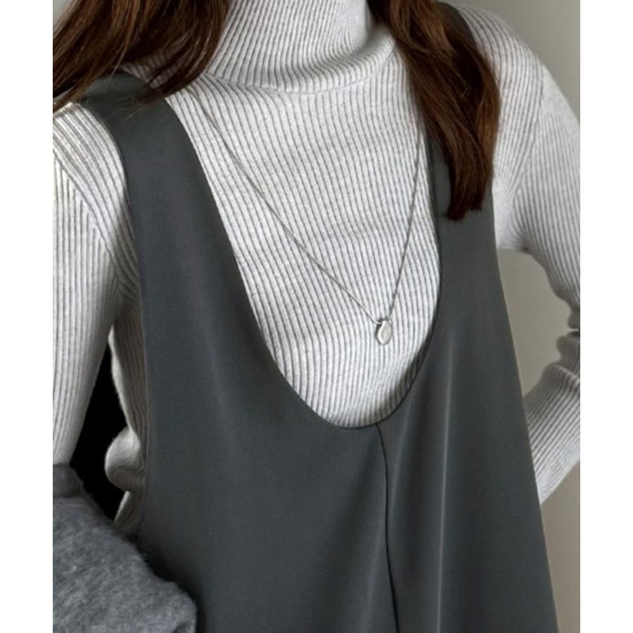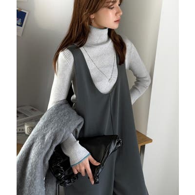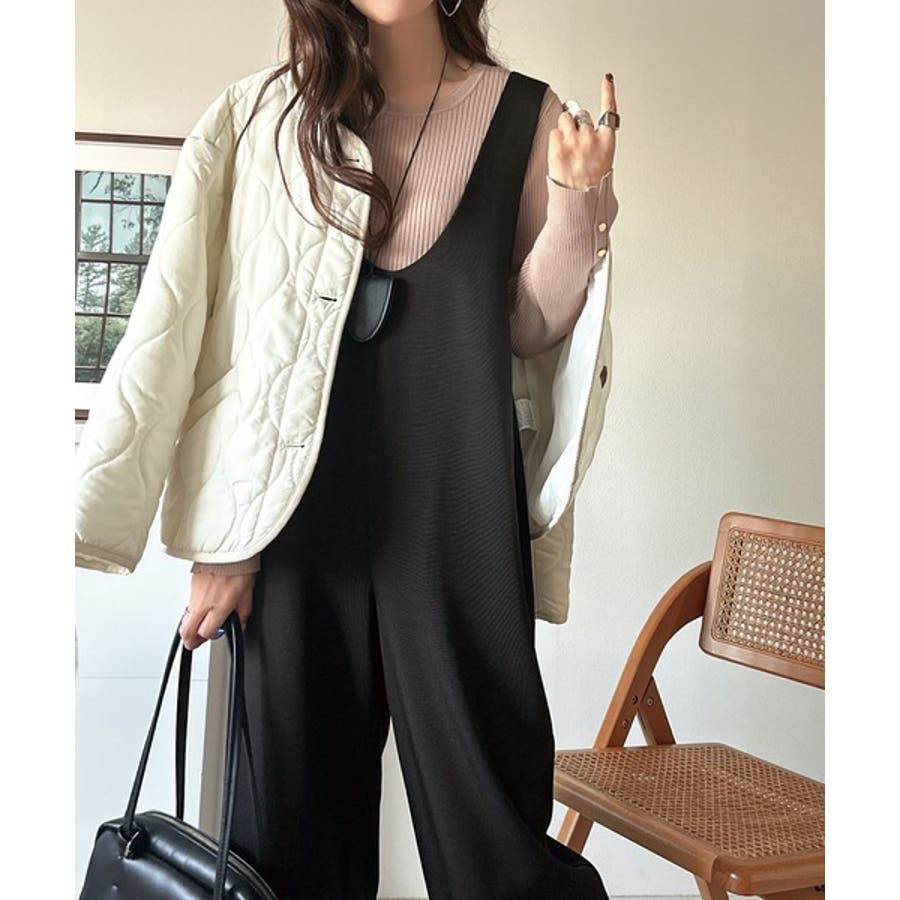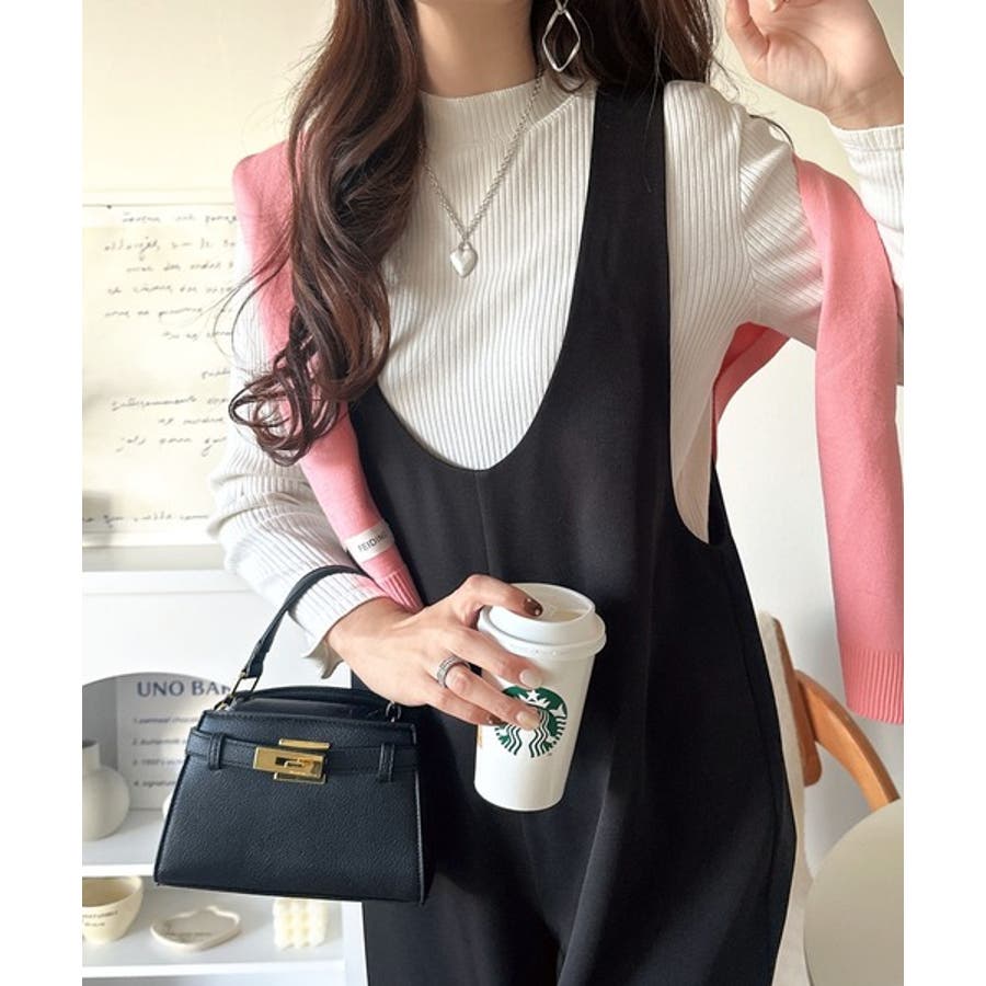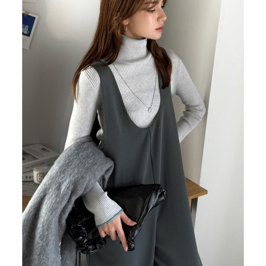 トレンドの深めUネックデザインのオールインワン。