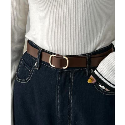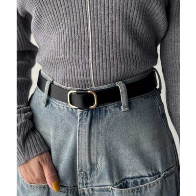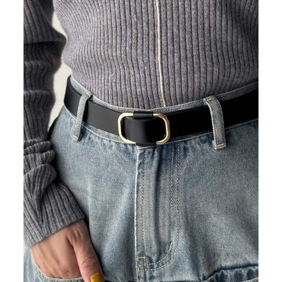 艶のあるスクエアバックルがコーディネートのポイントになる万能アイテム◎