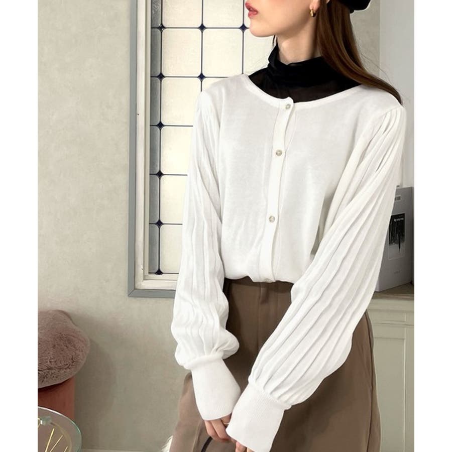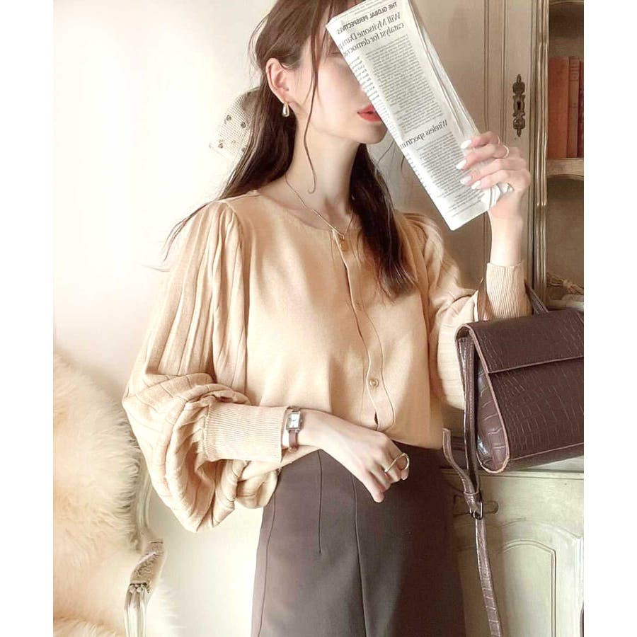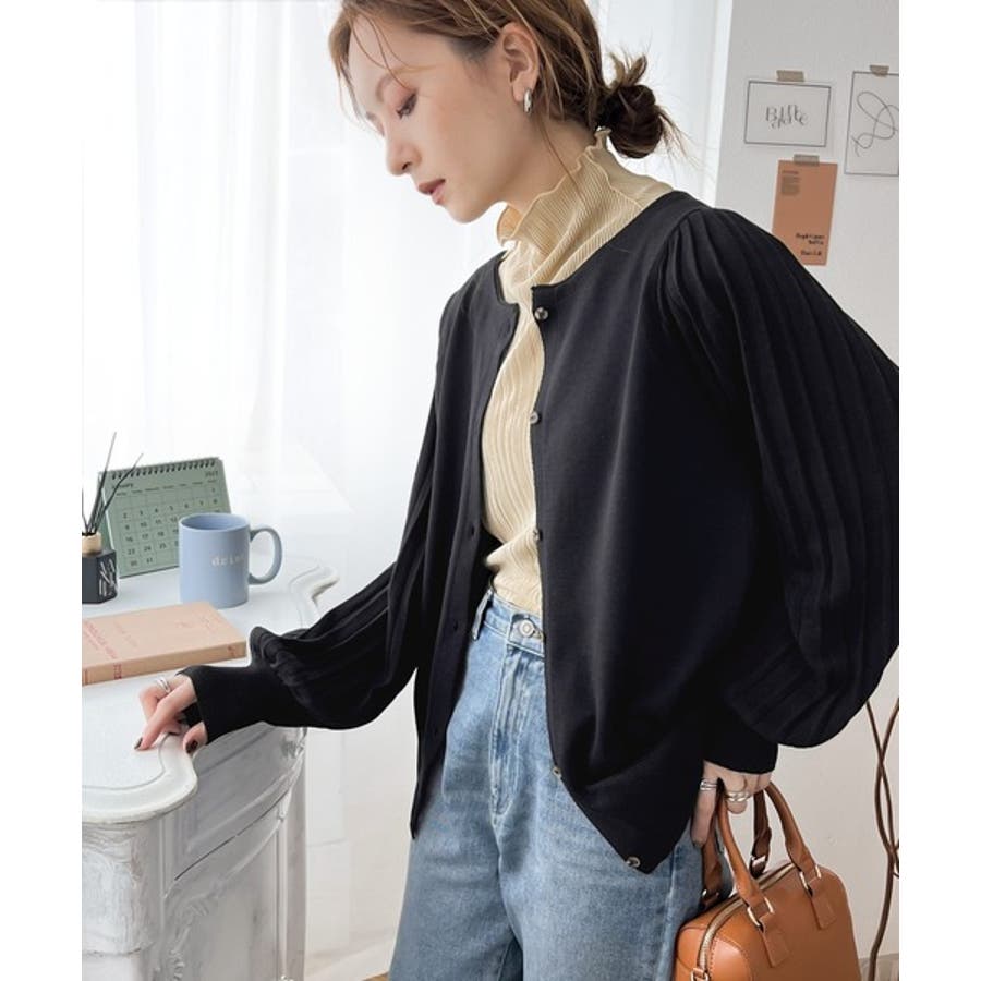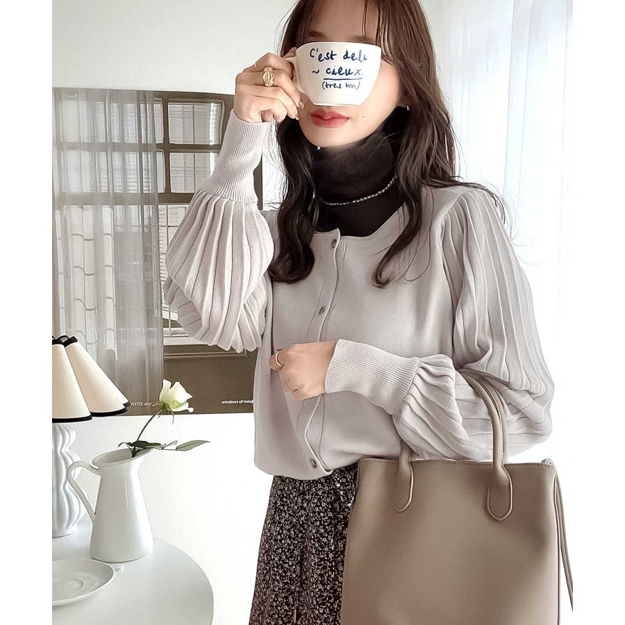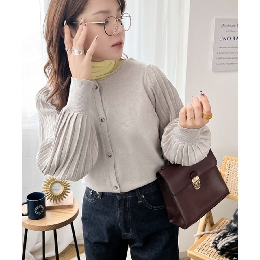 レトロな袖ぽわん。2way袖プリーツニットカーディガン