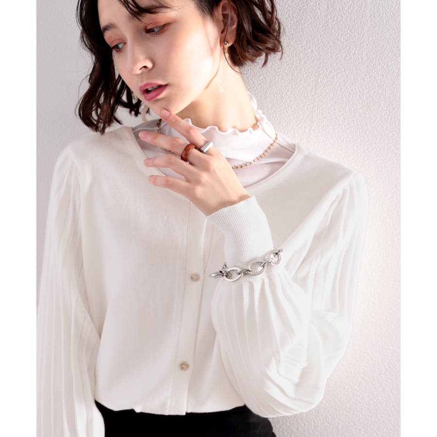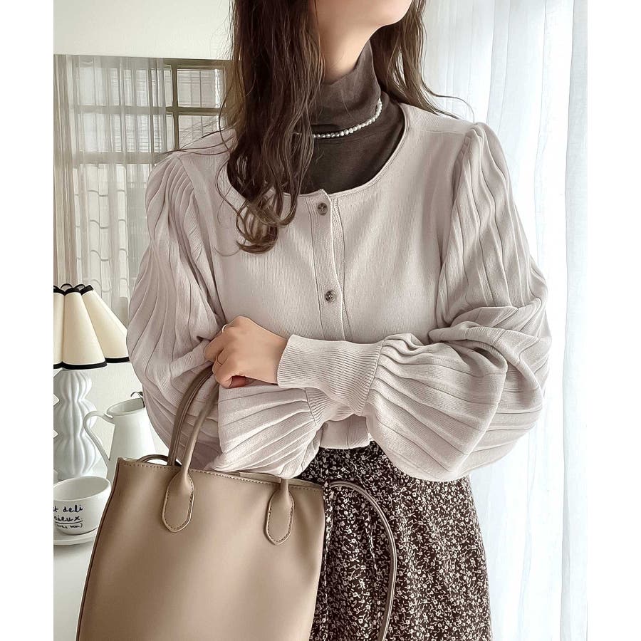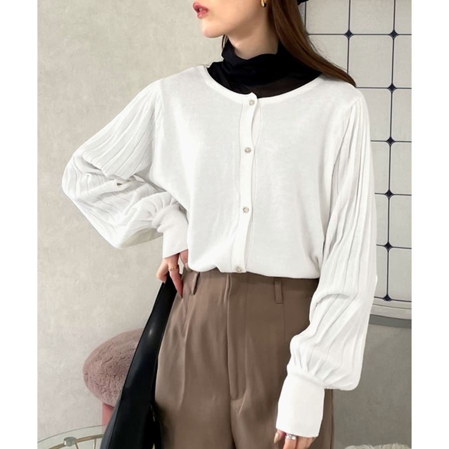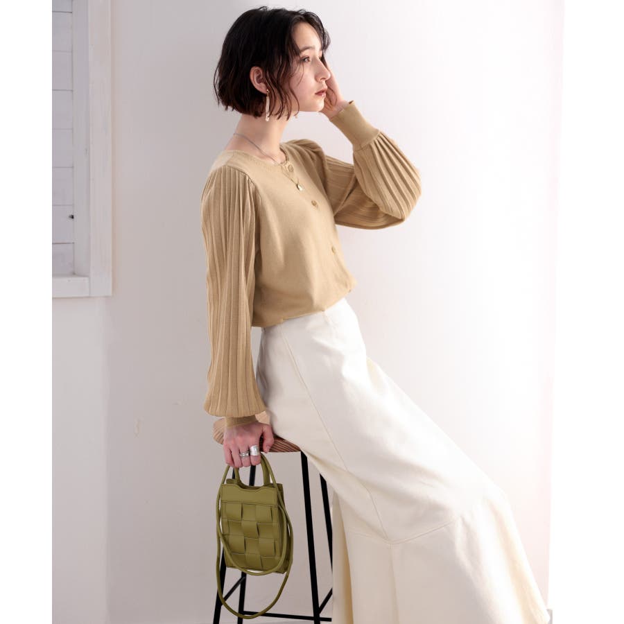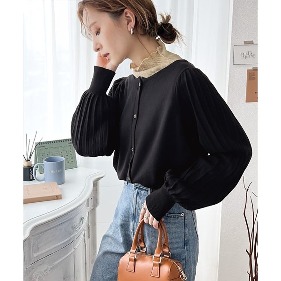 レトロな袖ぽわん。2way袖プリーツニットカーディガン