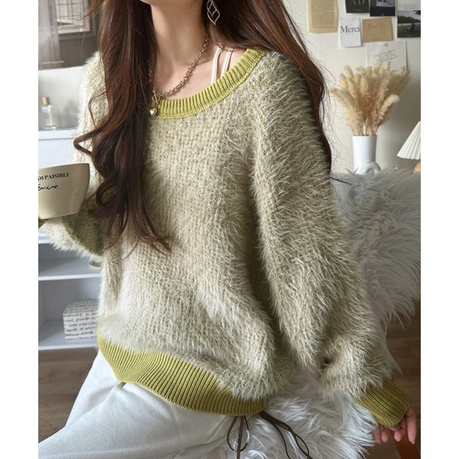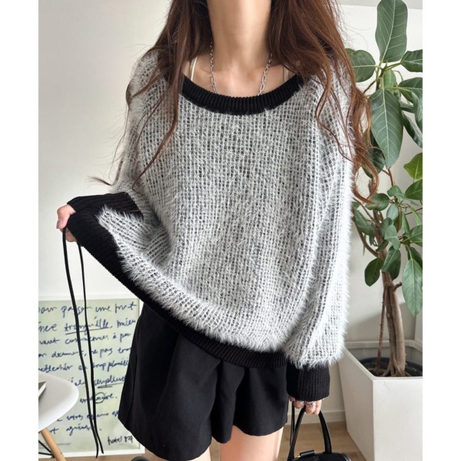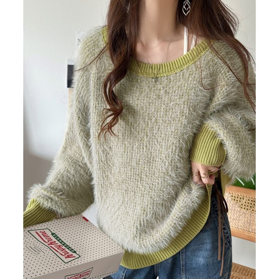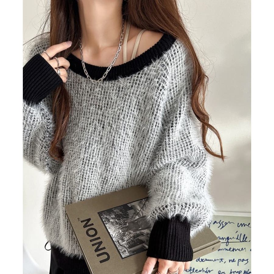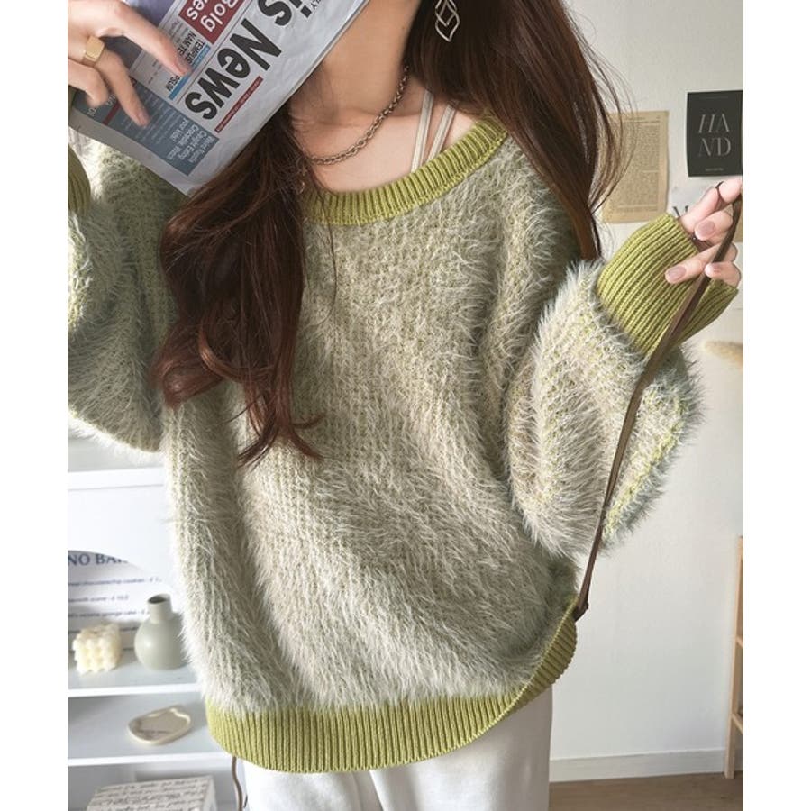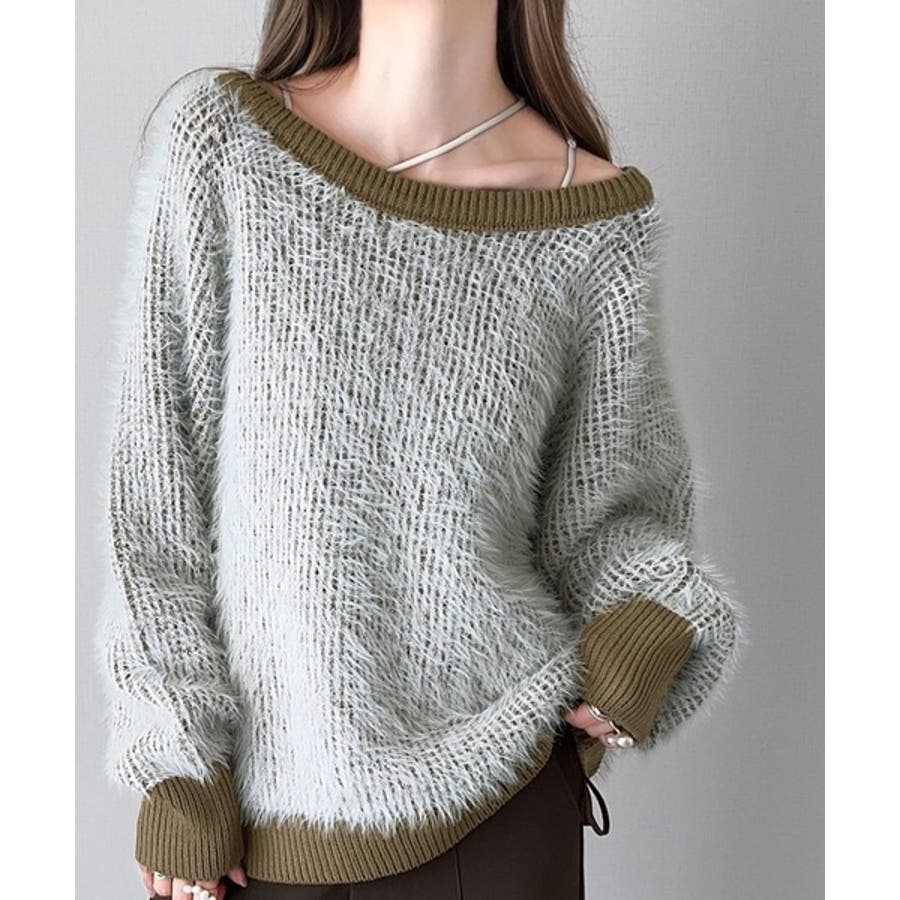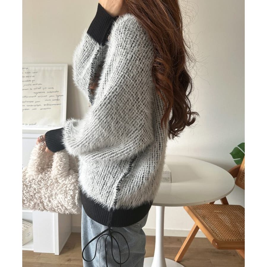 カジュアルな雰囲気に落とし込んだフェザーヤーンシャギーニット。