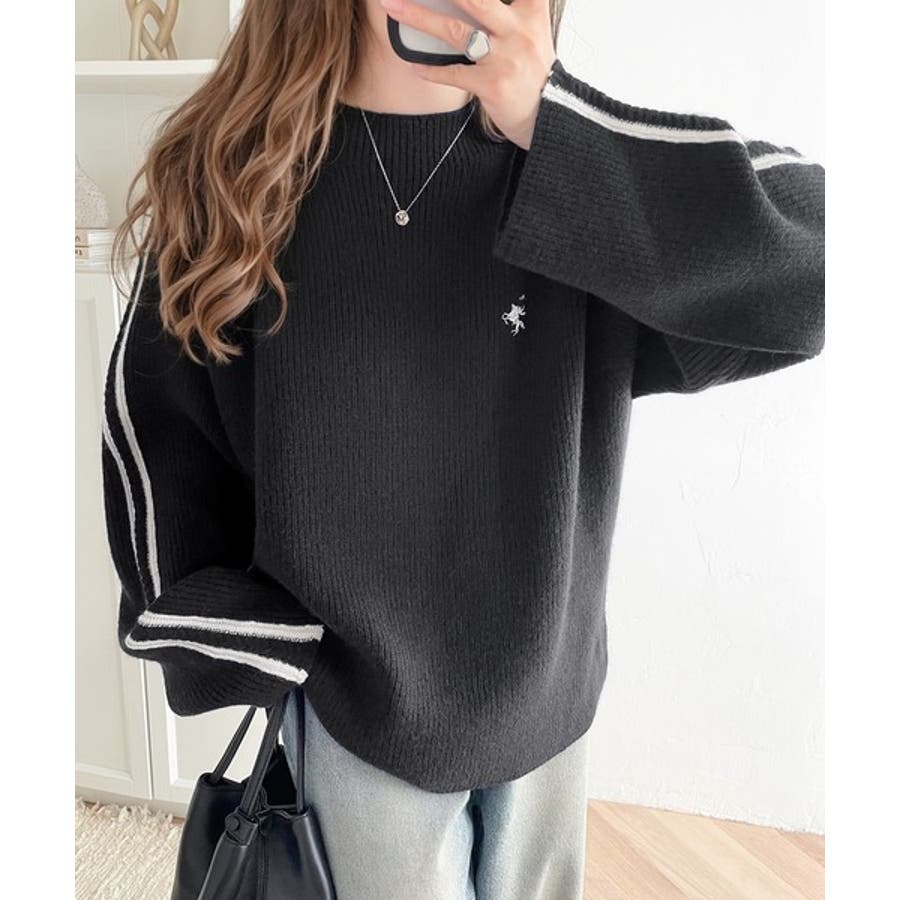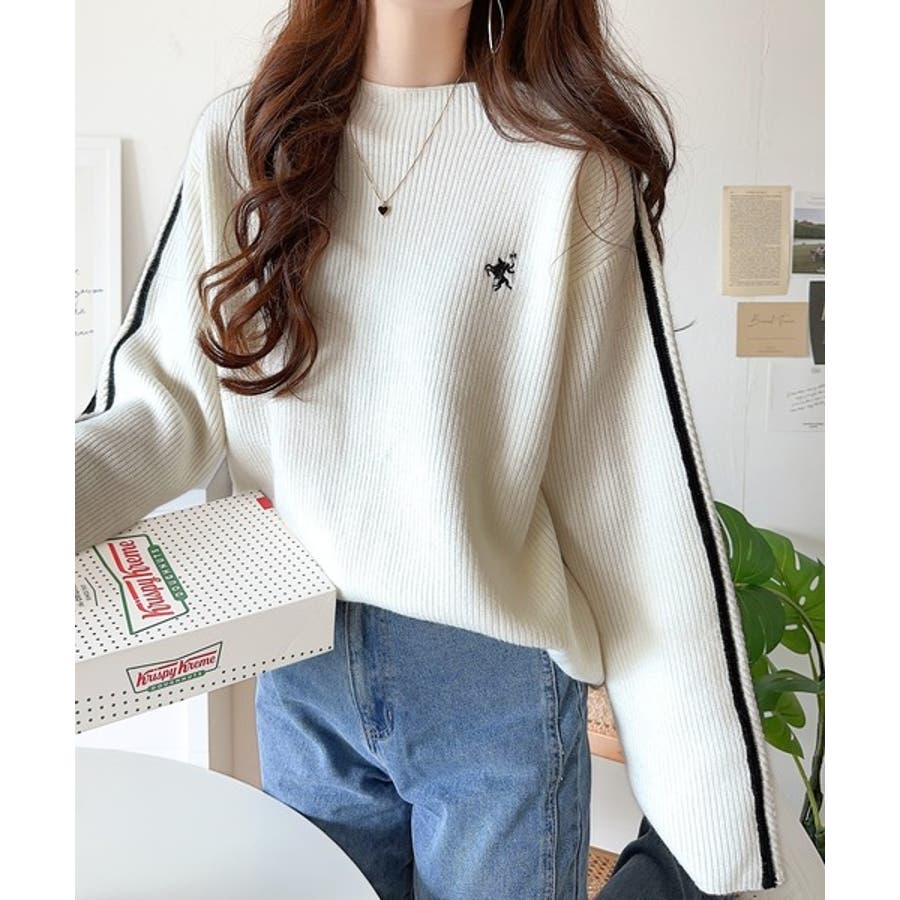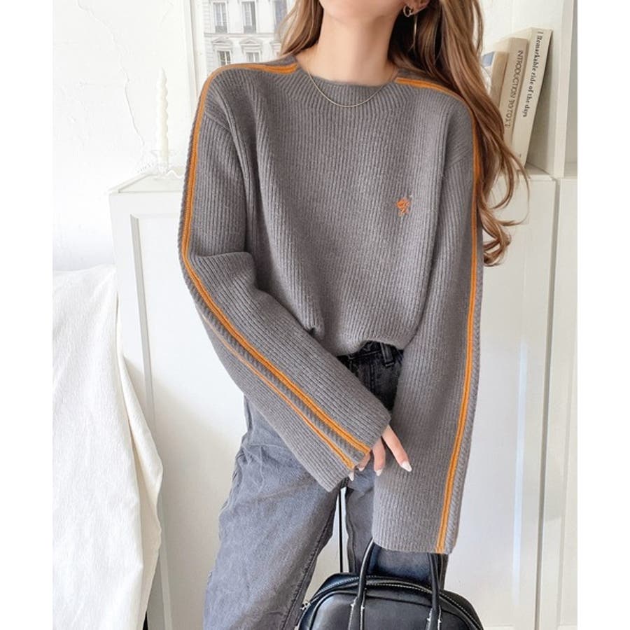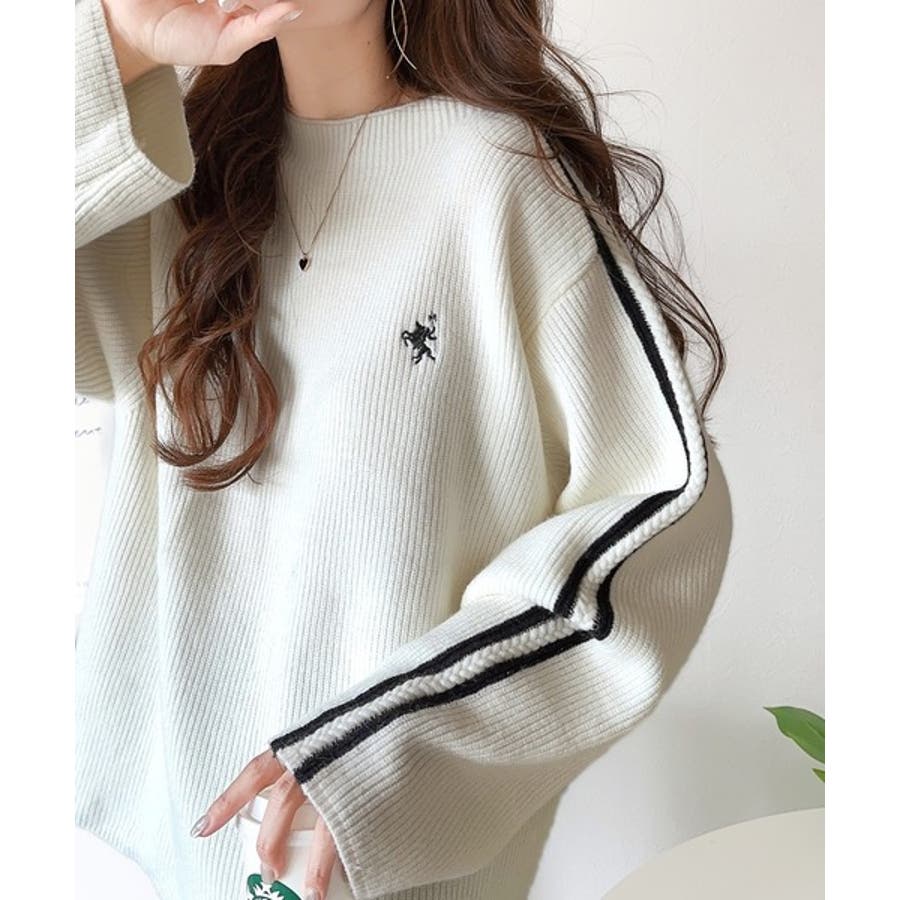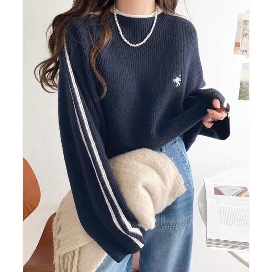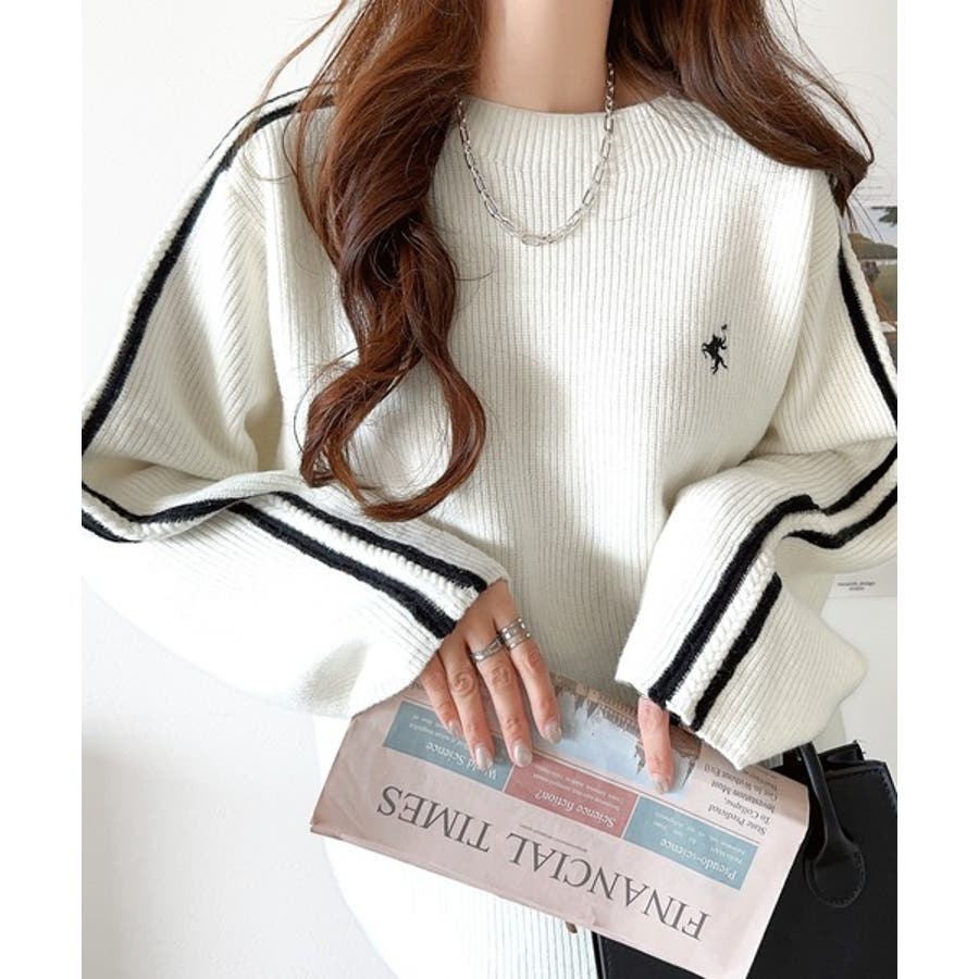 これ1枚でワンランク上の秋冬コーデ。ワンポイント胸刺繍×袖ラインもちもちニット