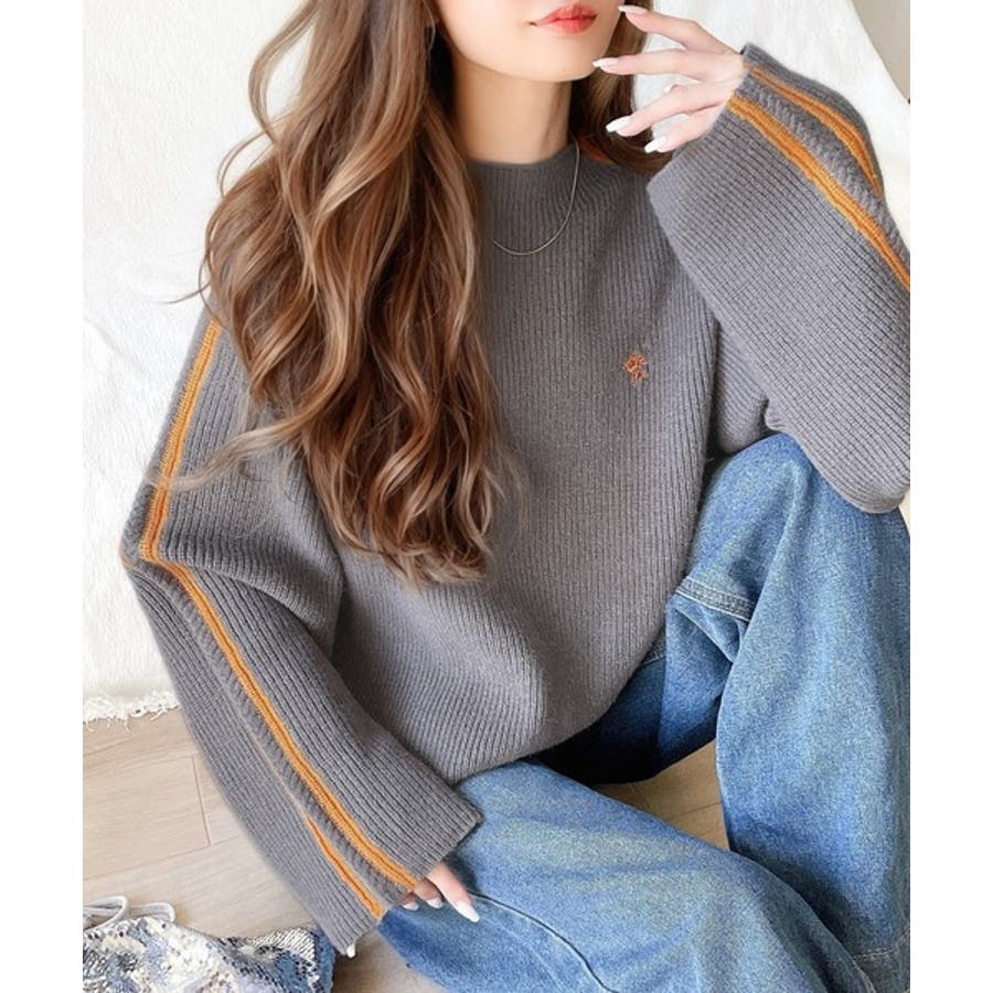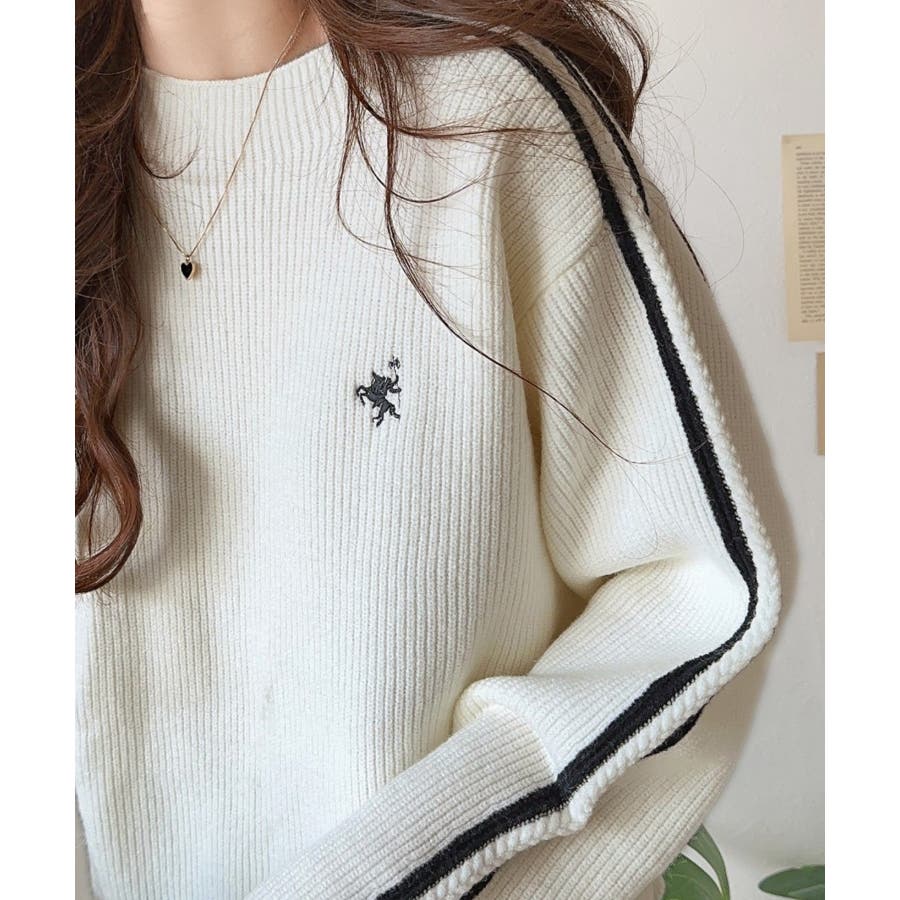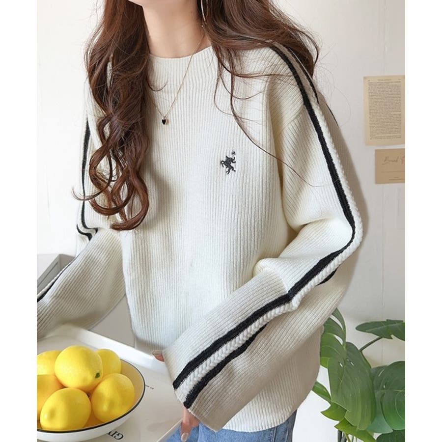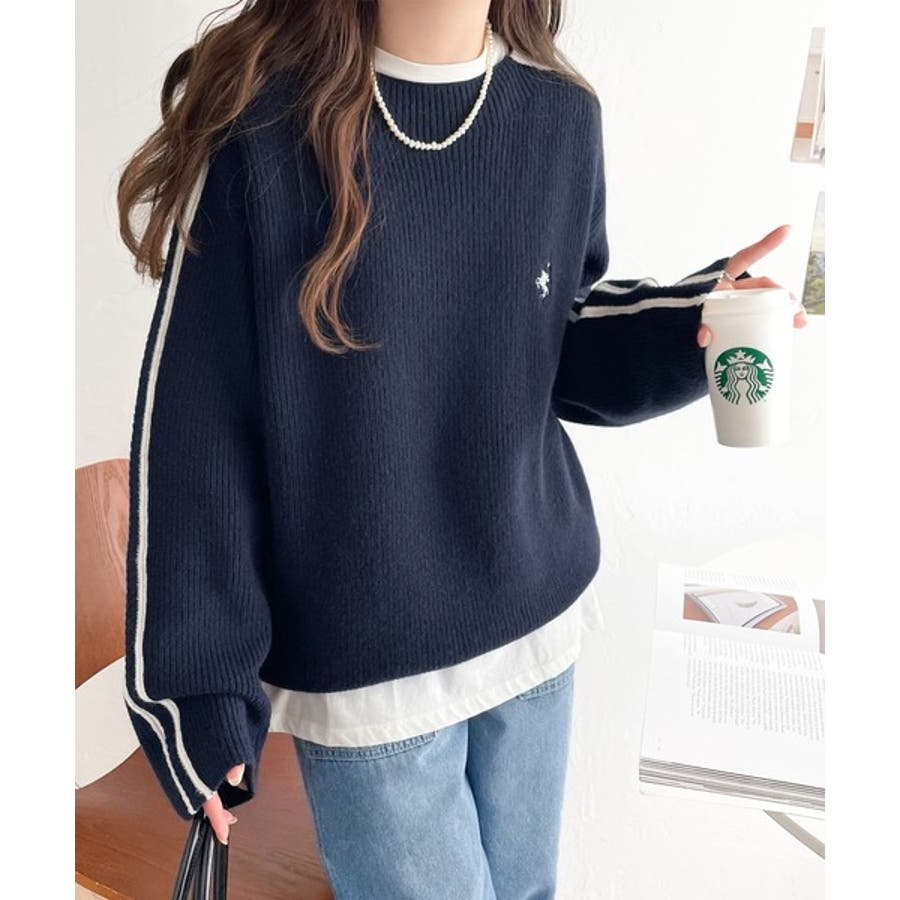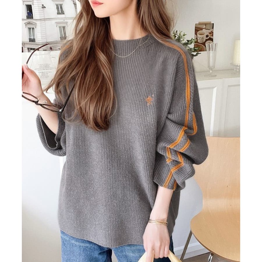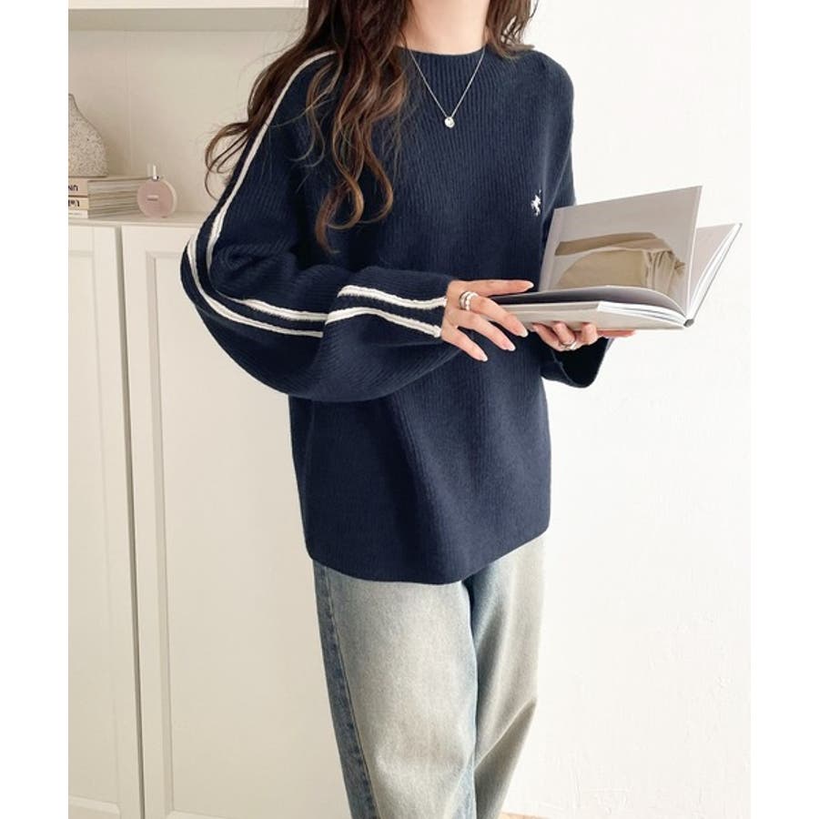 これ1枚でワンランク上の秋冬コーデ。ワンポイント胸刺繍×袖ラインもちもちニット