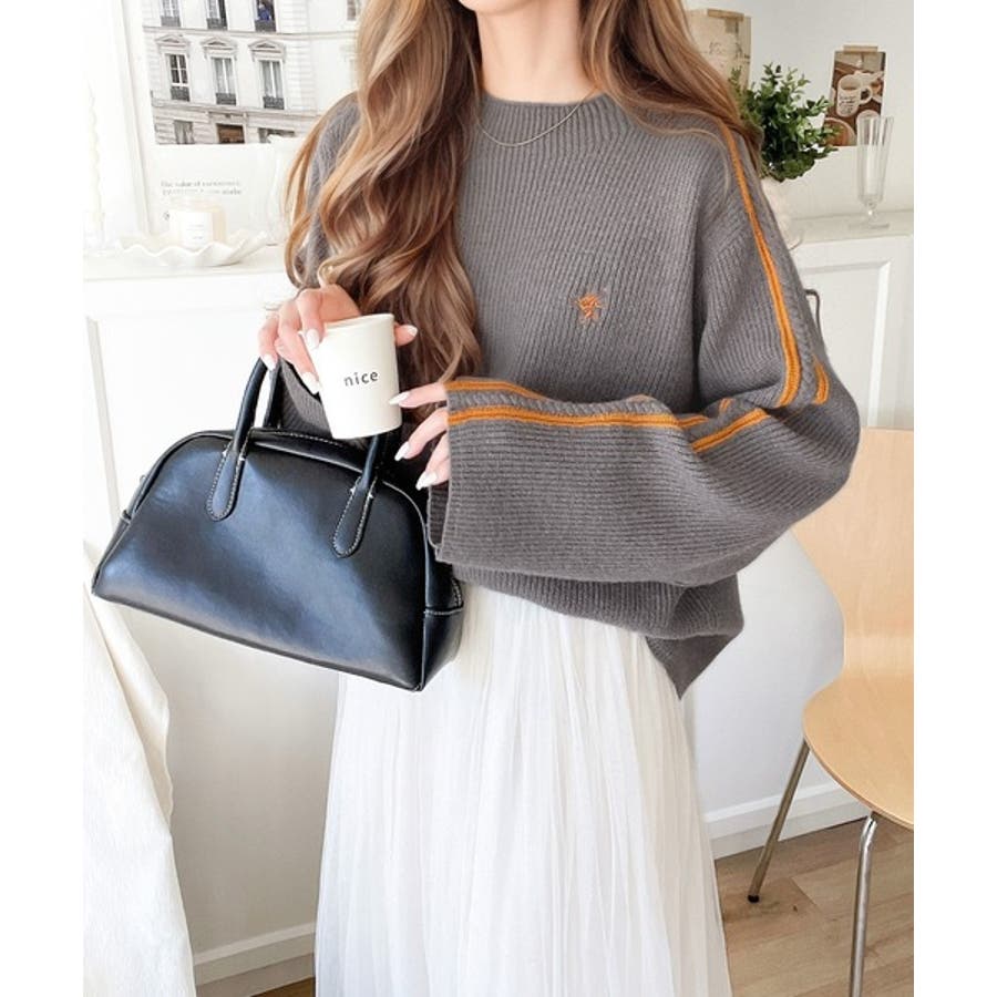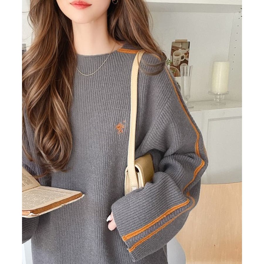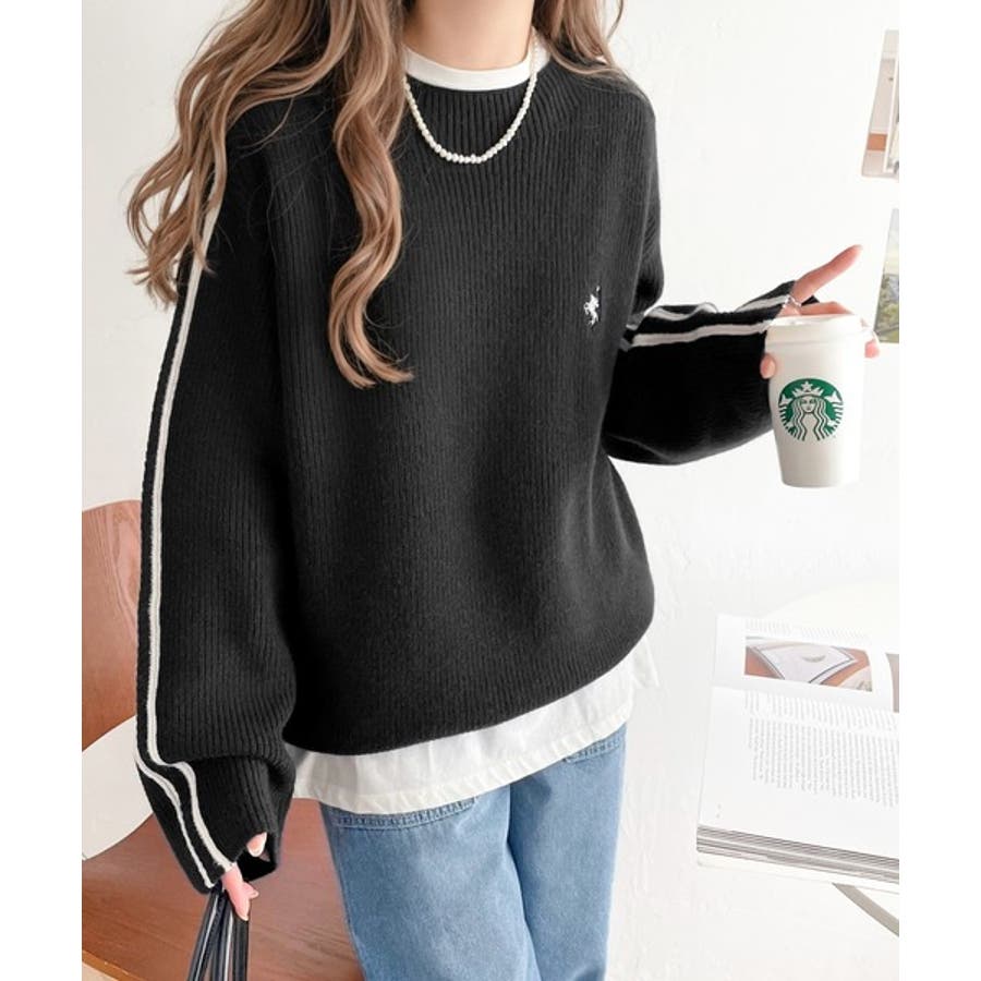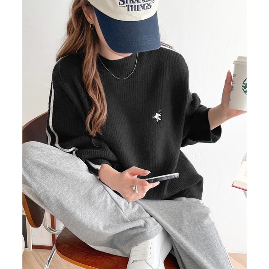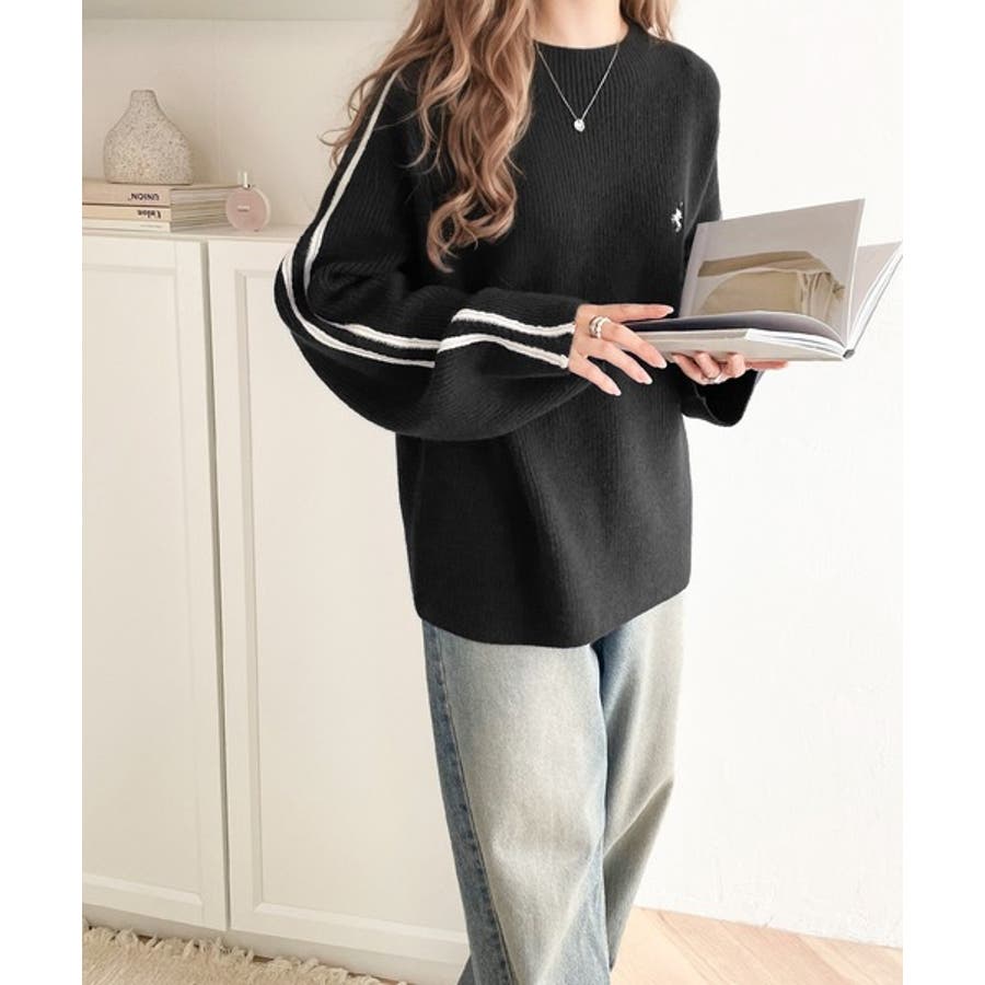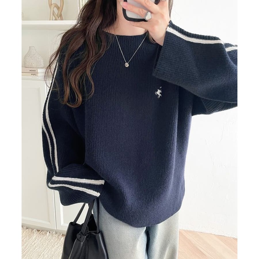 これ1枚でワンランク上の秋冬コーデ。ワンポイント胸刺繍×袖ラインもちもちニット