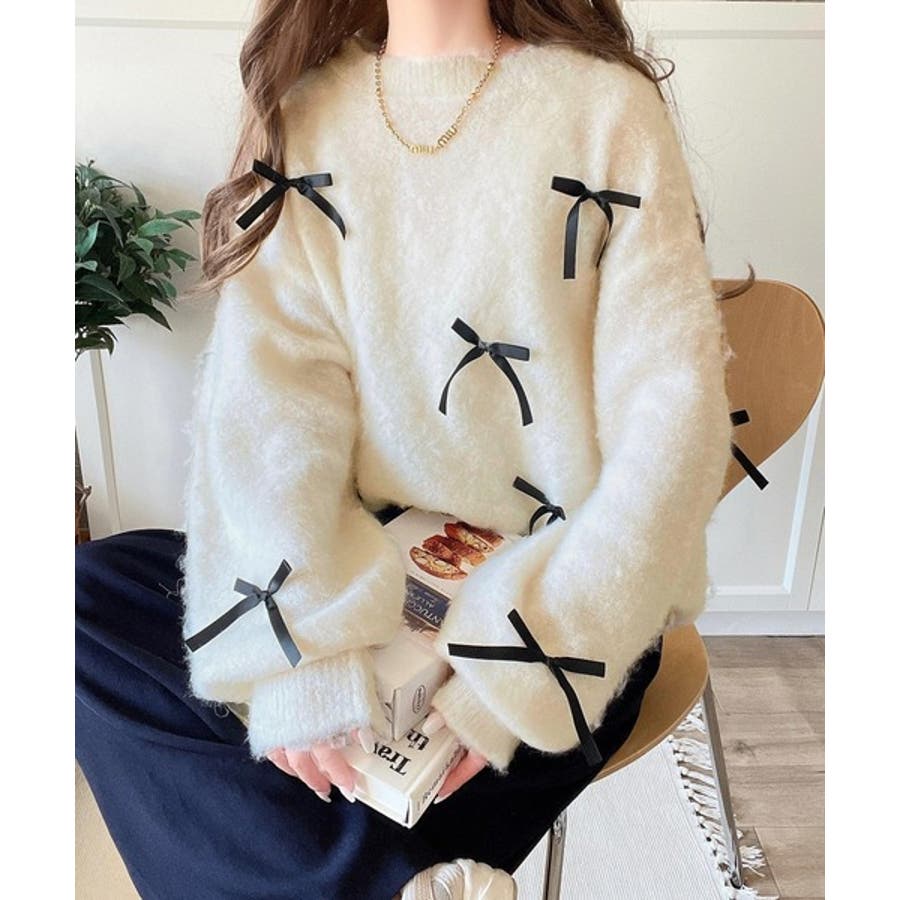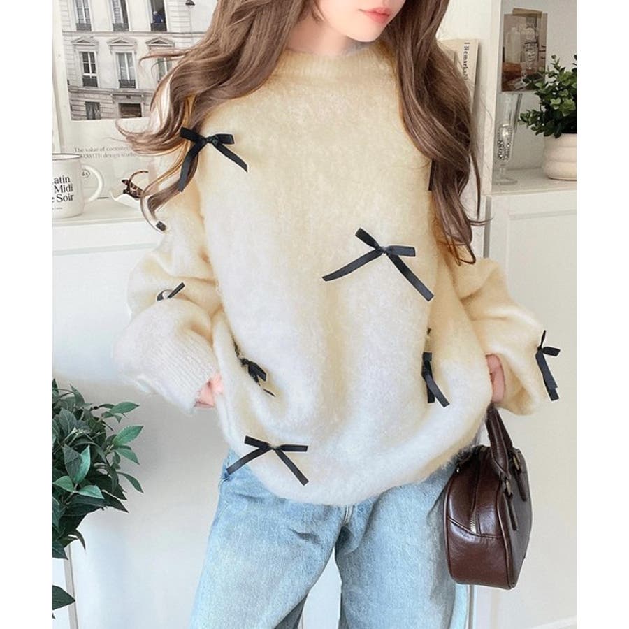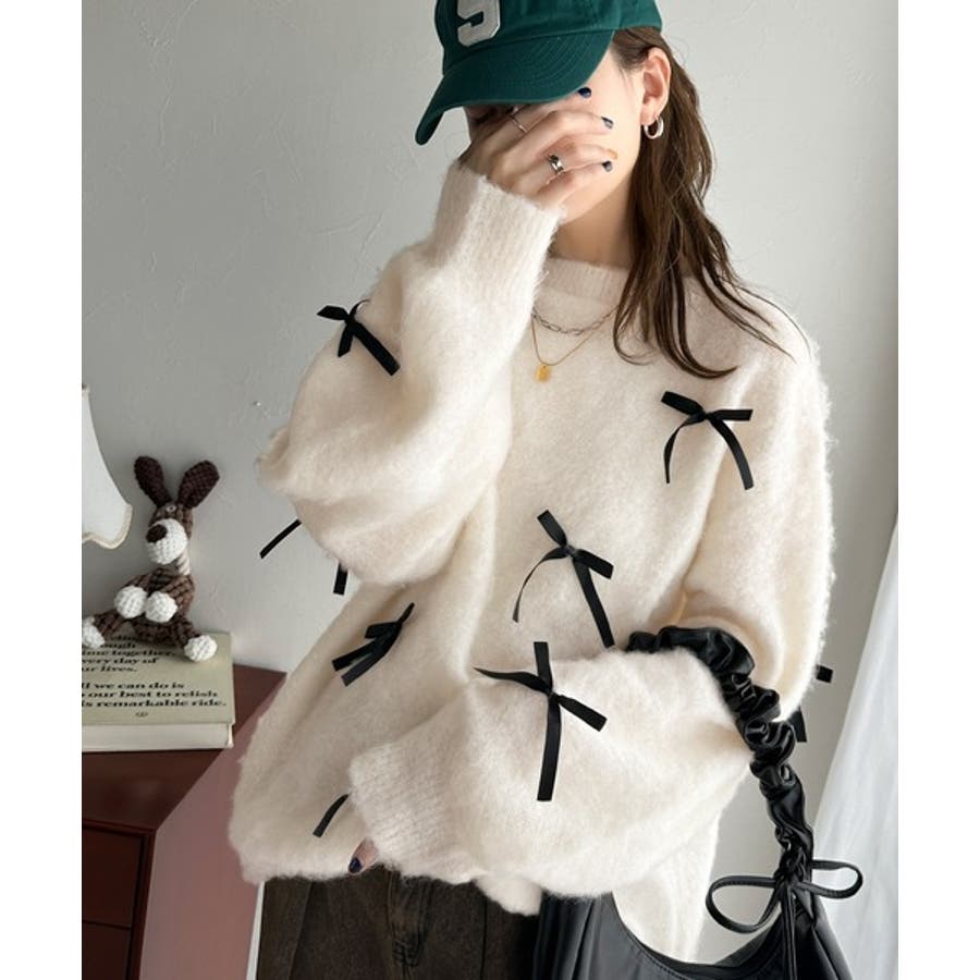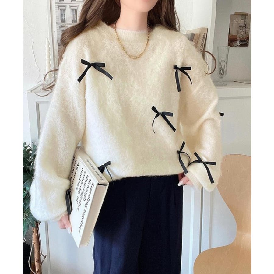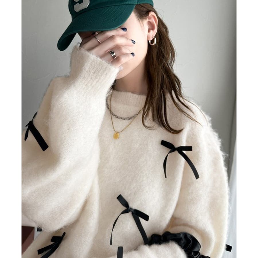 トレンドのバレエコアを取り入れたリボンデザインが起毛ニットと相性抜群!
