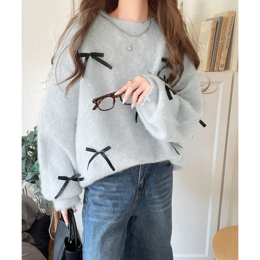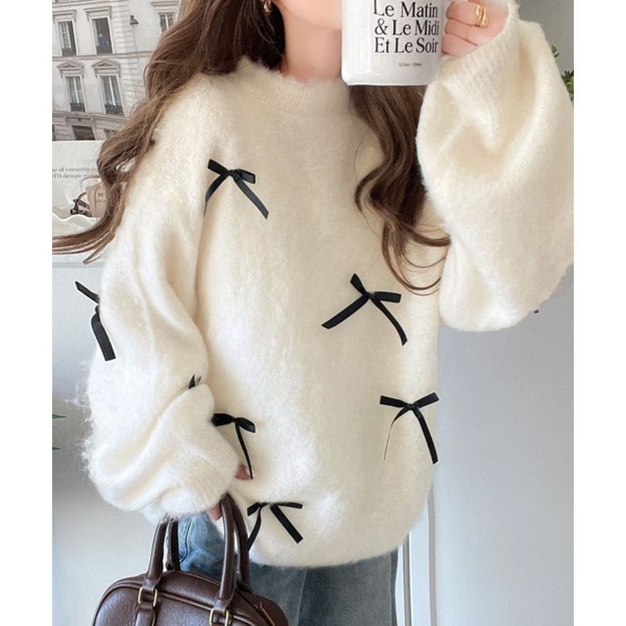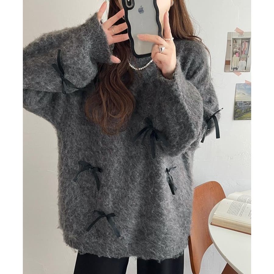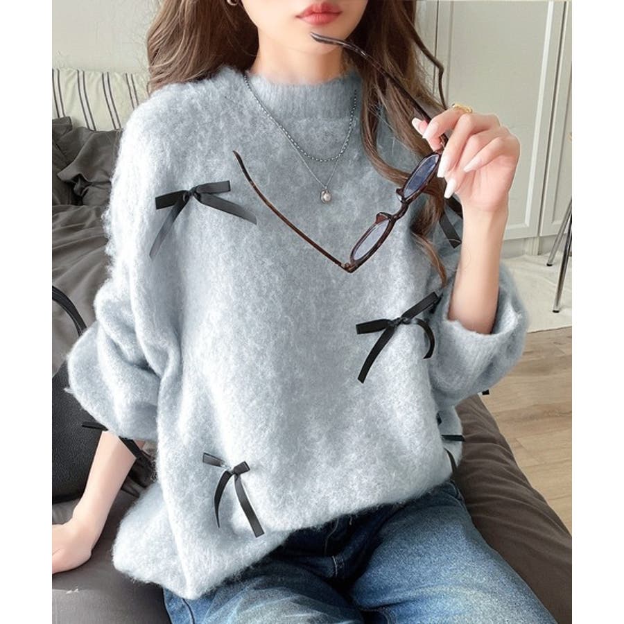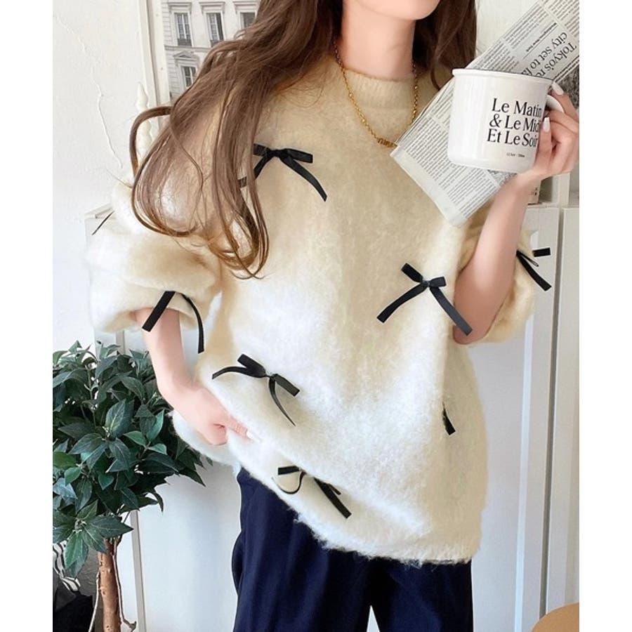 トレンドのバレエコアを取り入れたリボンデザインが起毛ニットと相性抜群!
