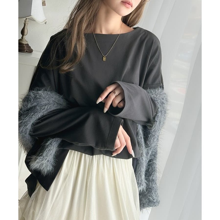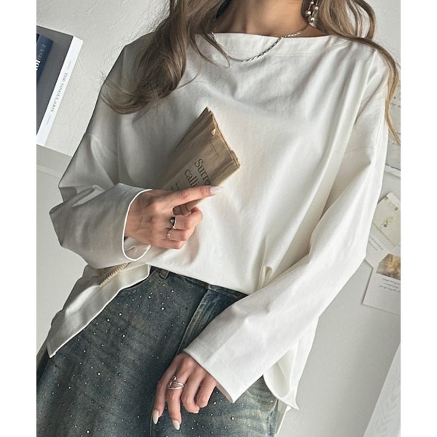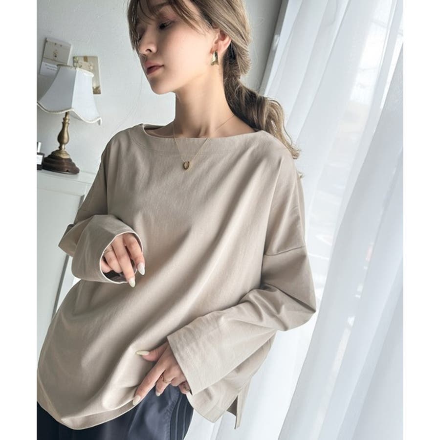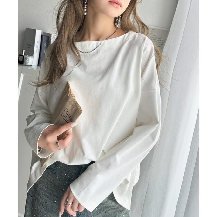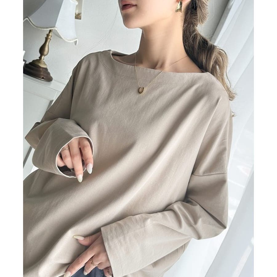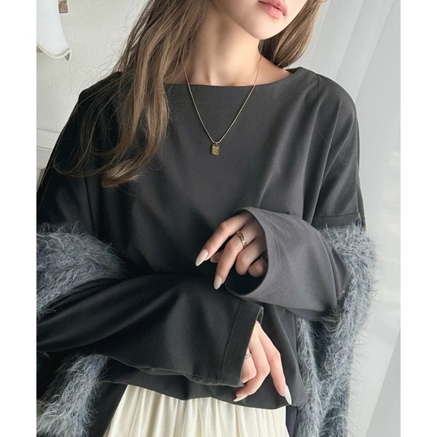肩落ちシルエットにボートネックが上品な抜け感のロンT。