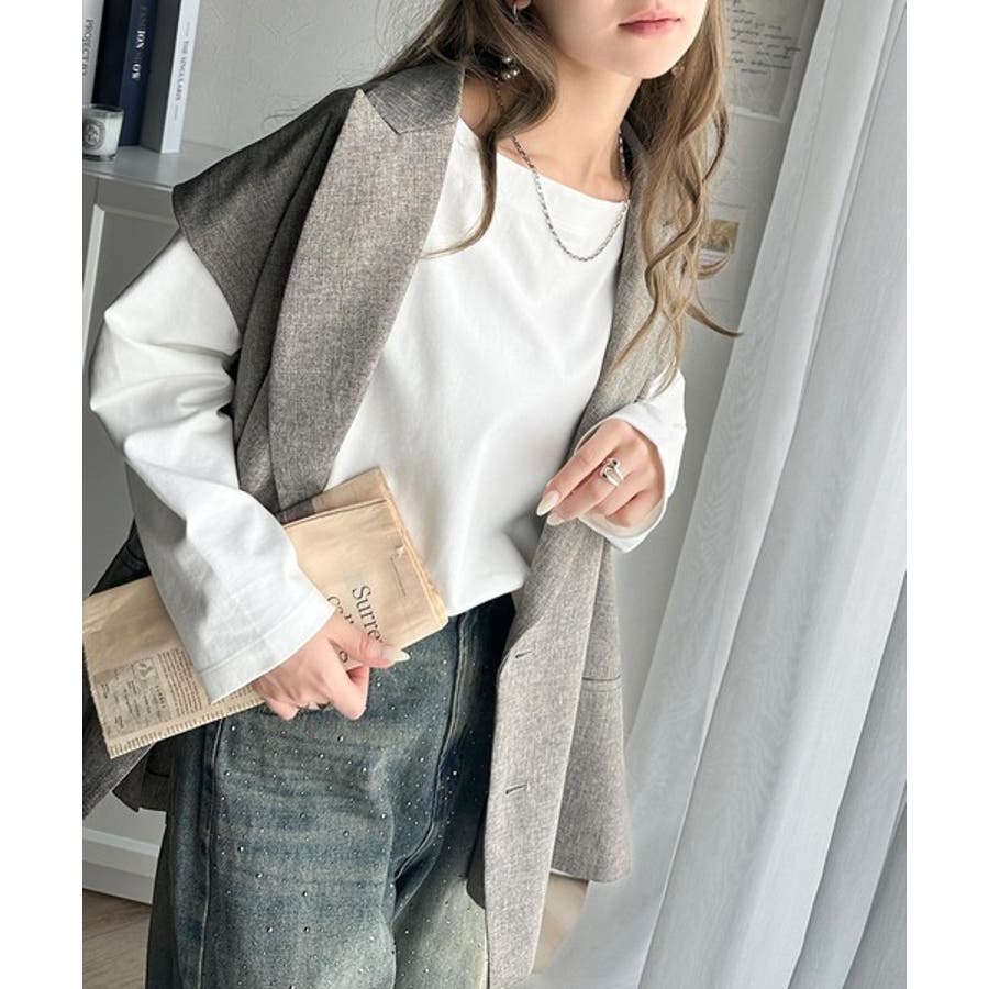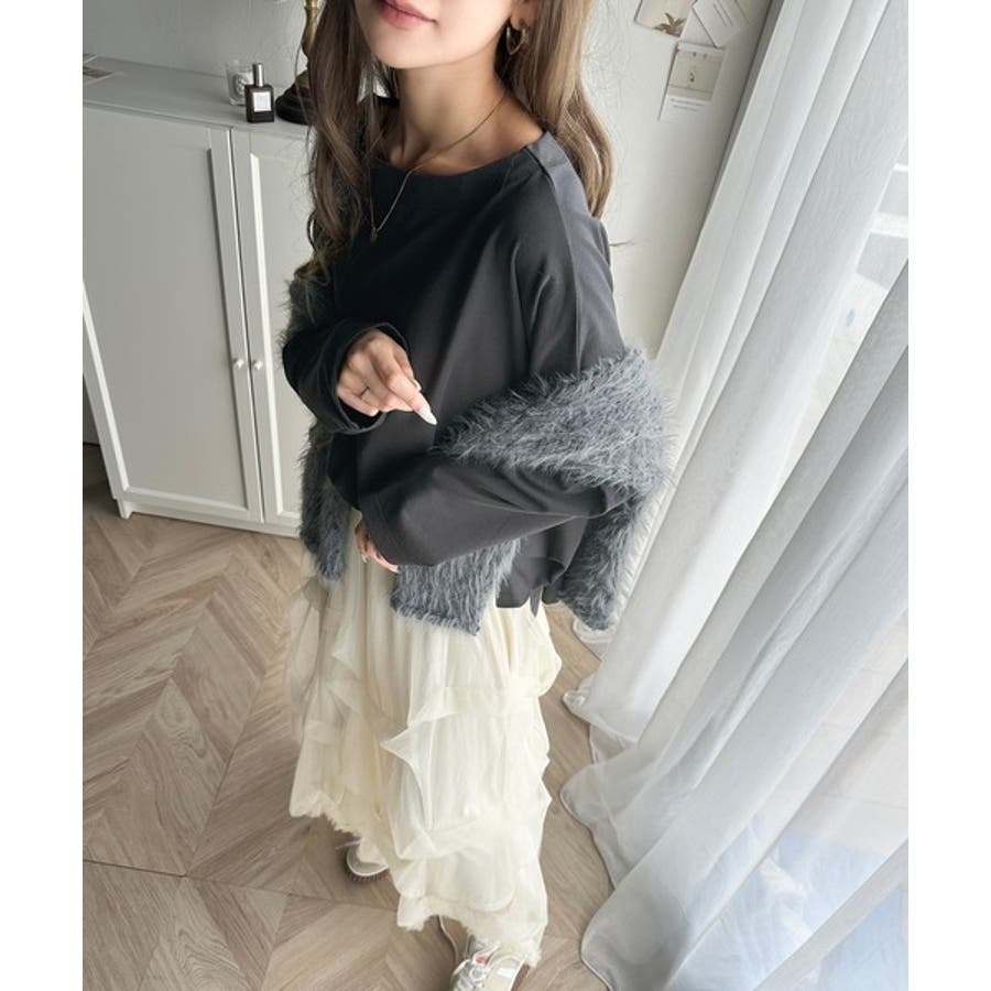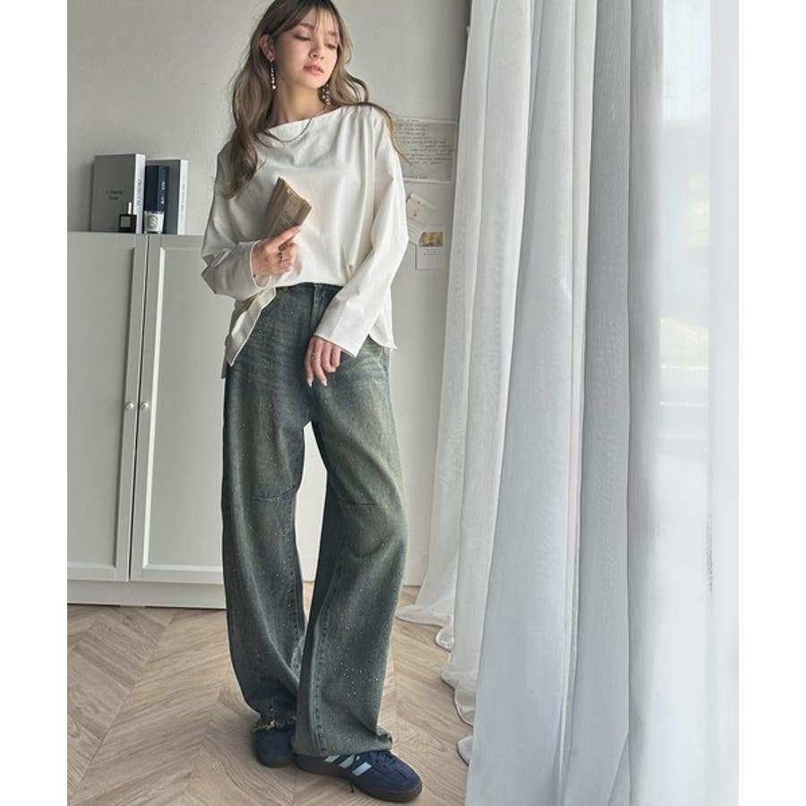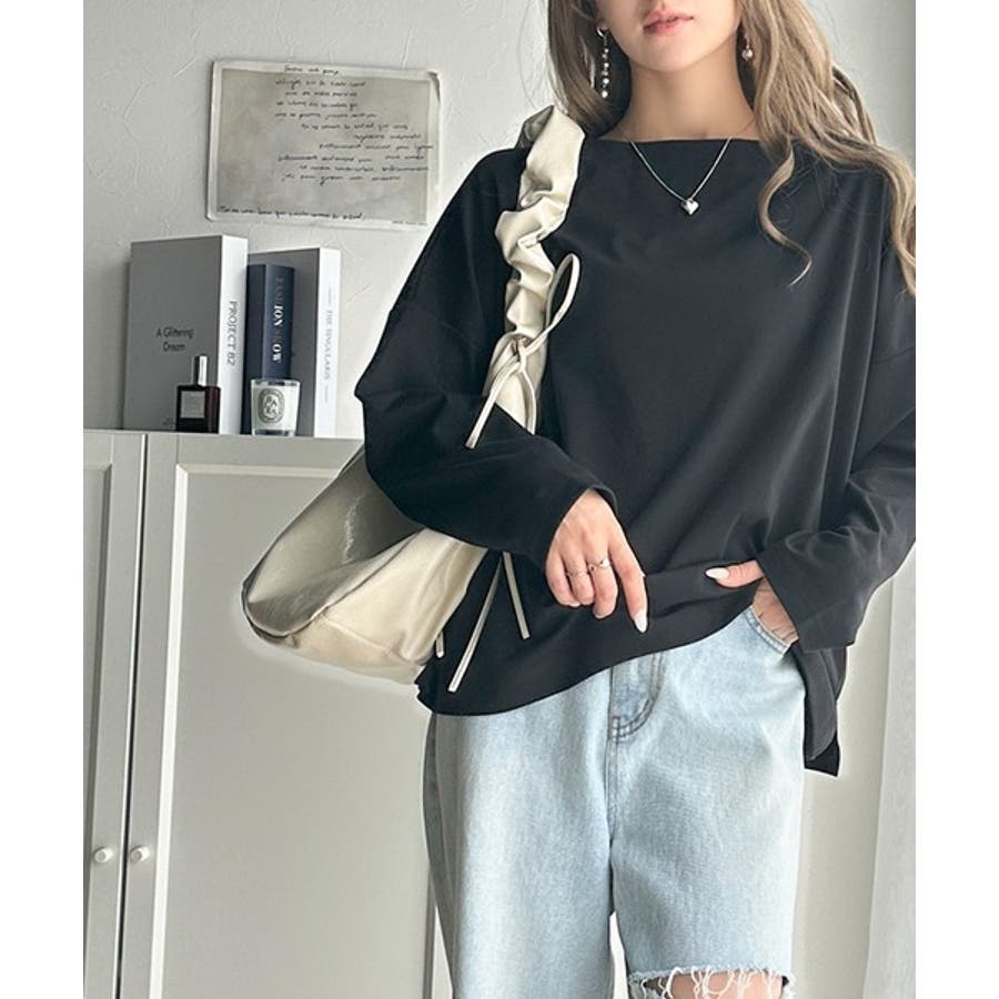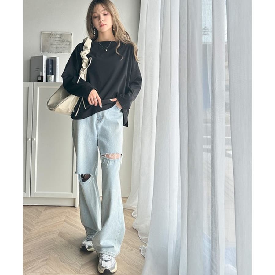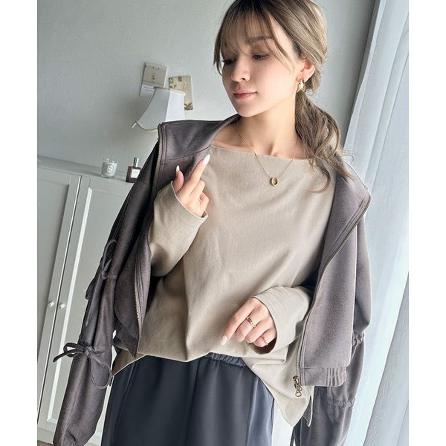 肩落ちシルエットにボートネックが上品な抜け感のロンT。